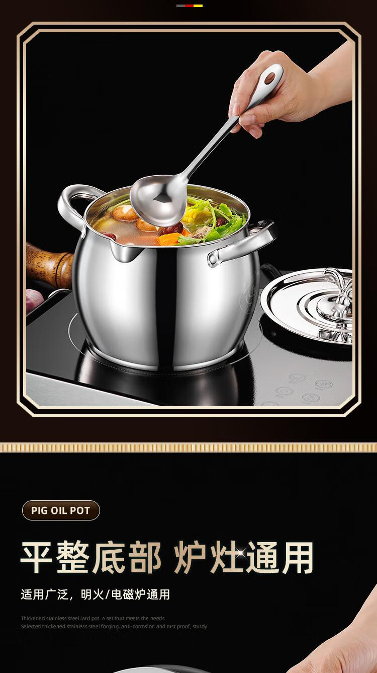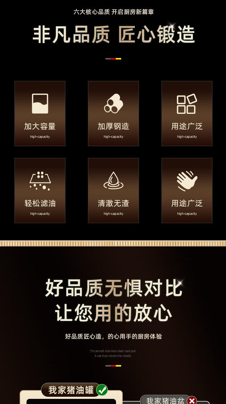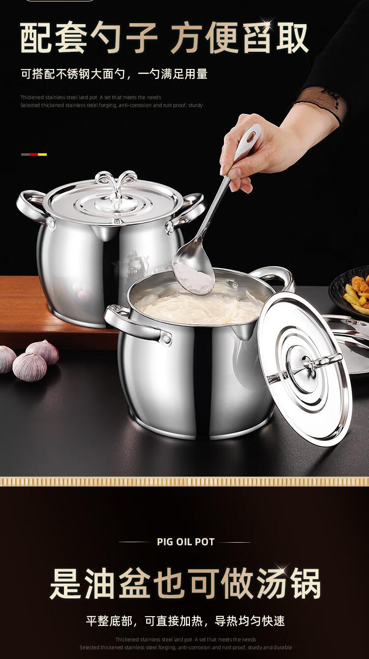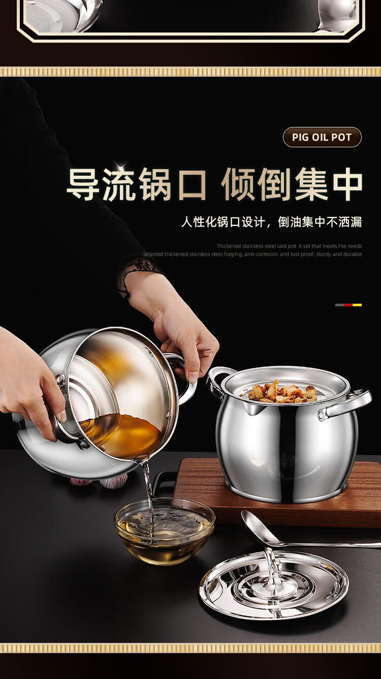 Craftsman Time with filter lard barrel lard tank double-eared lard pot stainless steel with lid household high temperature resistant large capacity oil storage tank 3L comes with filter + spoon丨oil residue separation丨increase capacity