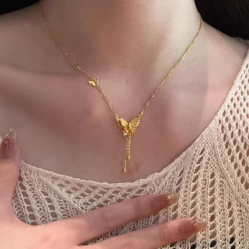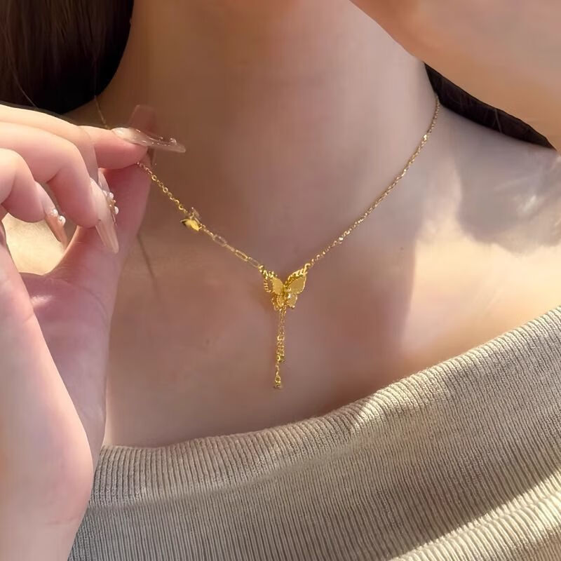 BZK9999 Gold Butterfly Necklace for Women 2025 New Pure Gold Fashion Clavicle Chain Valentine's Day Gift for Women Butterfly Necklace 1.56g