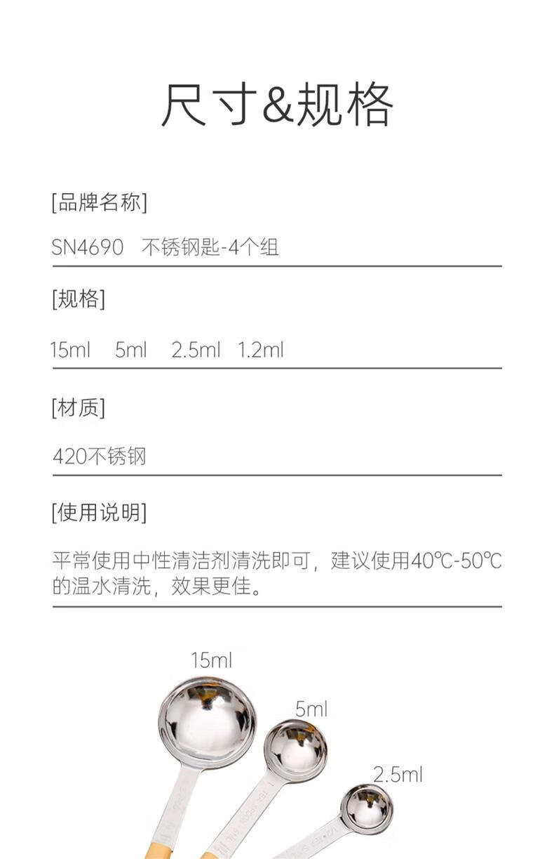 SANNENG Stainless Steel Measuring Spoon Measuring Spoon Measuring Spoon Graduation Spoon Seasoning Spoon Baking Tool 4-piece Set SN4690 Measuring Spoon-4 Set SN4691