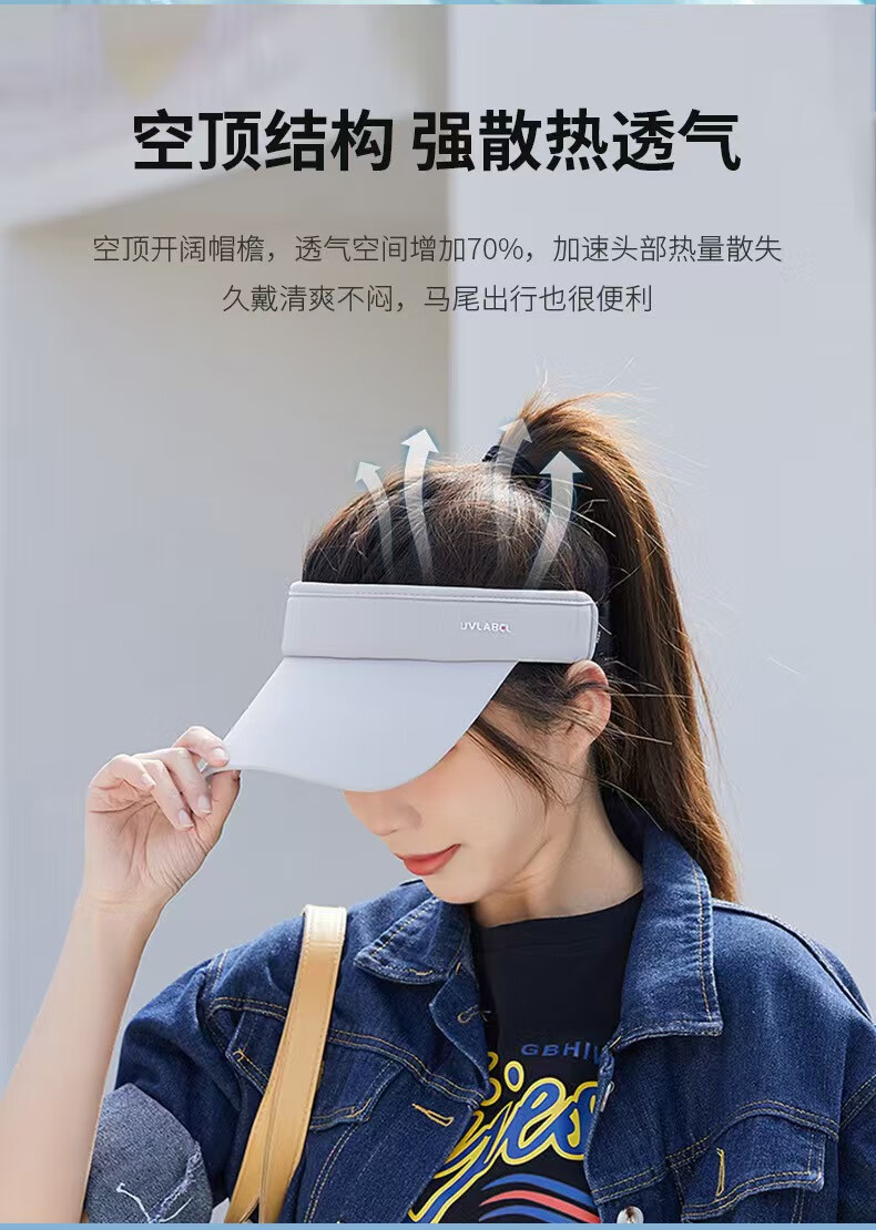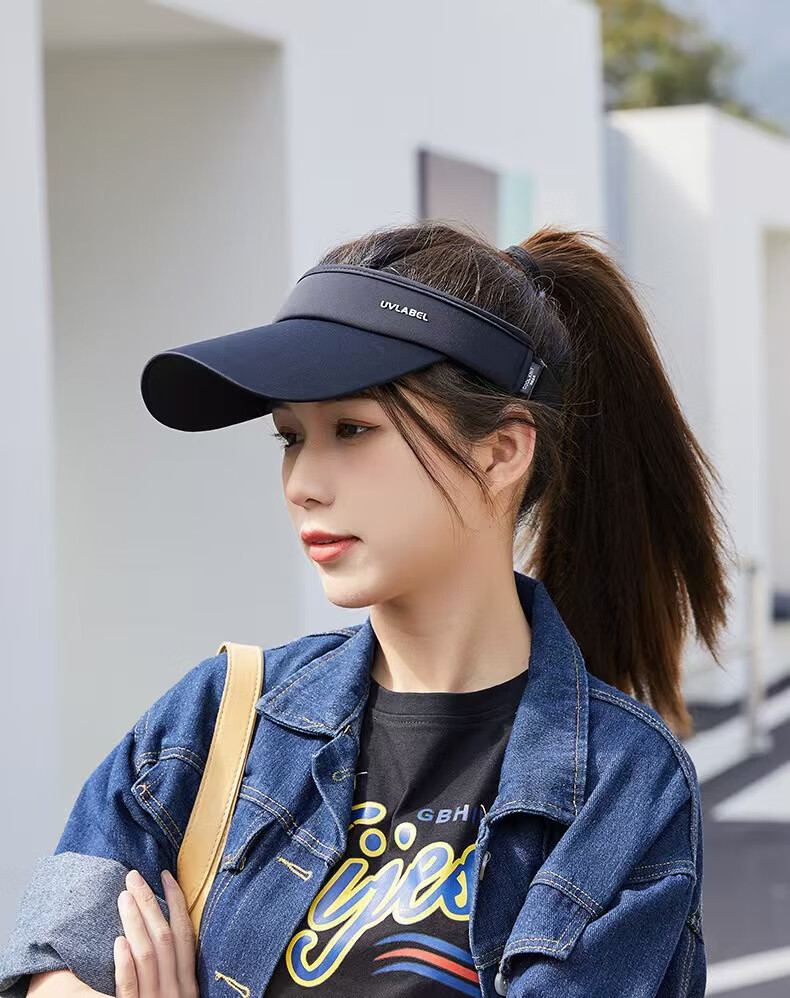 Japan UV running empty top hat for women's sports travel large brim ice silk cool topless peaked cap for men's brim cycling light gray