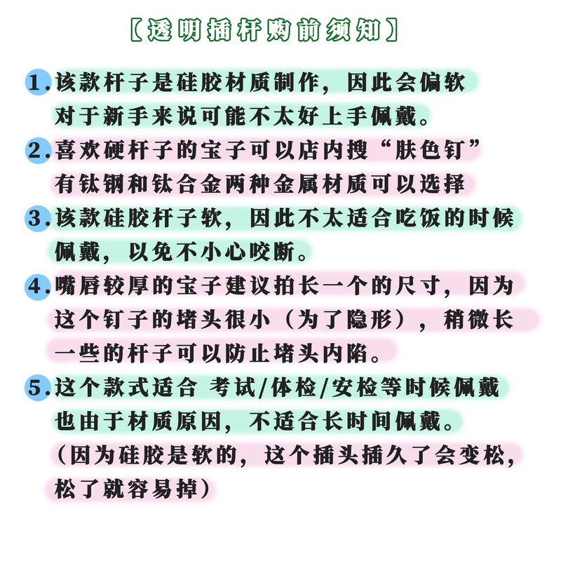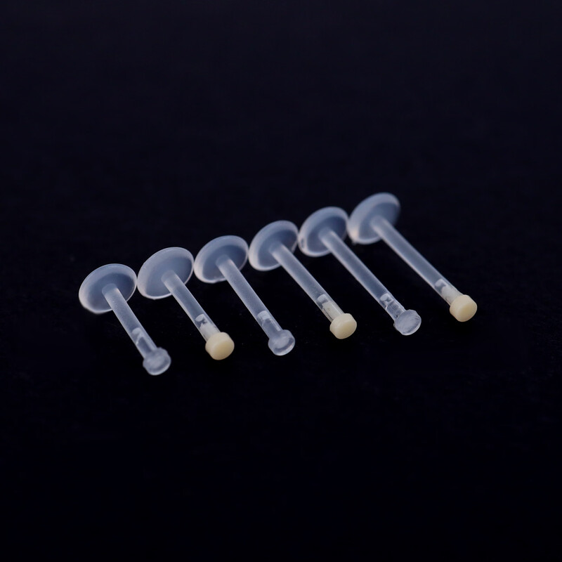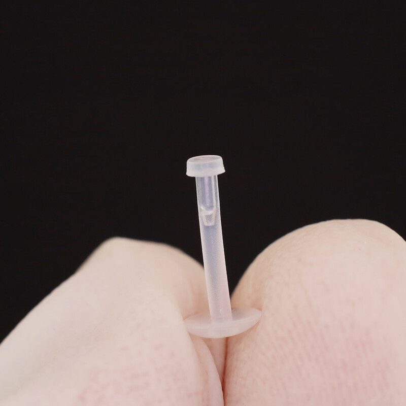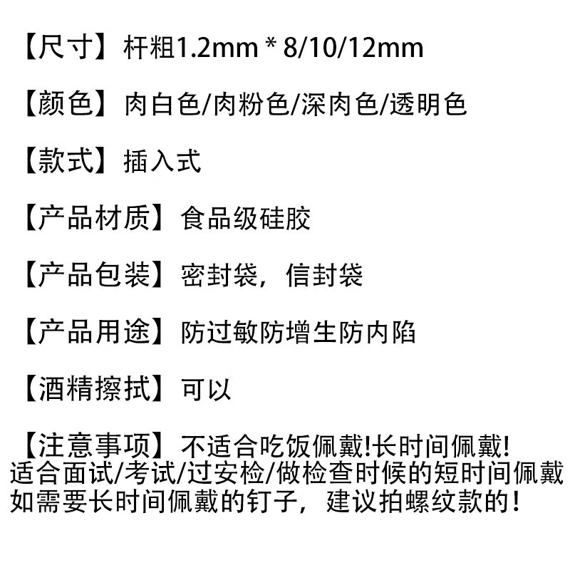 Student transparent invisible silicone acrylic lip nail lip ring flesh color anti-blocking hole piercing jewelry transparent color 2 rods thick 1.2 rods long 12