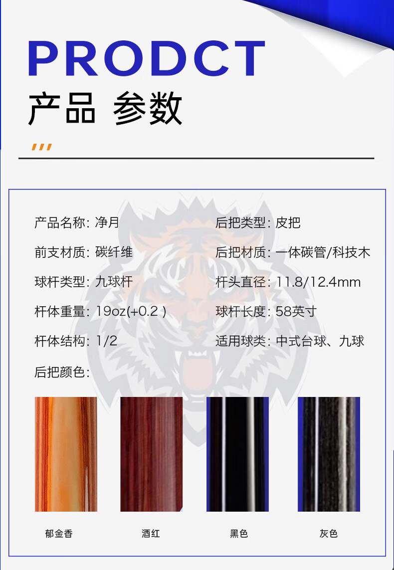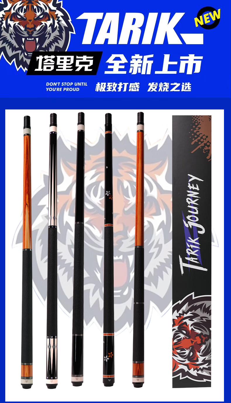 Tarik cue Tarik-Tulip net moon details carbon fiber black technology big head Chinese pool cue 11.8 black cherry blossom leather handle 11.8