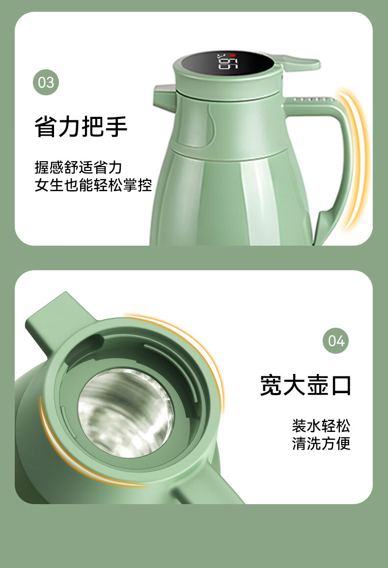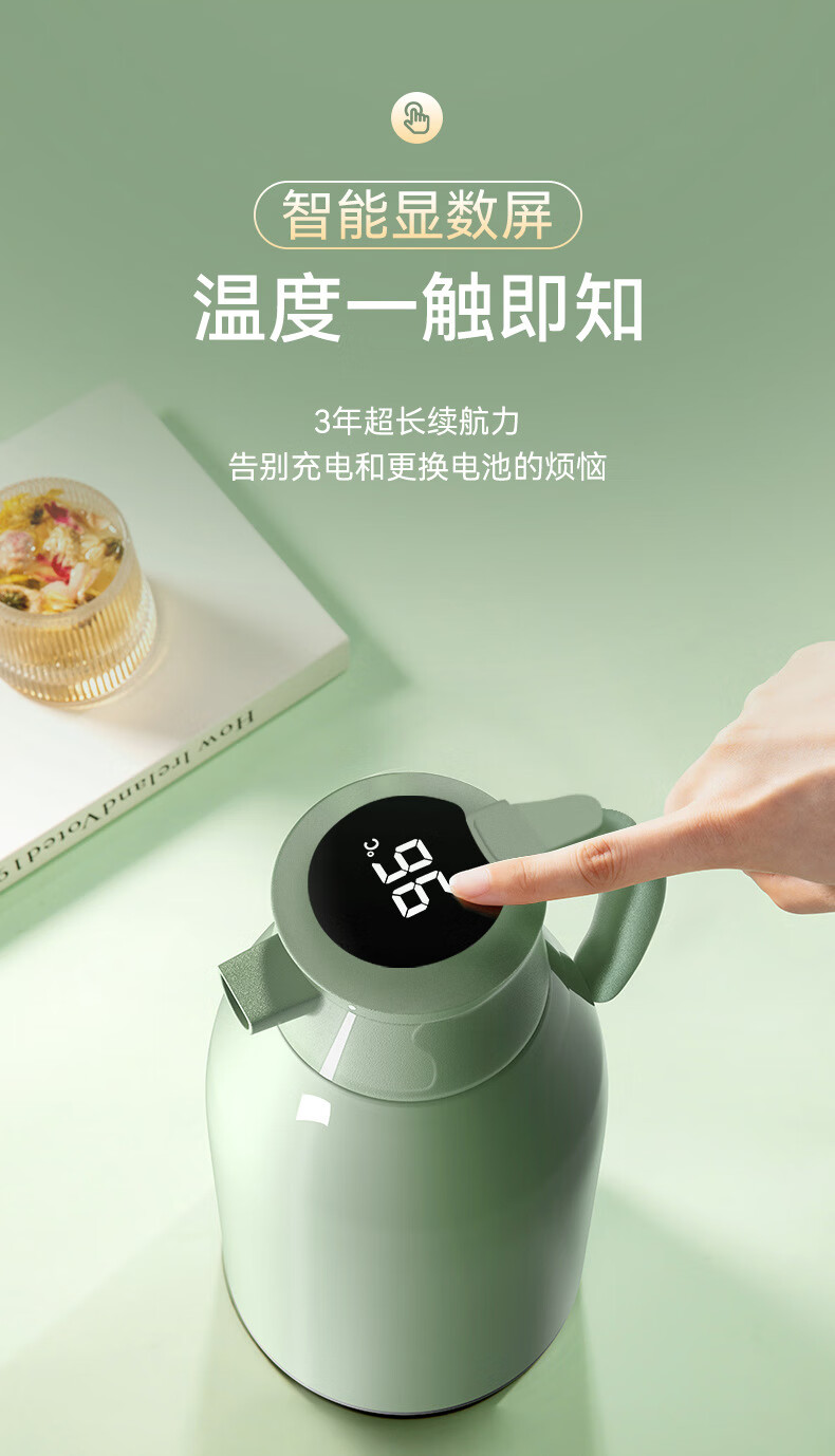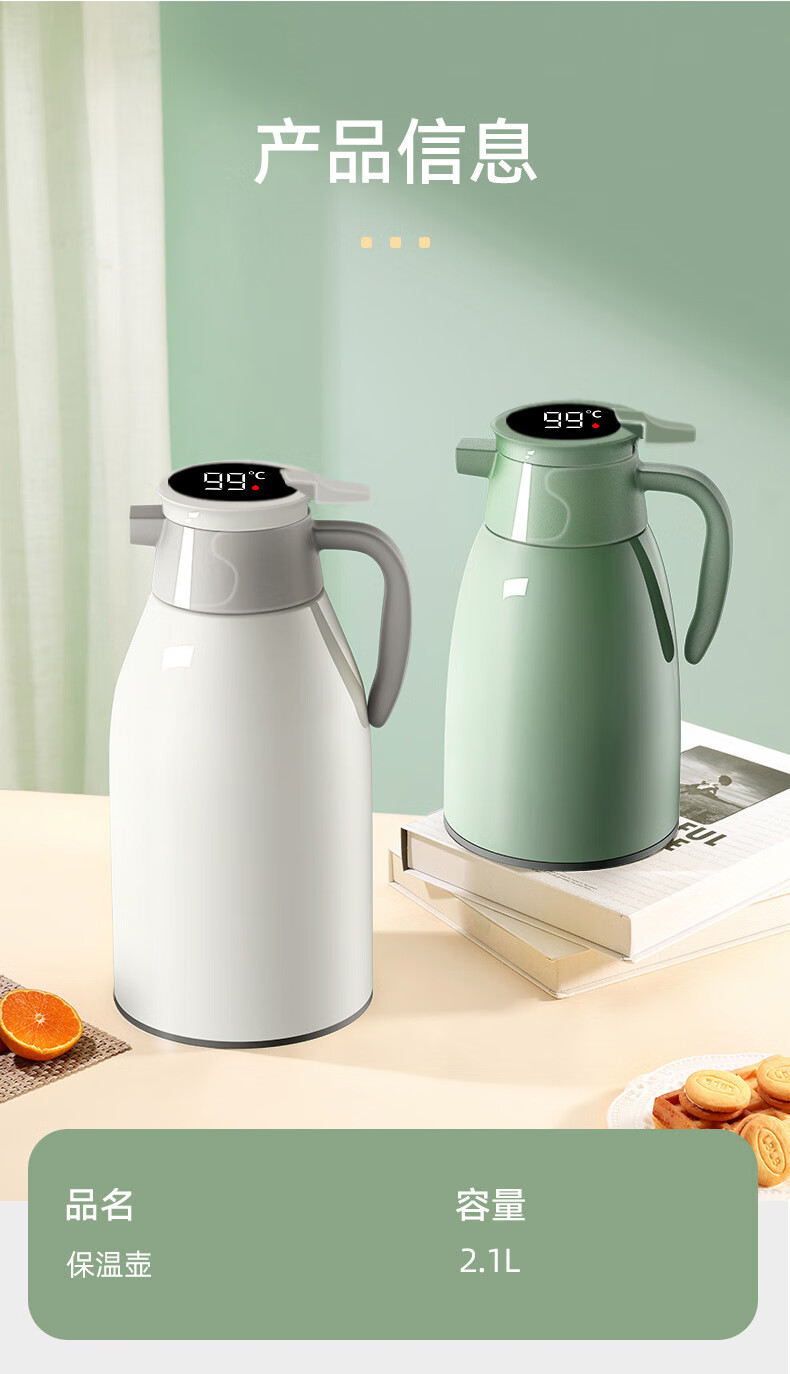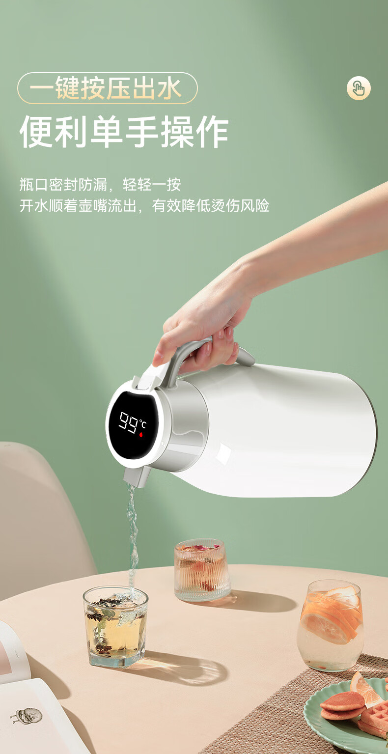 Intelligent temperature display thermos large capacity thermal kettle household thermos thermos office thermos 2.0L temperature display ivory white strong thermal insulation + dustproof spout