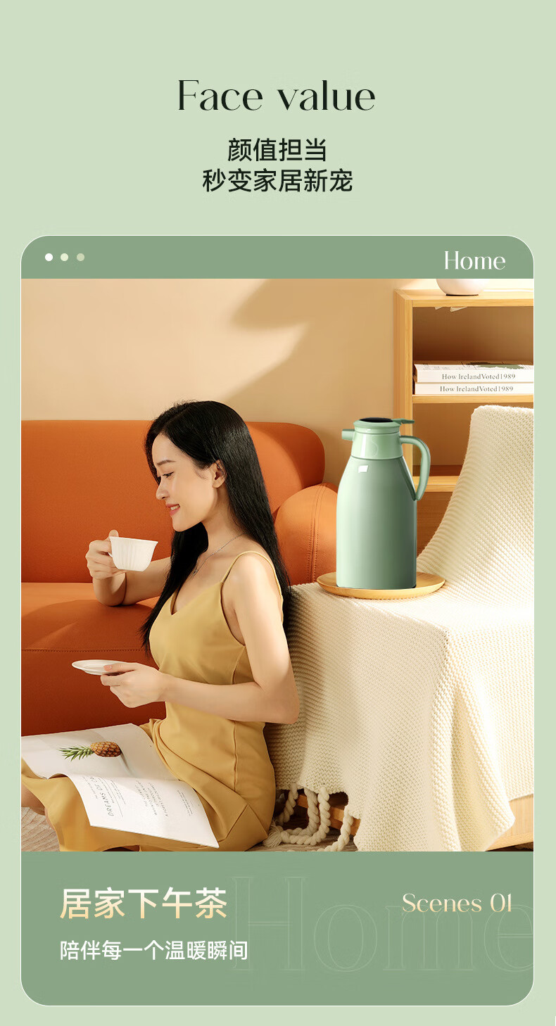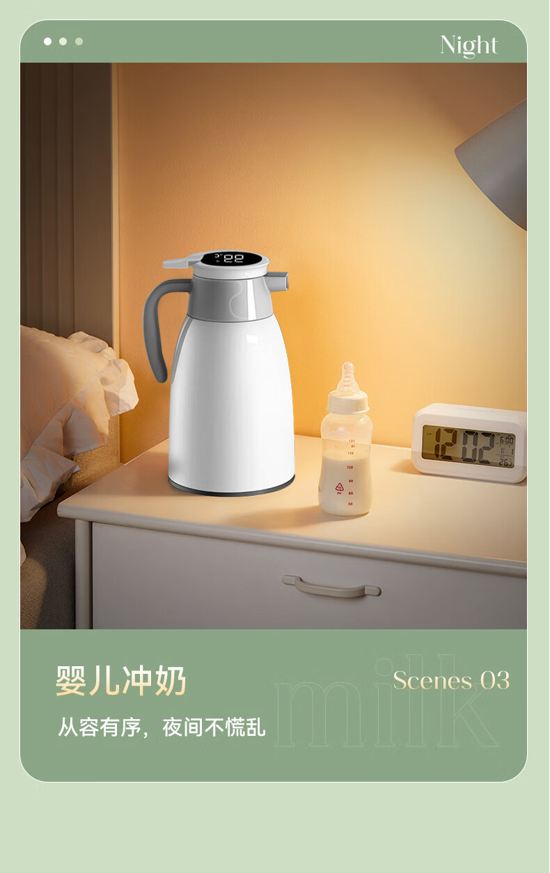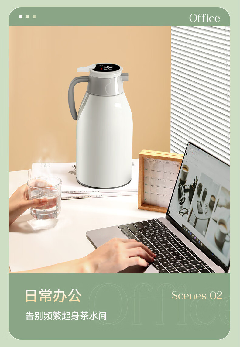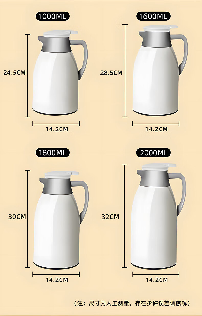 Intelligent temperature display thermos large capacity thermal kettle household thermos thermos office thermos 2.0L temperature display ivory white strong thermal insulation + dustproof spout