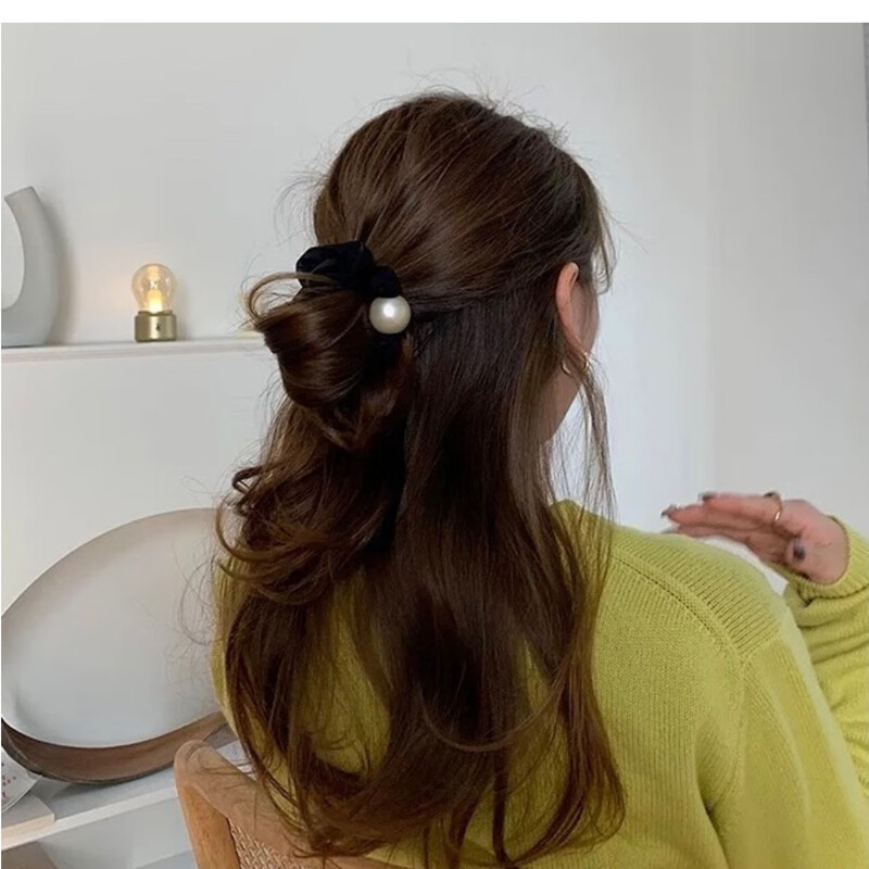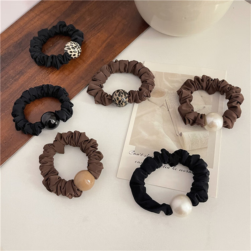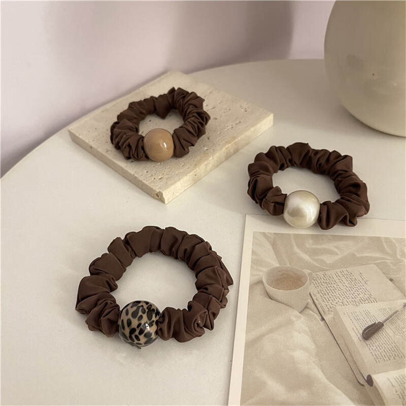 Temperament champagne color hair rope small intestine hair band thick rubber band women's ponytail headband low bun hair accessory coffee color