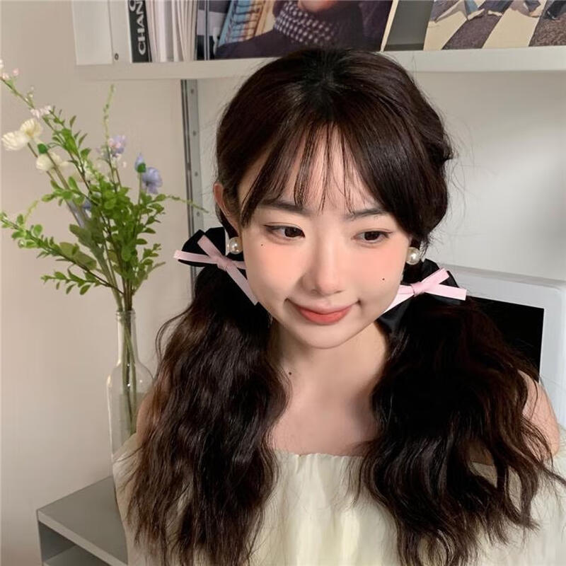 French sweetheart girl bow hairpin princess hair Korean style side clip side clip double ponytail headdress black one