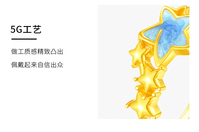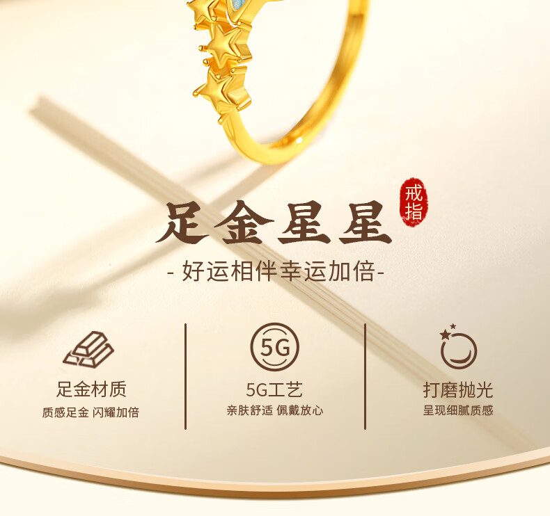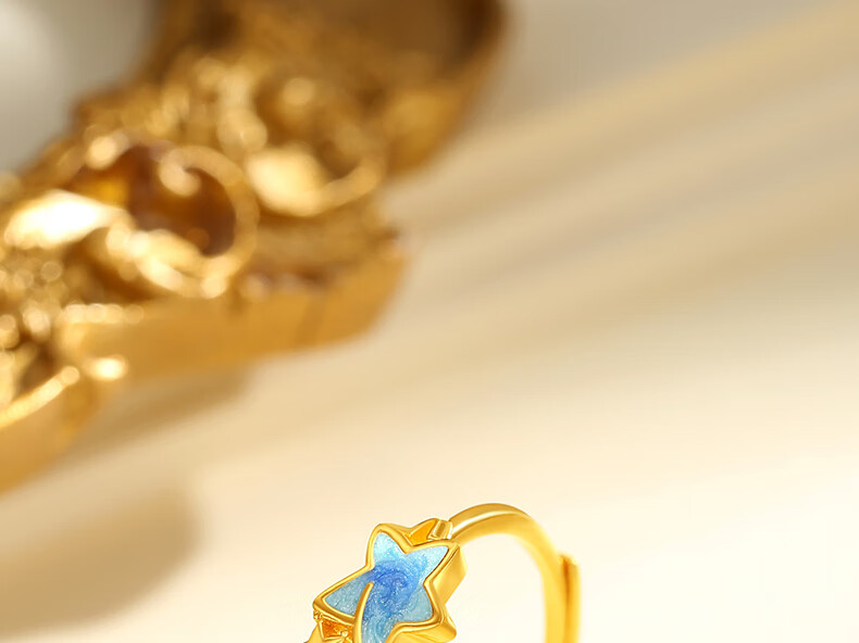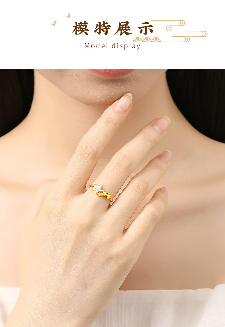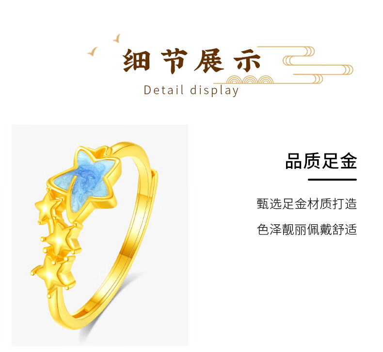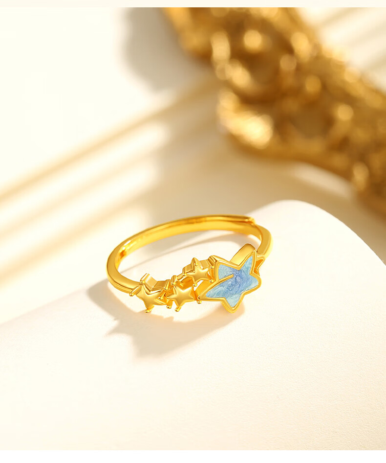 CHINA GOLD Star Gold Ring Women's 999 Pure Gold Open Ring Birthday Gift for Girlfriend and Wife Gold Weight Approximately 2.8g Pure Gold Ring