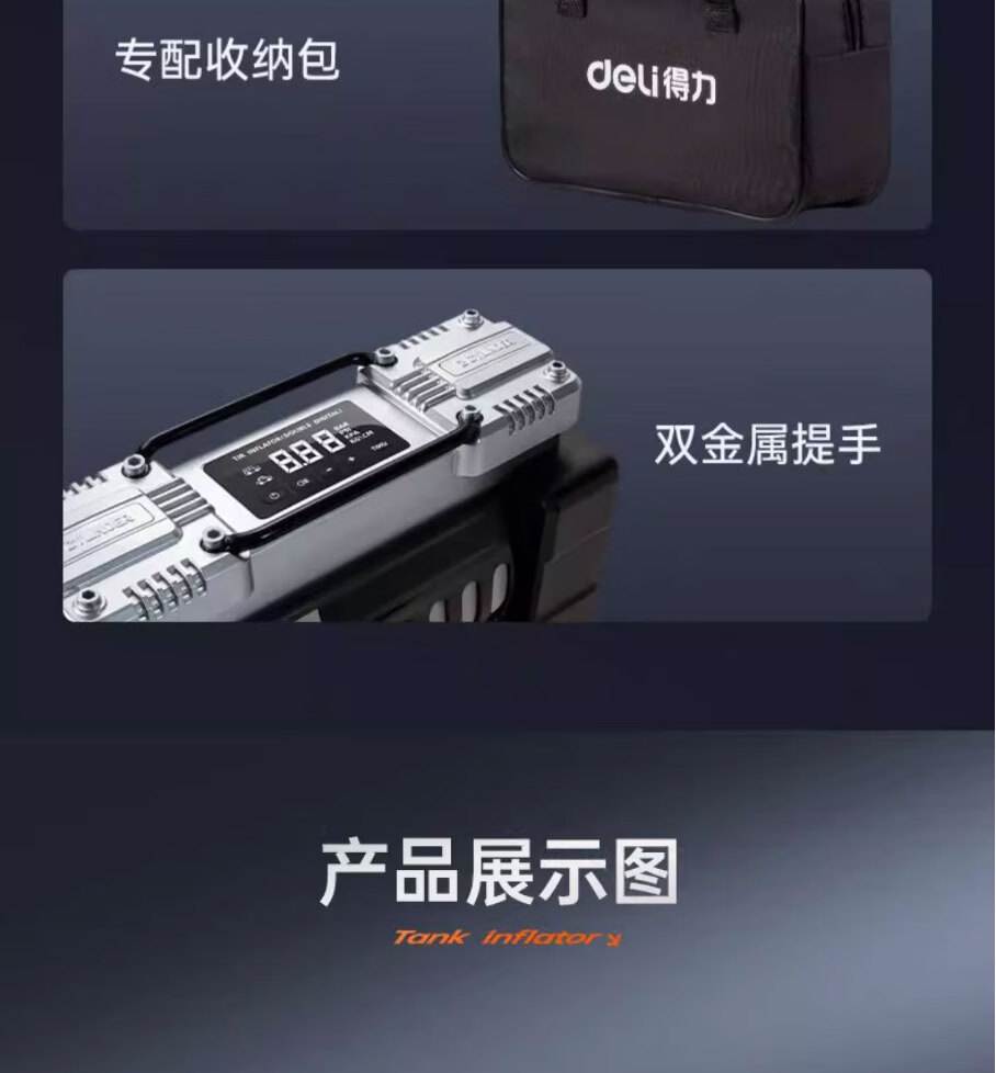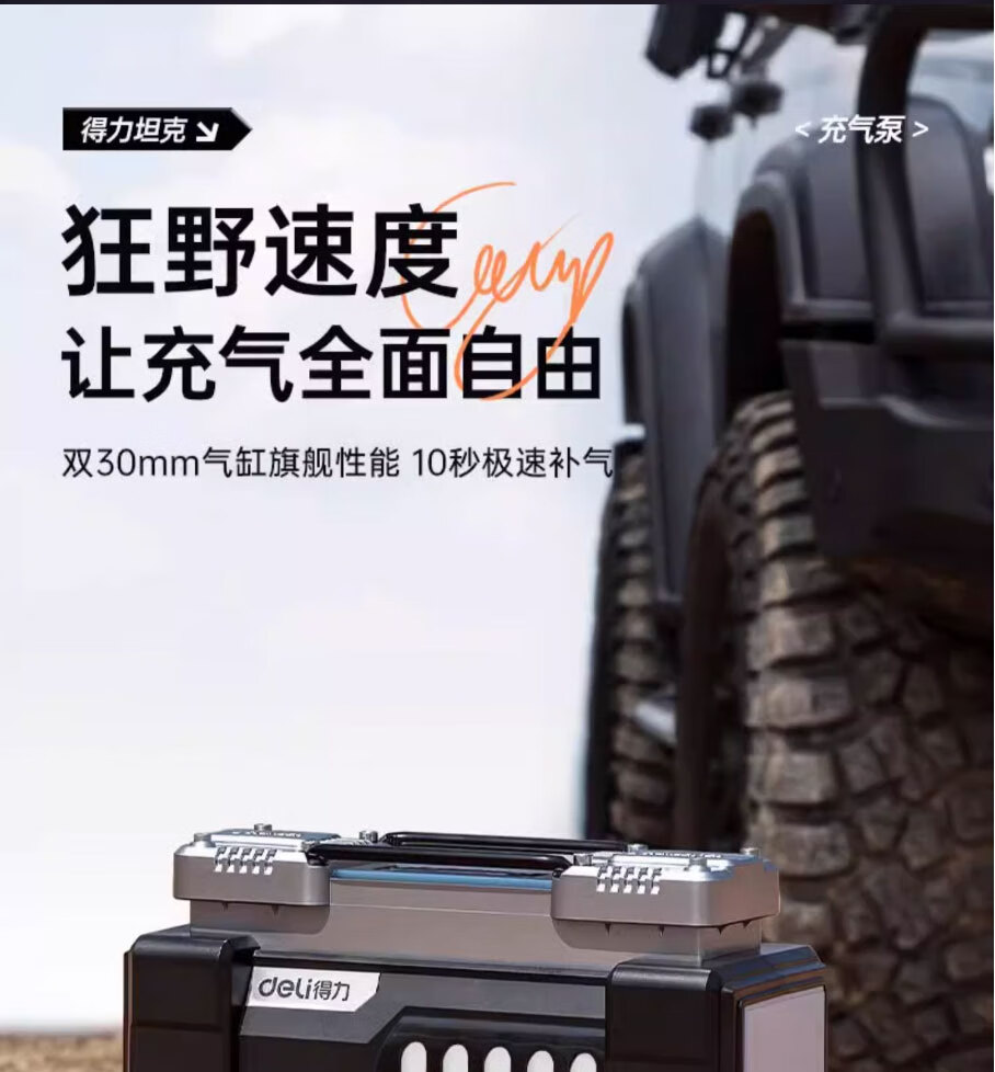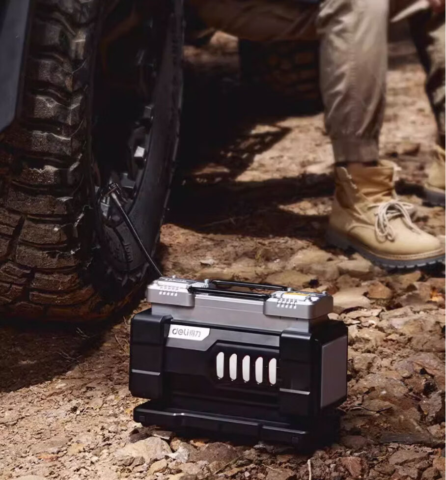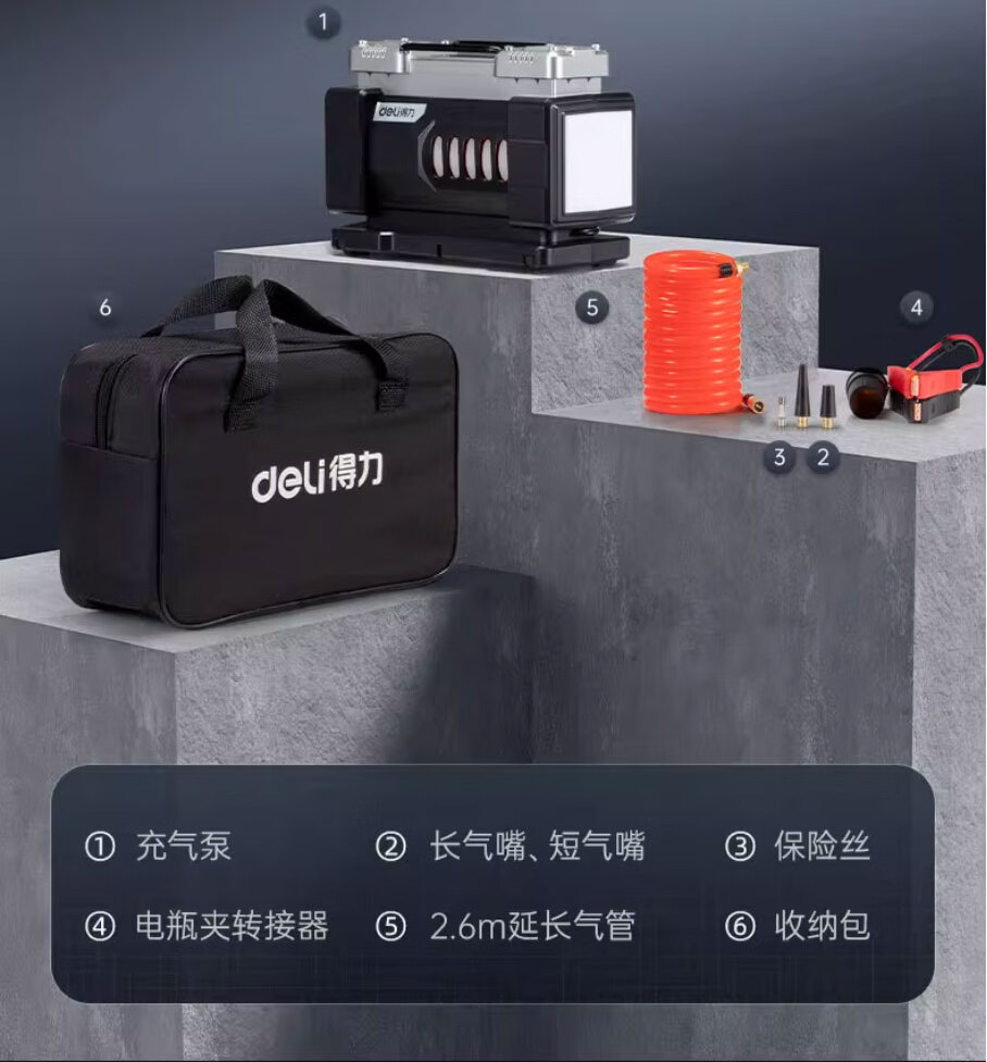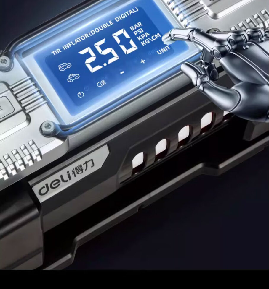 Deli car air pump tank double cylinder high power tire pressure detection SUV car high pressure air pump portable double cylinder supreme model 140W full self-stop/extremely fast air replenishment