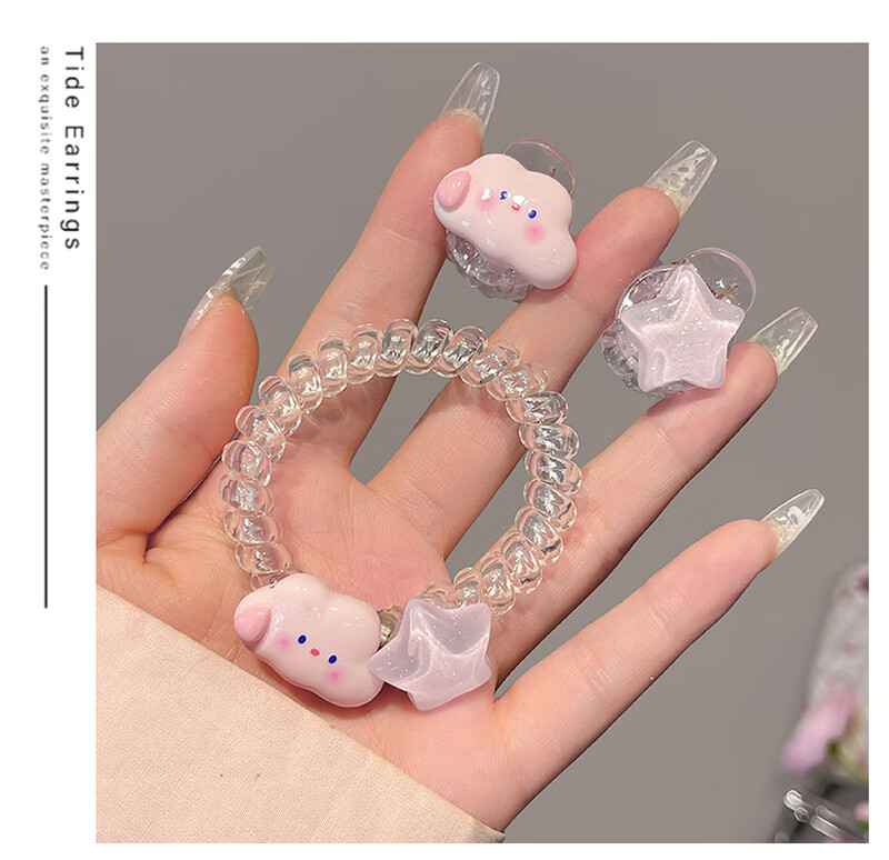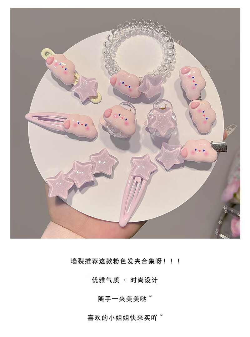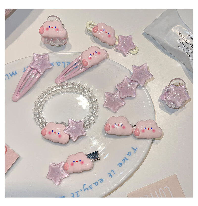 Pink cloud star hair clip female forehead bangs clip princess head grabber back head bb clip cute hair tie headdress pink cloud hair clip