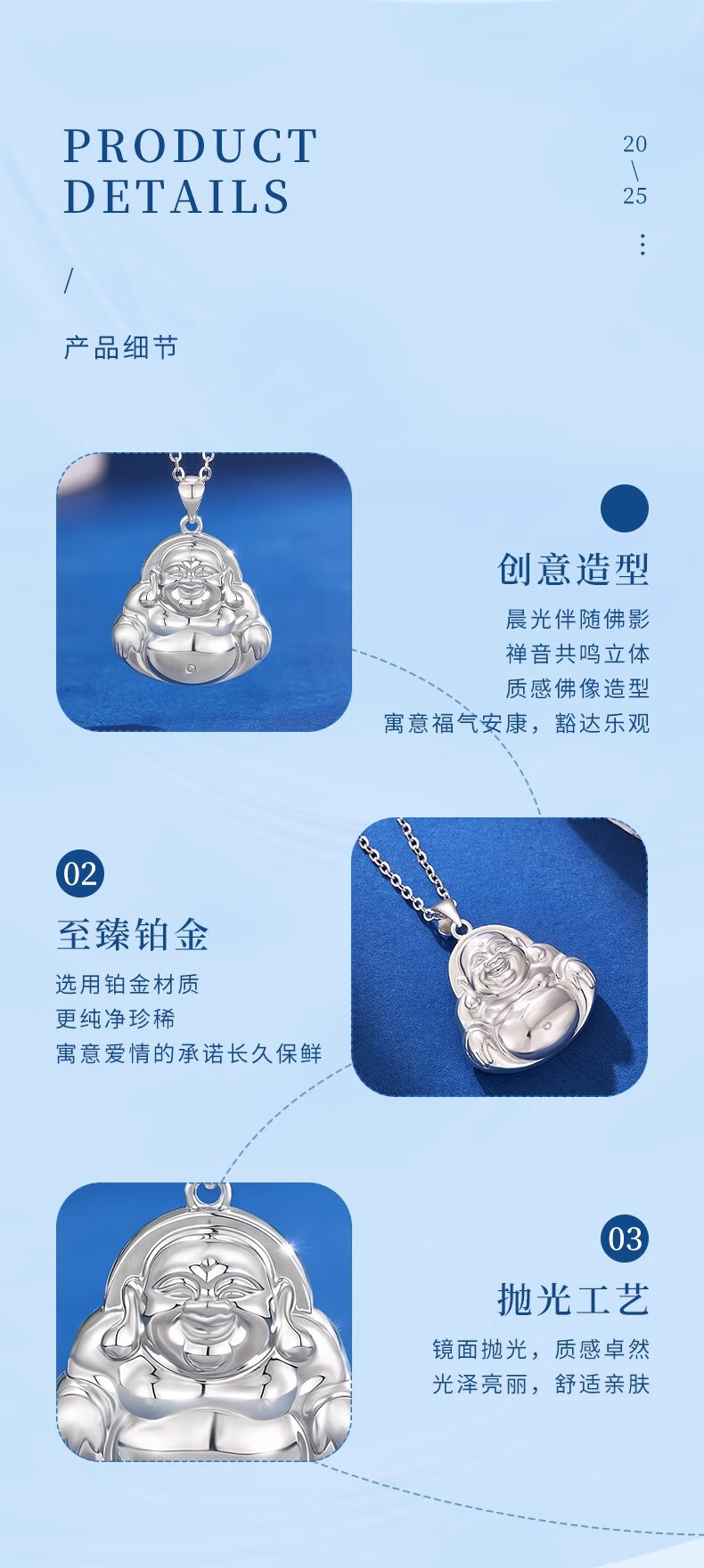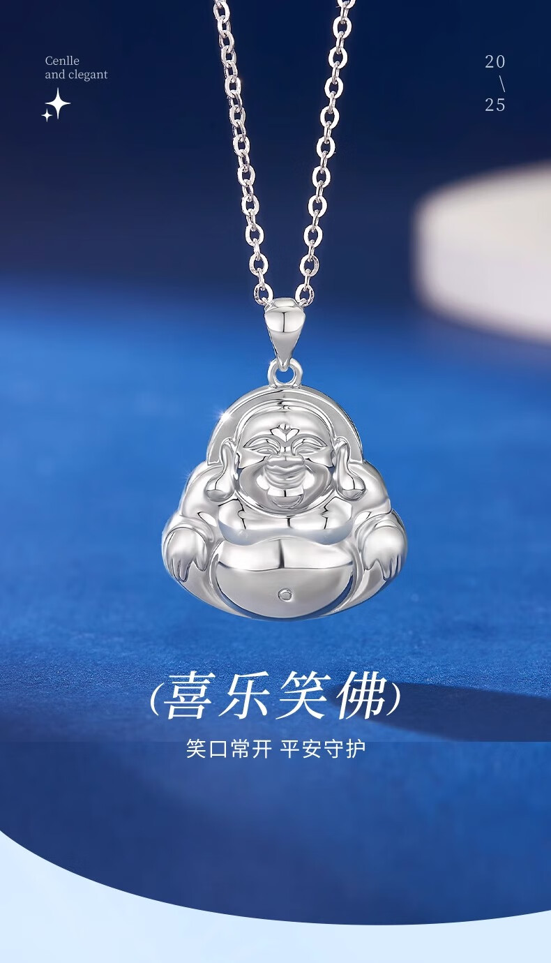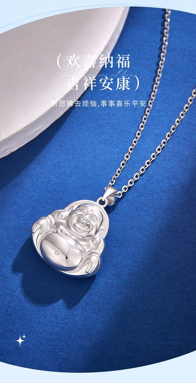 CHINA GOLD PT950 Platinum Smiling Buddha Pendant Necklace for Women Platinum Valentine's Day Birthday Gift for Girlfriend and Wife Platinum Smiling Buddha Pendant Free Sterling Silver Chain Approximately 7.6g