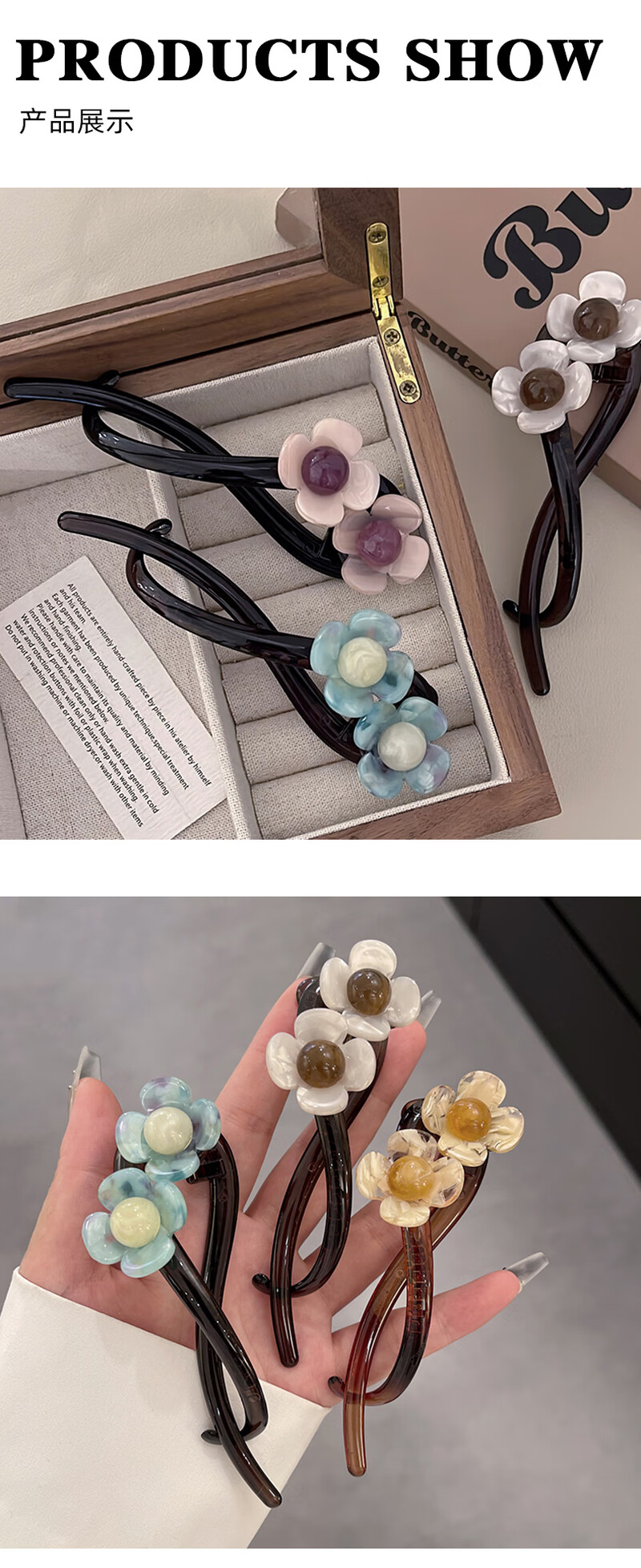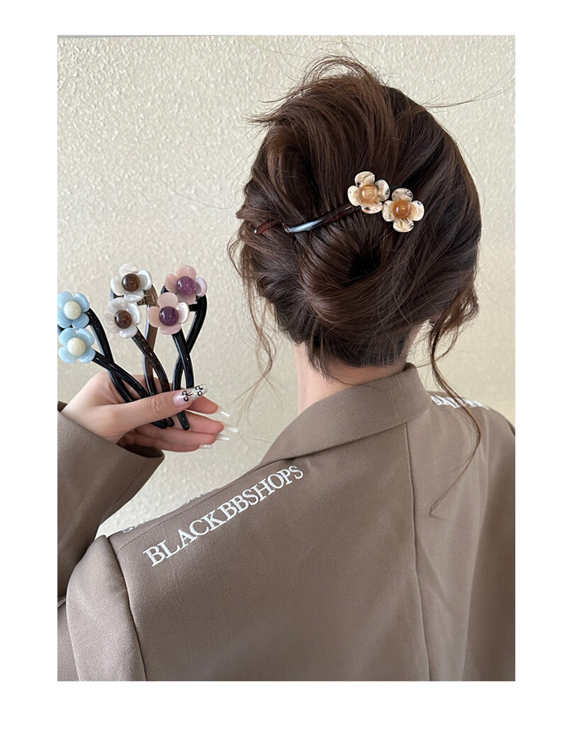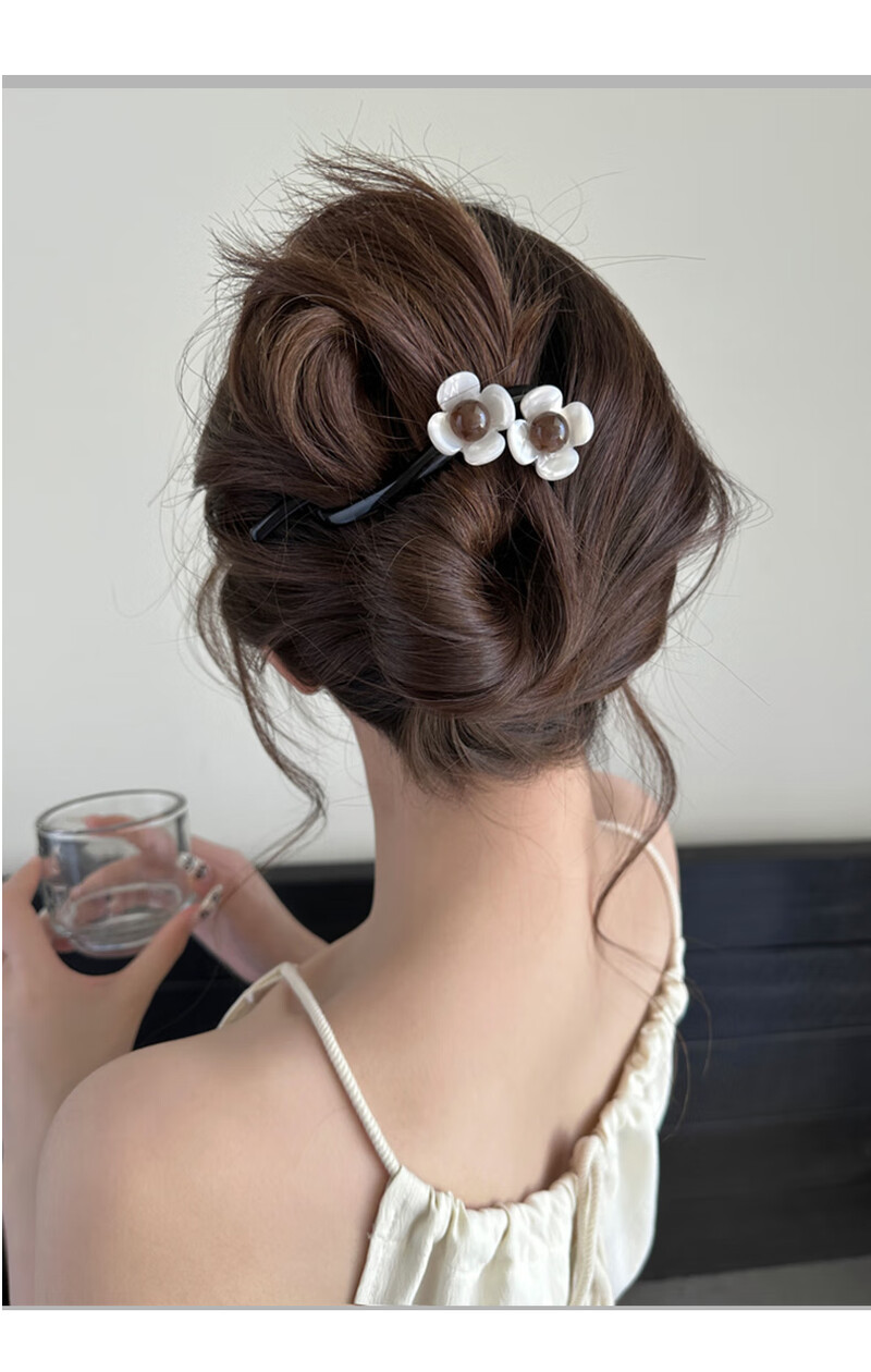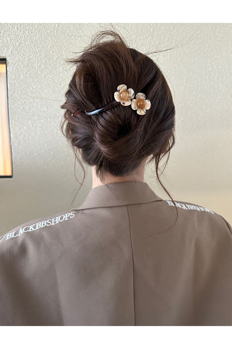 Retro style flower one-word hairpin for women with hair on the back of the head twisting clip hairpin hairpin apricot flower