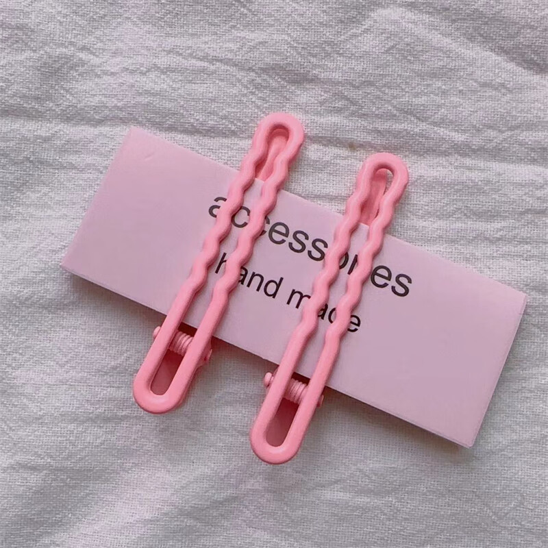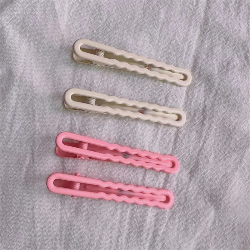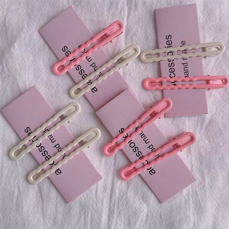 Dopamine color clip girly heart wave clip broken hair bangs clip pink off-white large hair clip hair accessories black 4 pieces