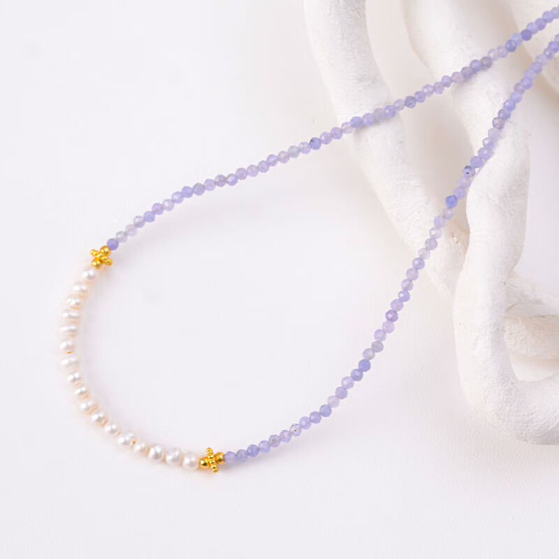 Shengbei natural tanzanite necklace ins style simple tanzanite pearl necklace for women 2025 new women's necklace tanzanite with pearls 40cm+5cm