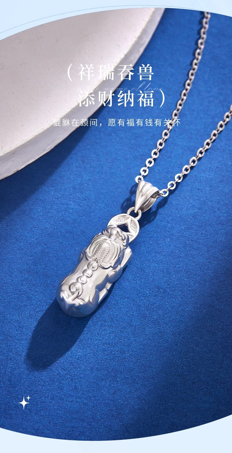 China Gold (CHINA GOLD) PT950 Platinum Lucky Pixiu Pendant Necklace for Women Platinum Valentine's Day Birthday Gift for Girlfriend and Wife PT950 Platinum Pixiu Pendant Free Sterling Silver Chain Approximately 7.8g