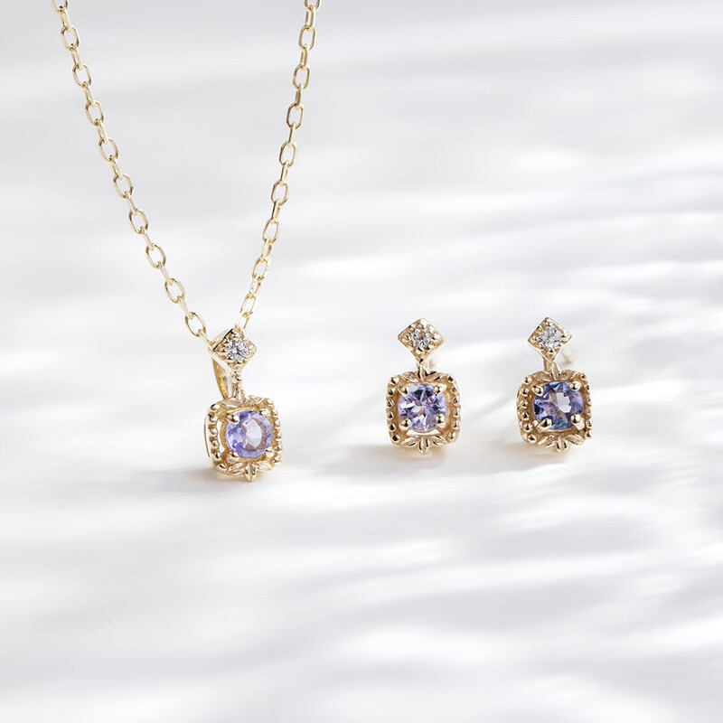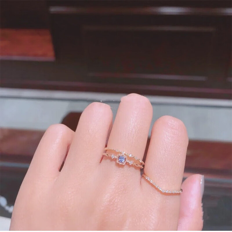 Shengbei New Purple Retro Natural Tanzanite Ring Mysterious Treasure Box Square Diamond Ring Earrings Necklace Ring (Please note the size when photographed)