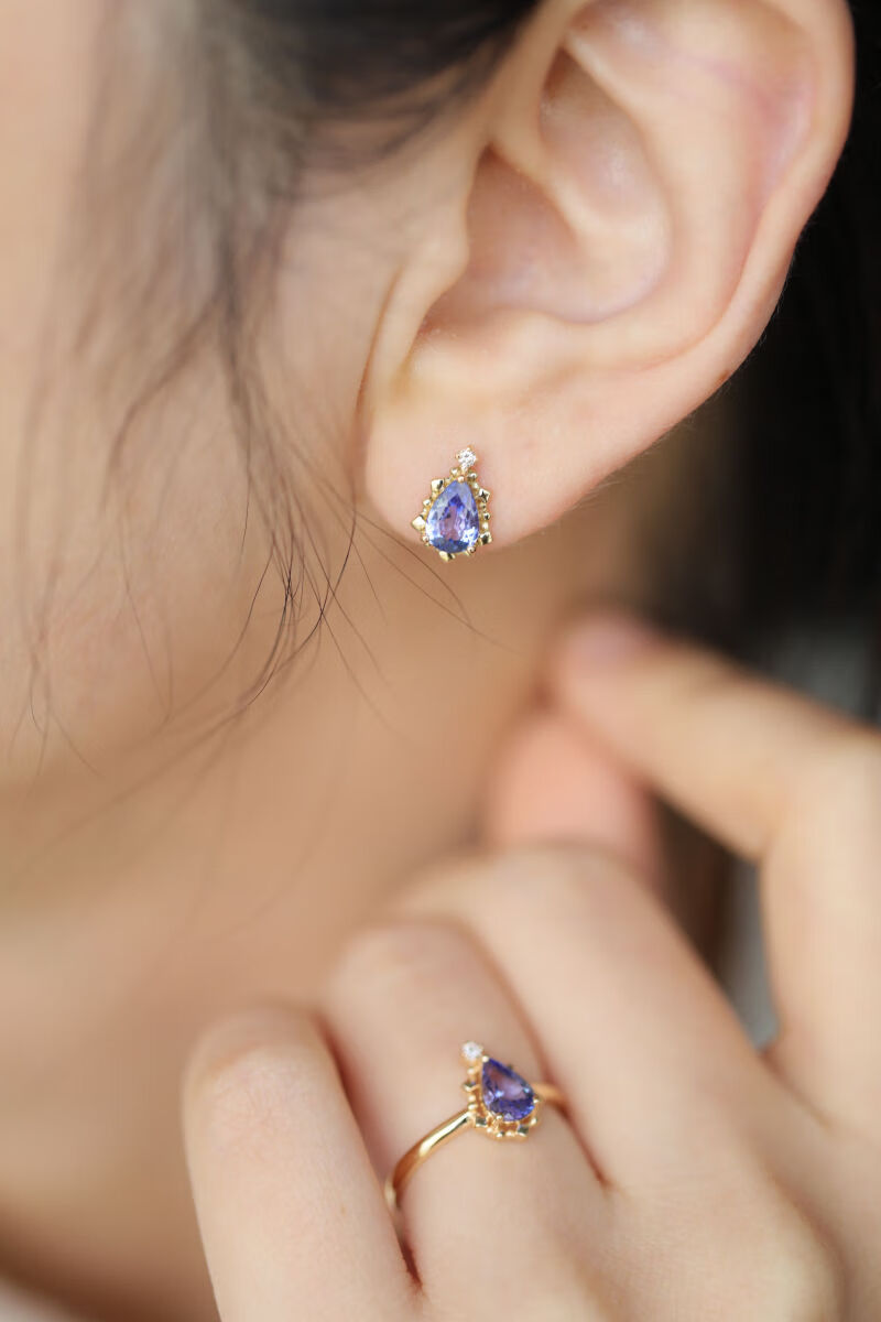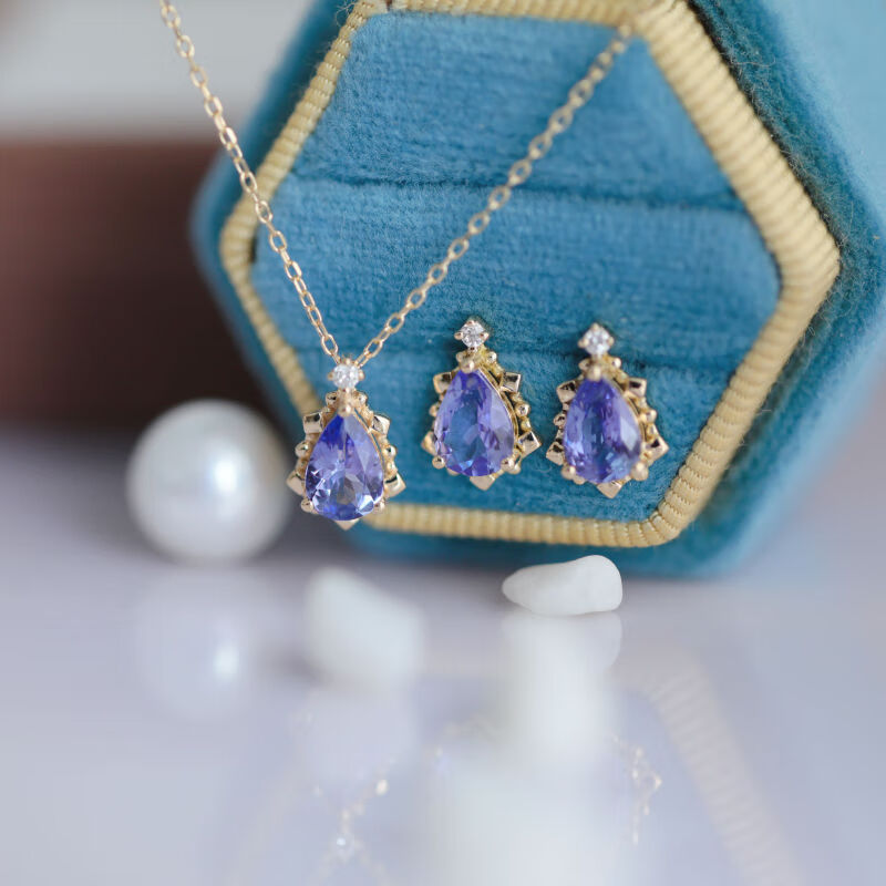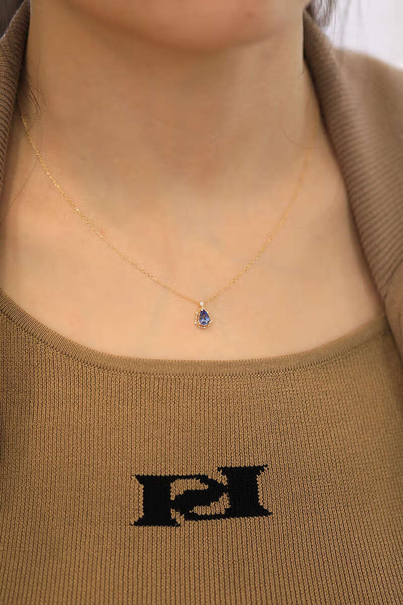 Shengbei Natural Tanzanite Water Drop Necklace Earrings Tanzania 18k Gold Diamond Inlaid Clavicle Chain Gift Pendant Earrings