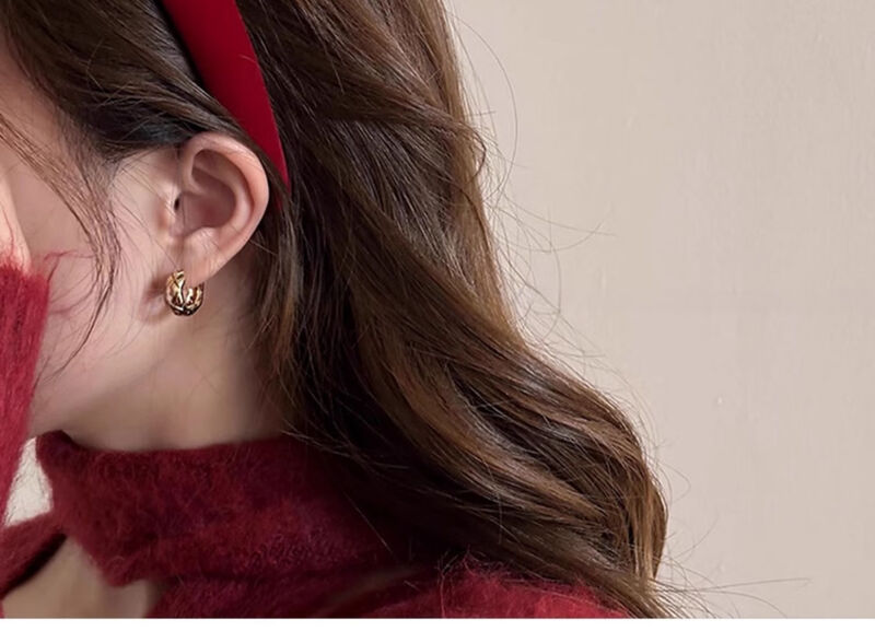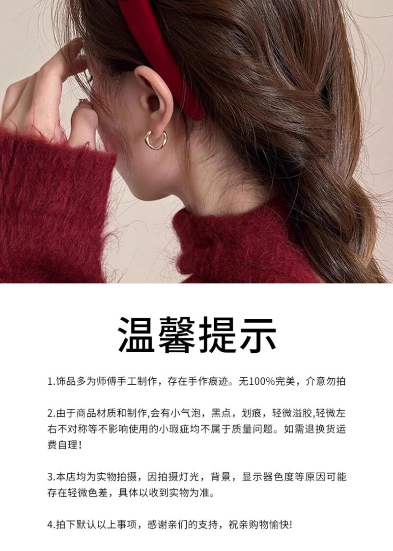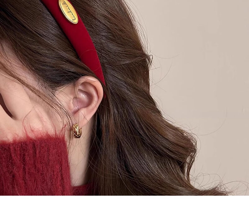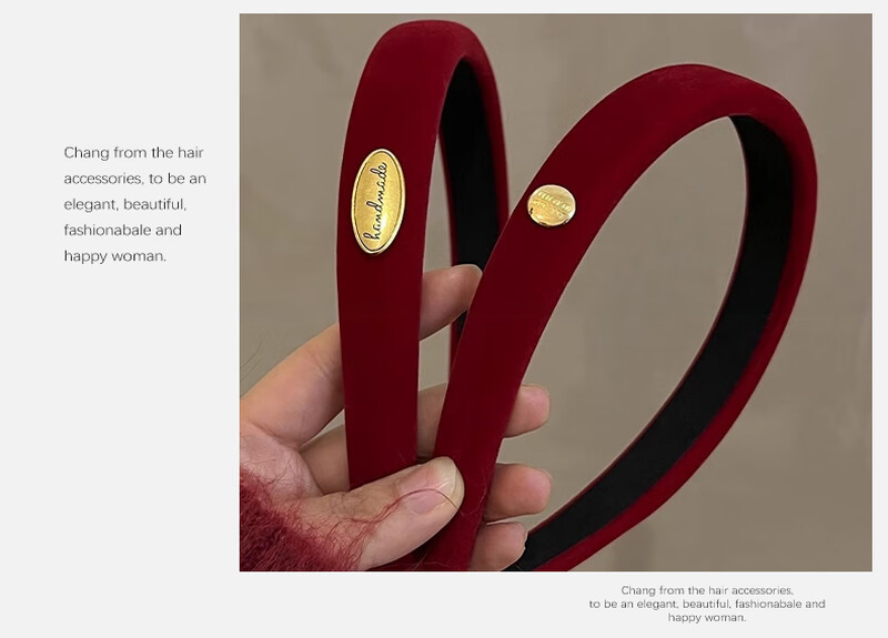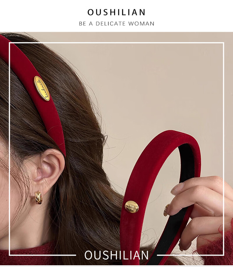 Uplifting burgundy velvet headband for women, autumn and winter temperament, gold label hairpin, New Year's atmosphere headband, small oval, gold label, red