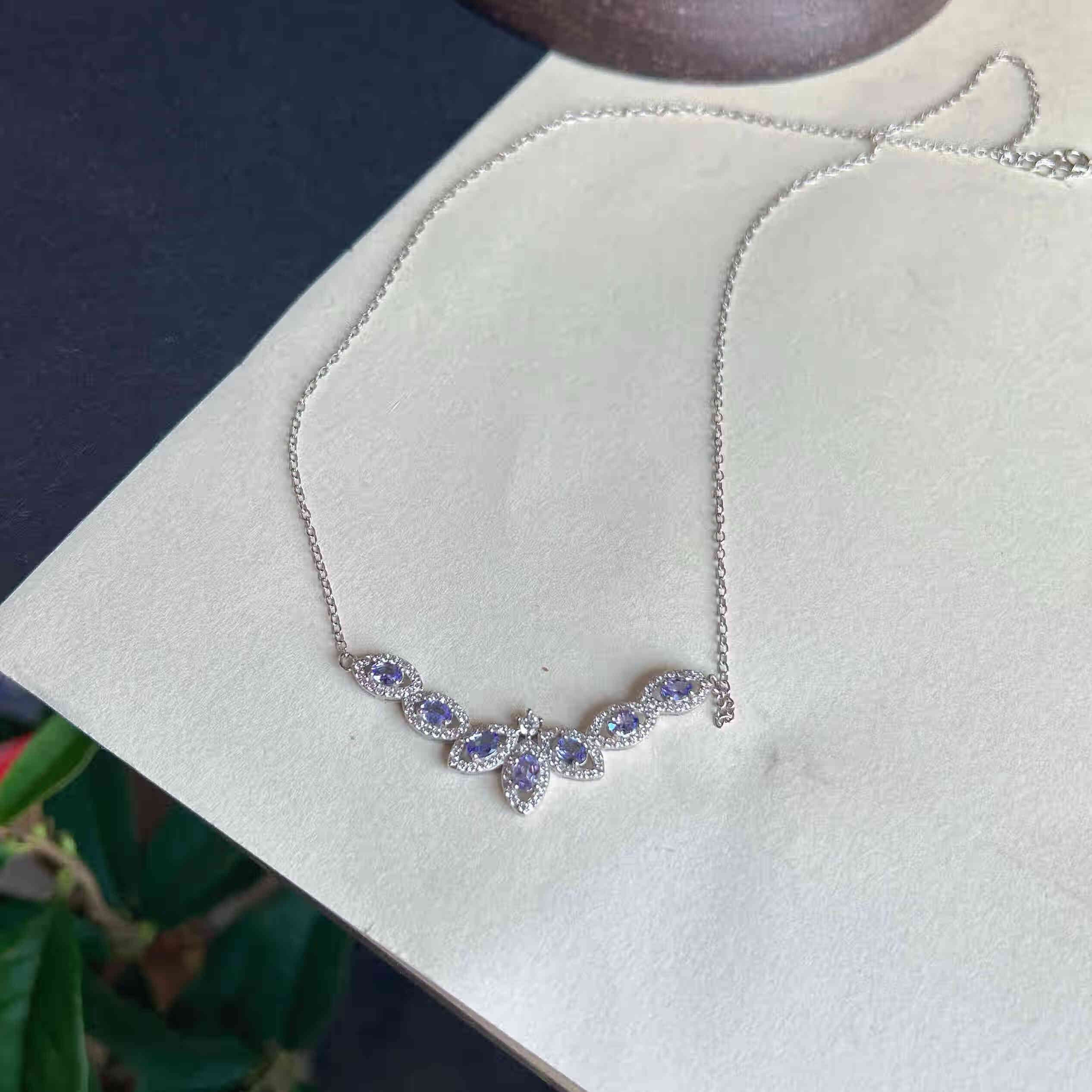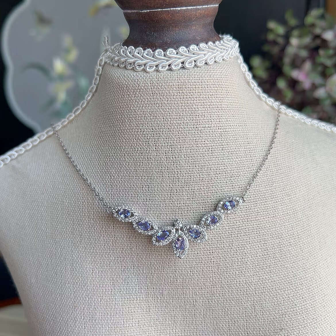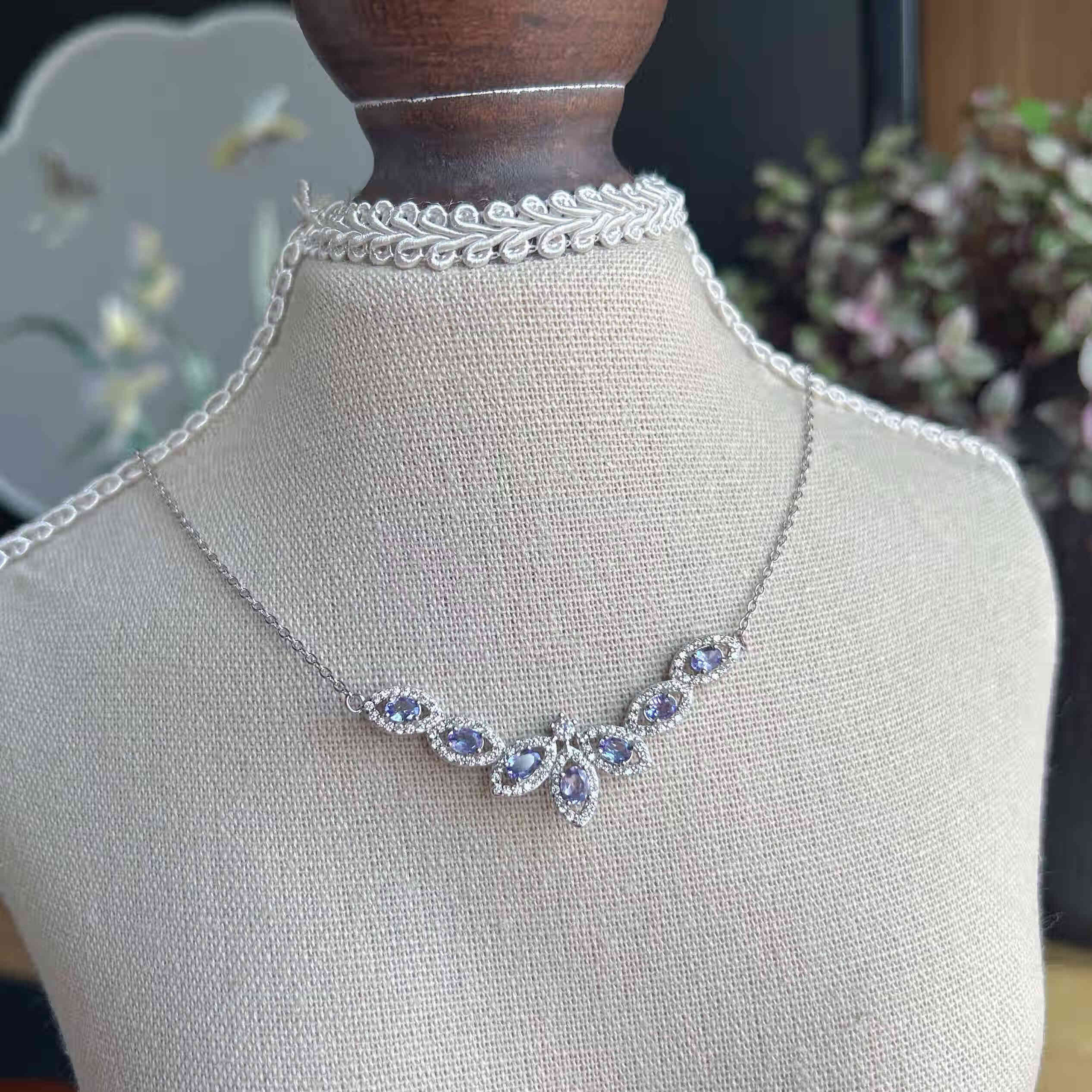 Shengbei natural jewelry dreamy blue and purple tanzanite necklace evening low-key luxury necklace party style gemstone silver inlaid