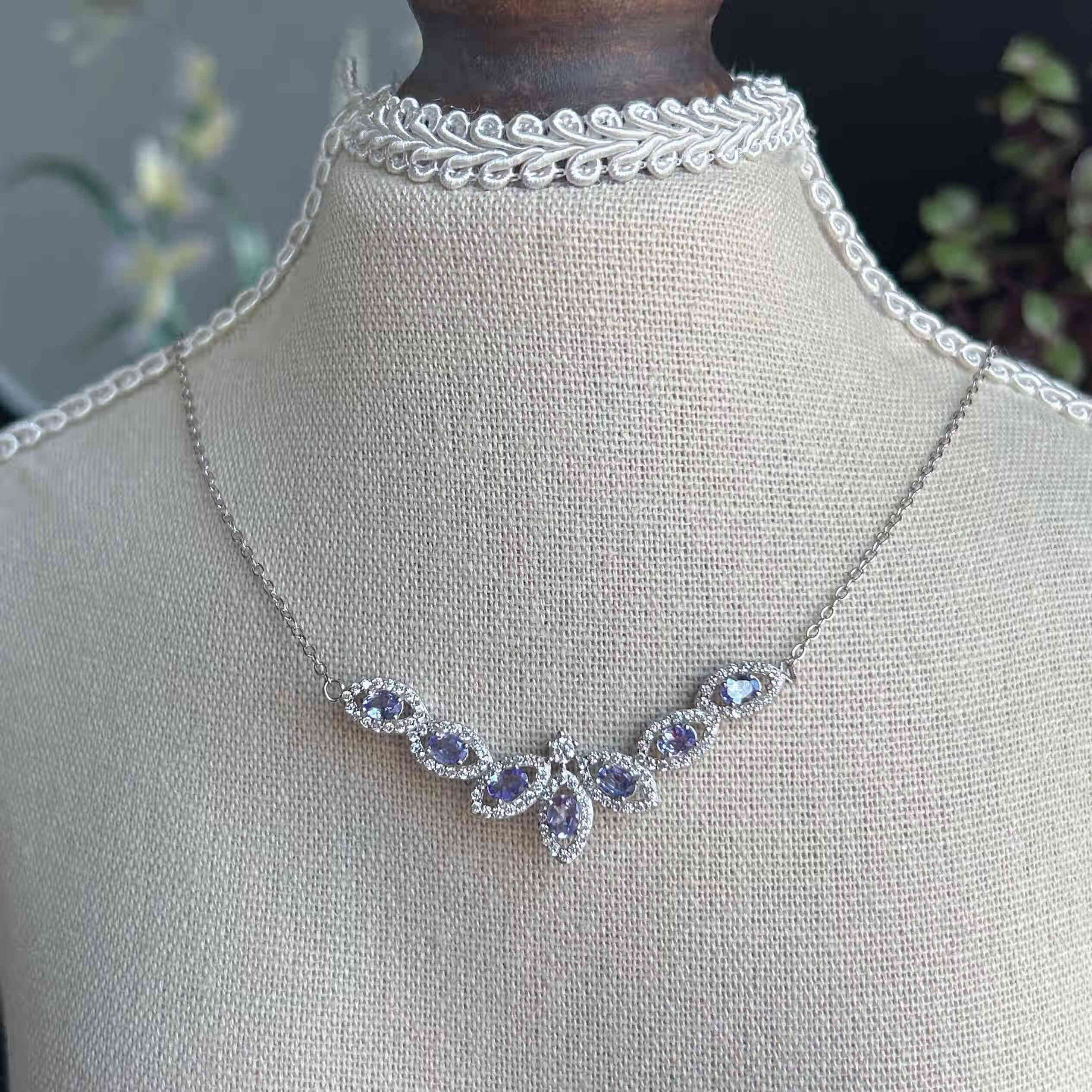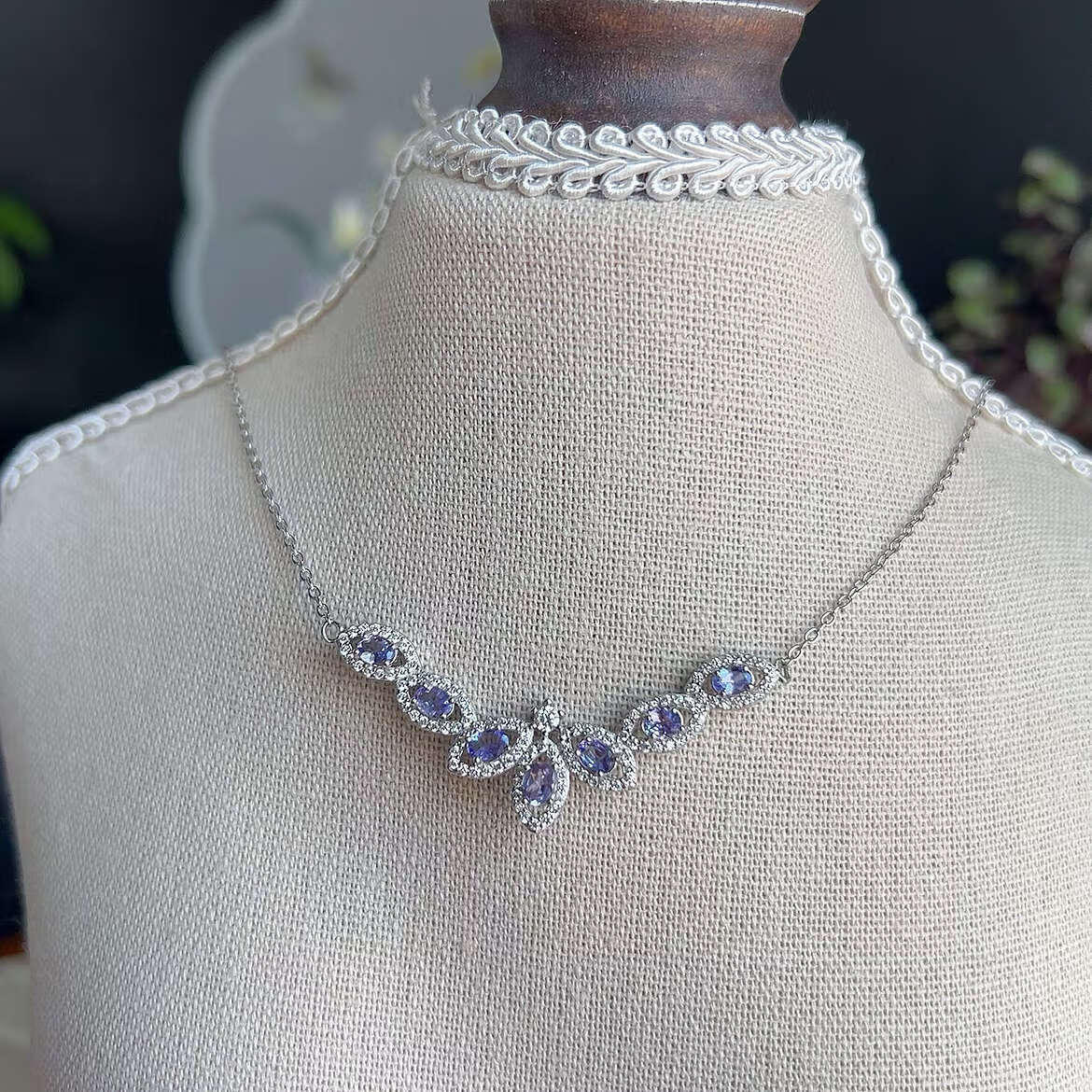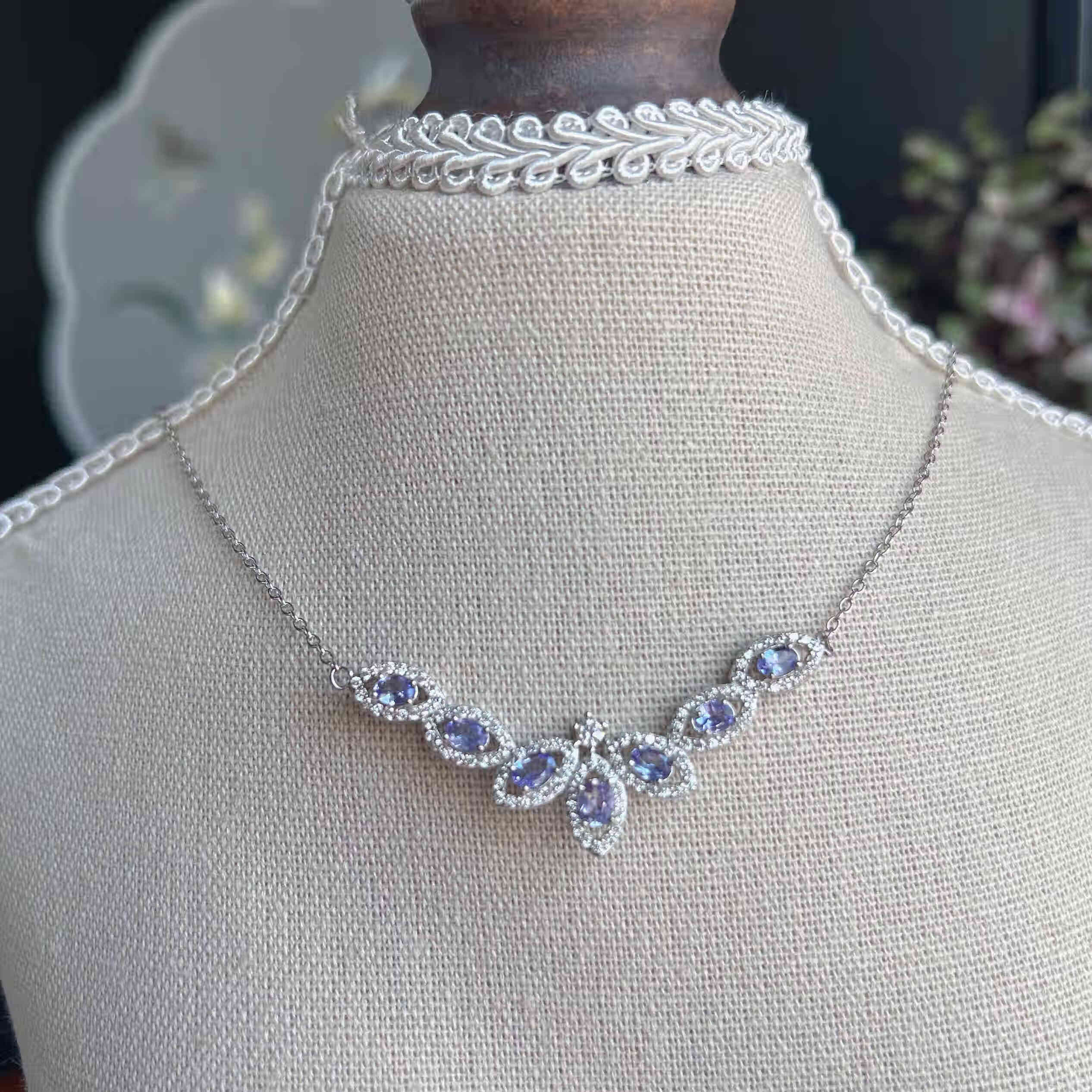 Shengbei natural jewelry dreamy blue and purple tanzanite necklace evening low-key luxury necklace party style gemstone silver inlaid