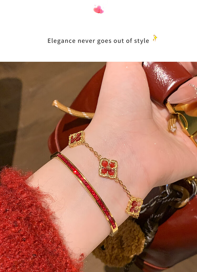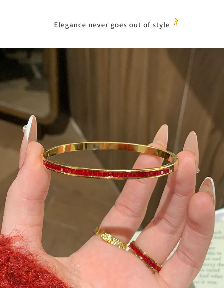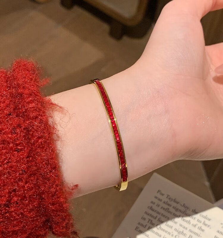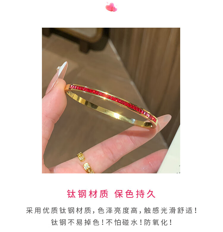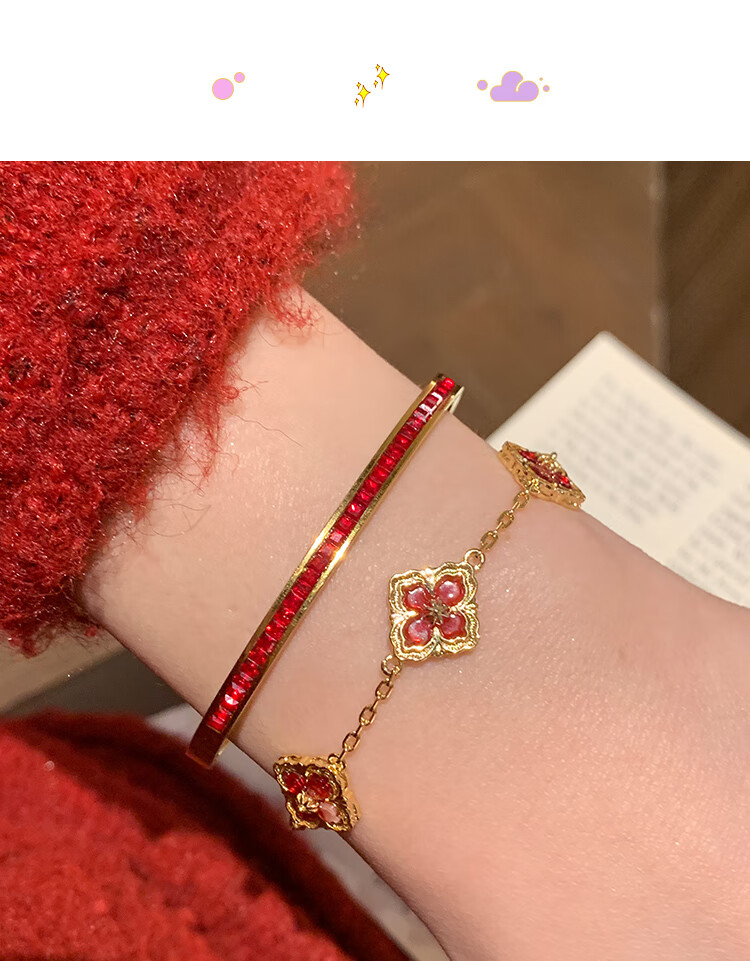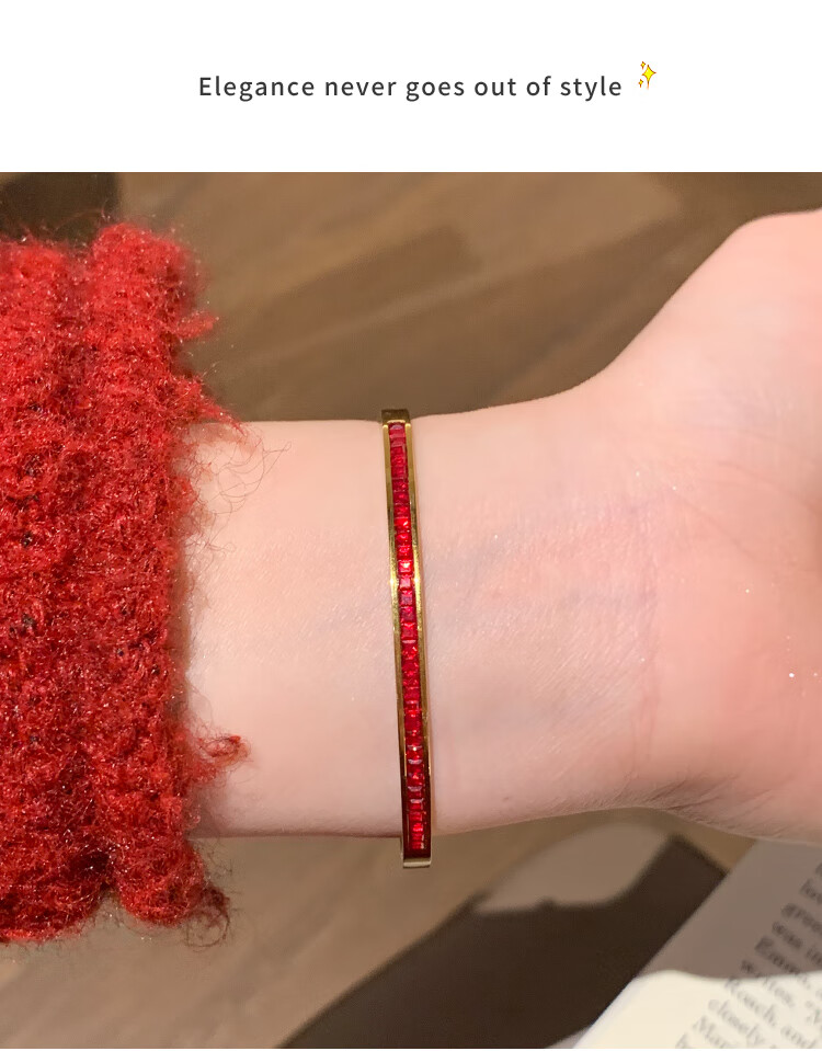 Huayouxin persimmon red diamond and baby's breath star-filled titanium steel bracelet for women, high-end element ring bracelet, open bracelet bracelet, New Year's hand jewelry, red diamond, baby's breath and star-filled diamond bracelet-titanium steel
