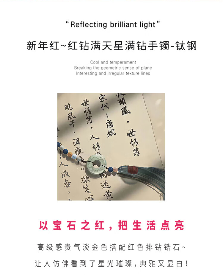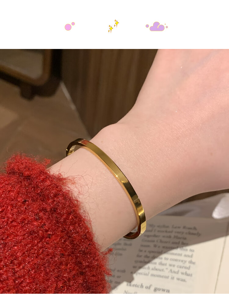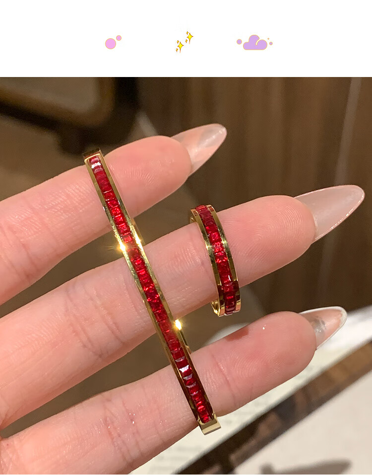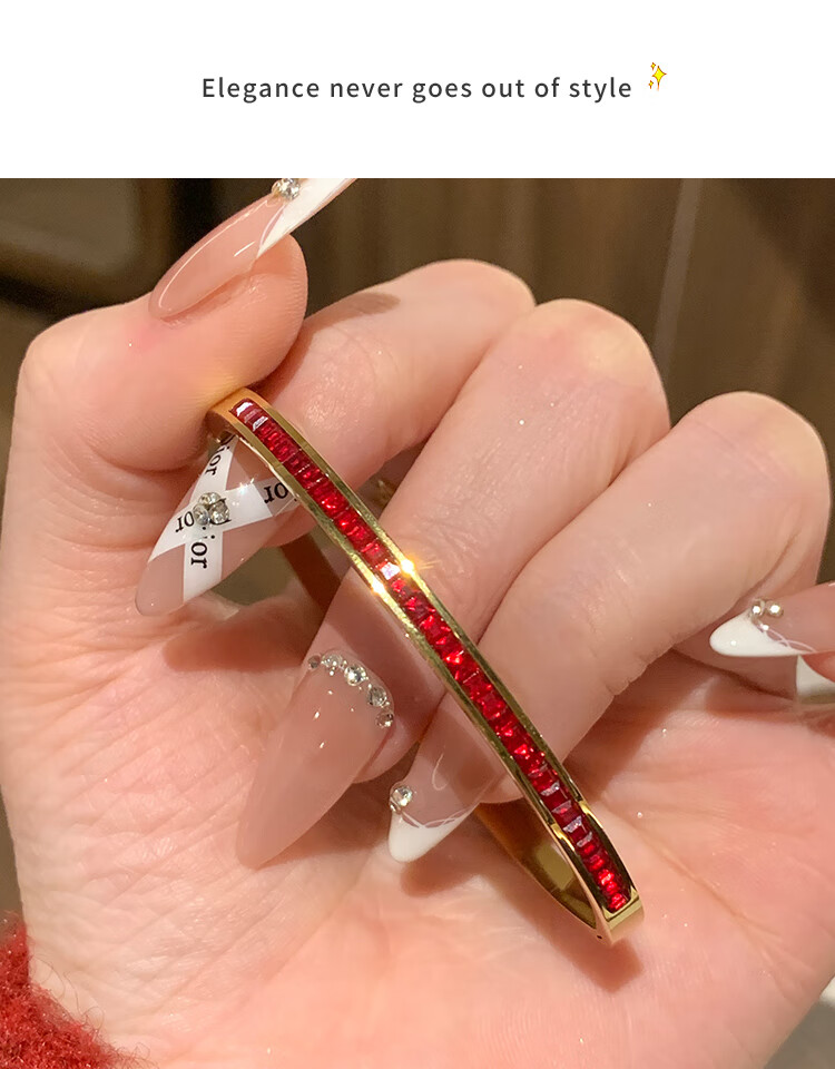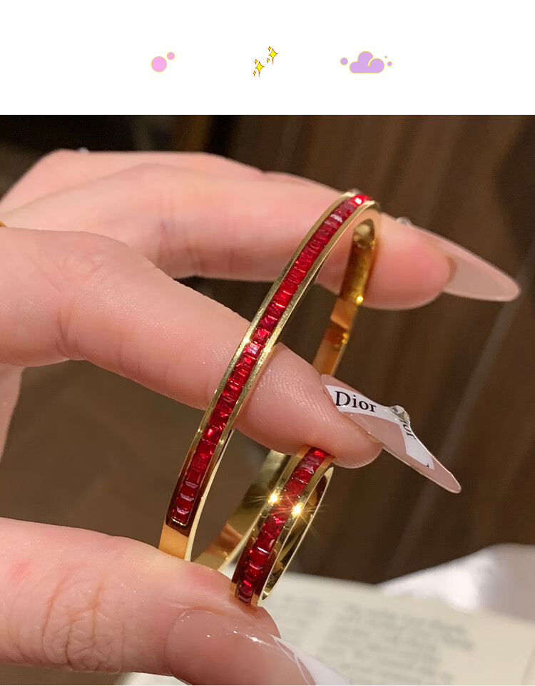 Huayouxin persimmon red diamond and baby's breath star-filled titanium steel bracelet for women, high-end element ring bracelet, open bracelet bracelet, New Year's hand jewelry, red diamond, baby's breath and star-filled diamond bracelet-titanium steel