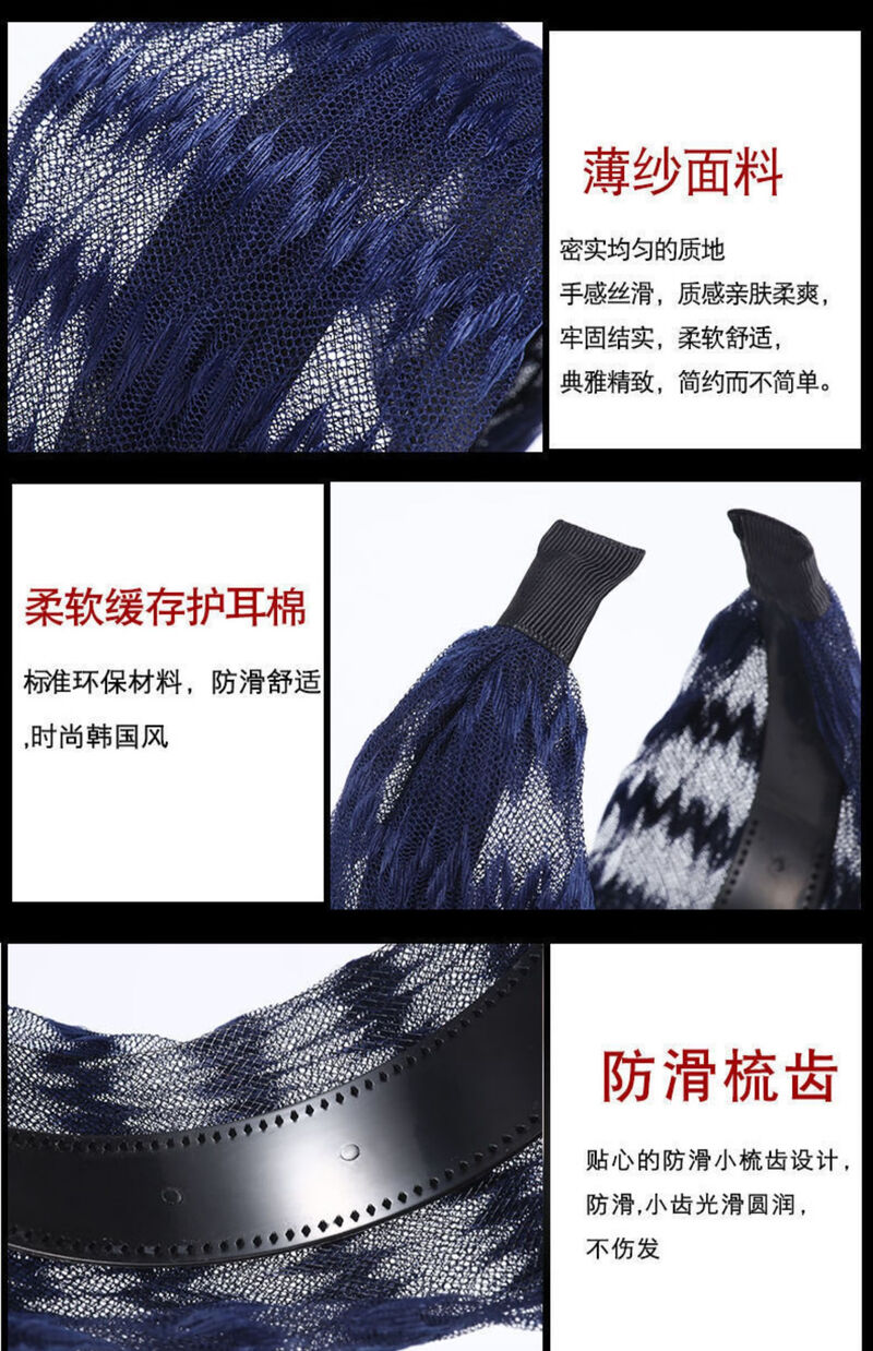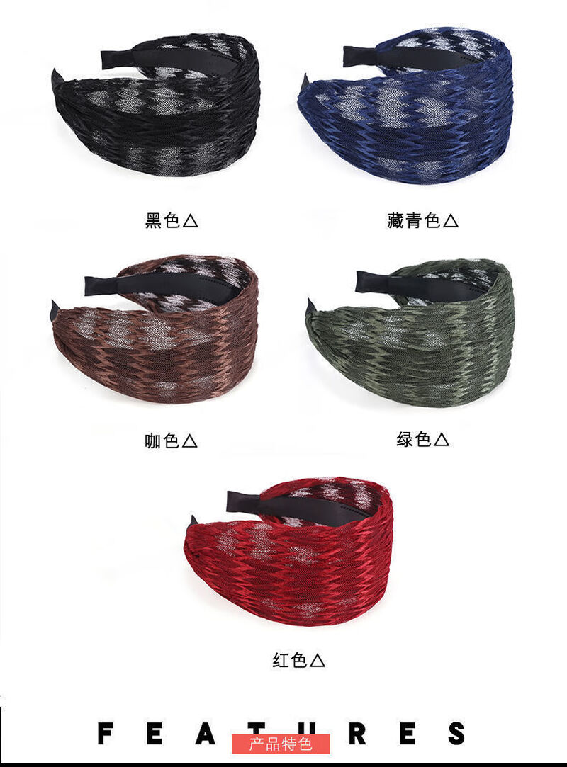 Corrugated mesh to cover white hair, headband to cover artifact, headband to hold down hair, spring and autumn style, fashionable wide-brimmed headband for women, black