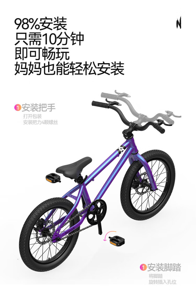 Little Explorer children's bicycle 3-10 years old bicycle Challenger 300pro children's bicycle children's bicycle challenger 300pro + blue charm purple + disc brake + gift bag 20 inches, suitable for heights 130-160cm