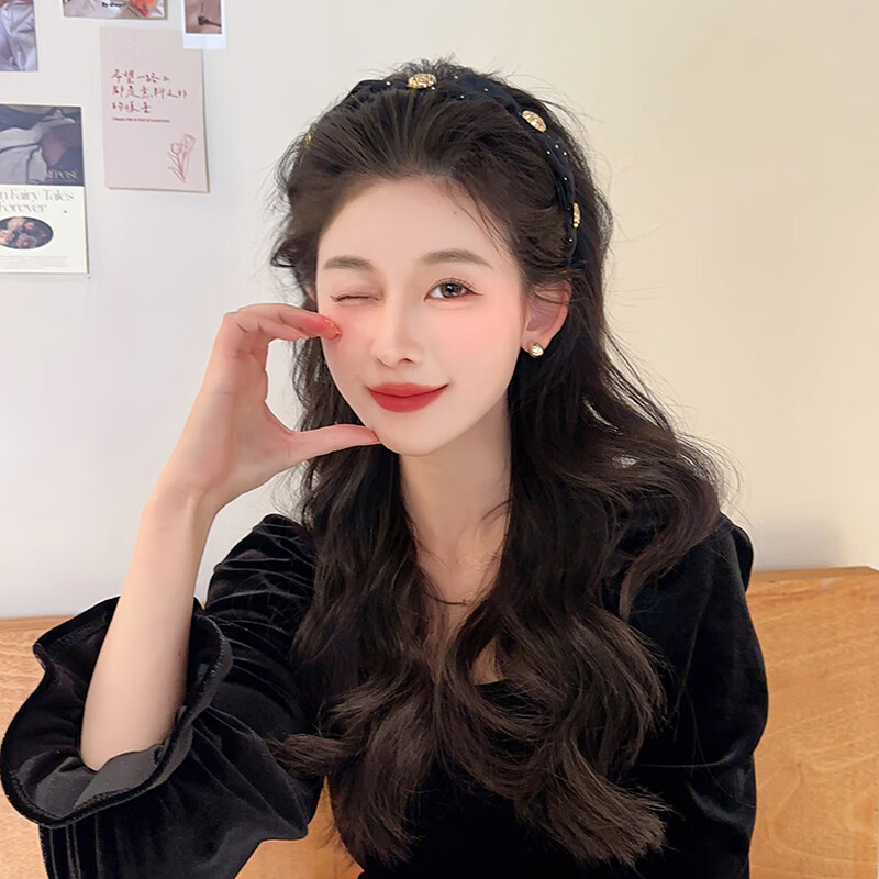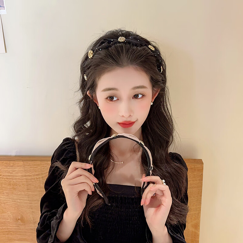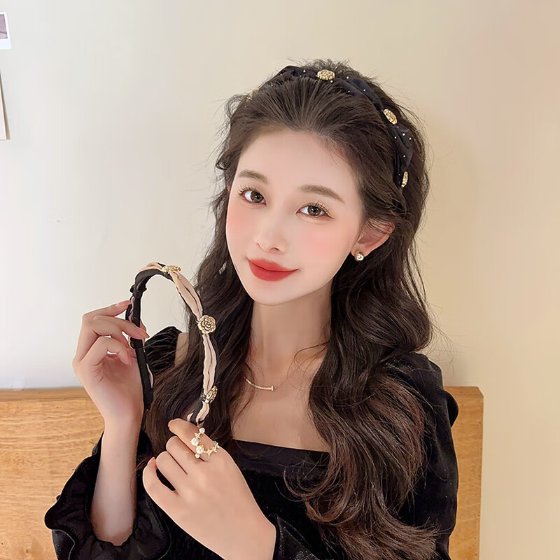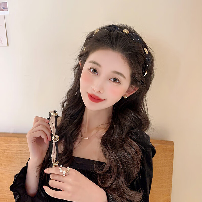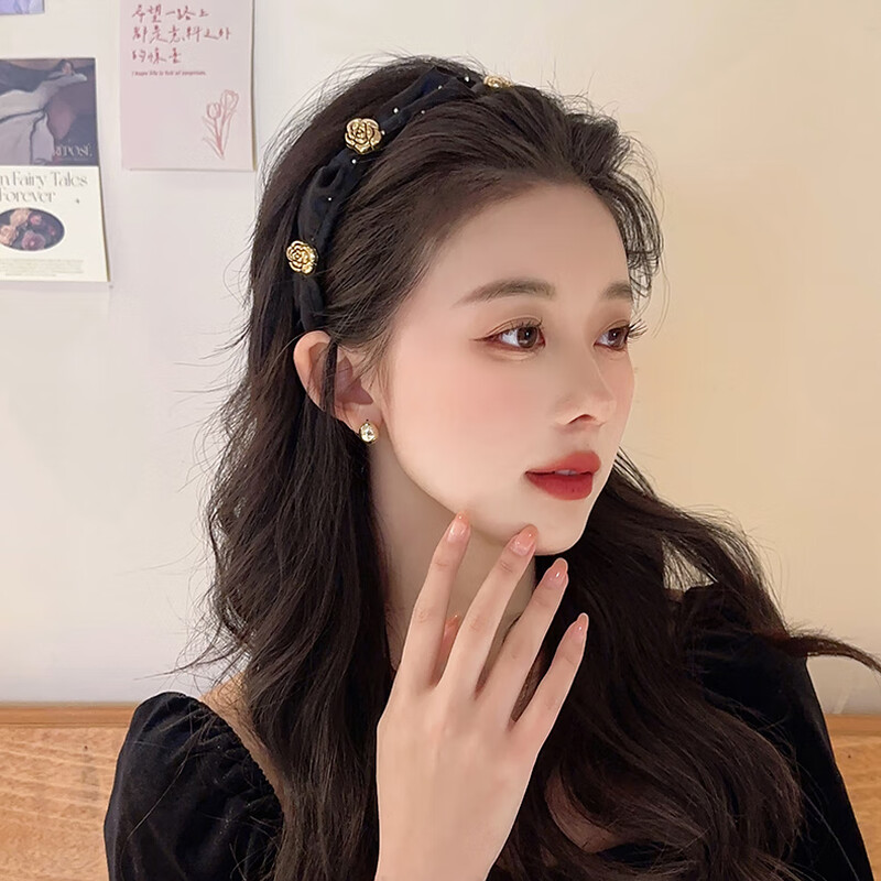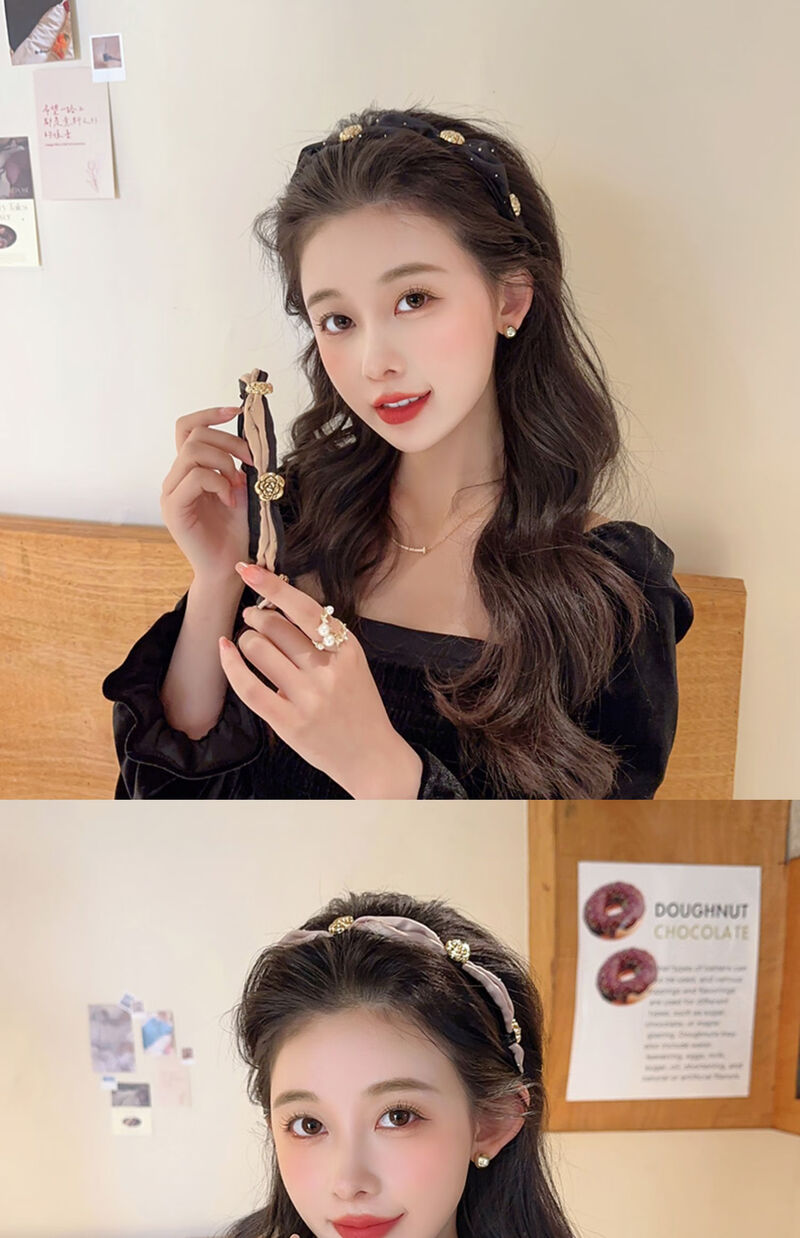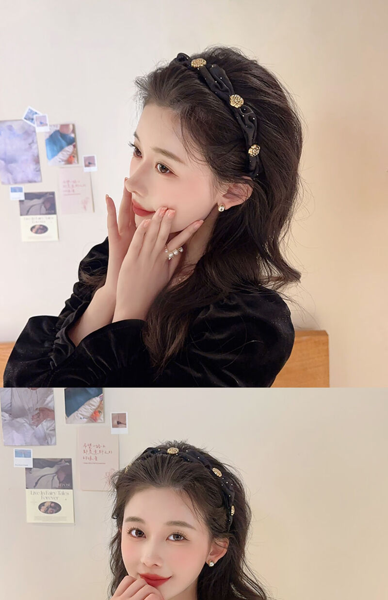 Temperament camellia retro headband for women with high skull and face, small pressed hair headband, high-end hairpin, headband, hair bundle, champagne color
