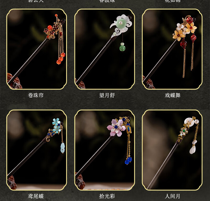 Wooden hairpin, ancient style, tassel, ancient costume hairpin, retro hairpin, Hanfu cheongsam headdress, hairpin for women, Hanyancui