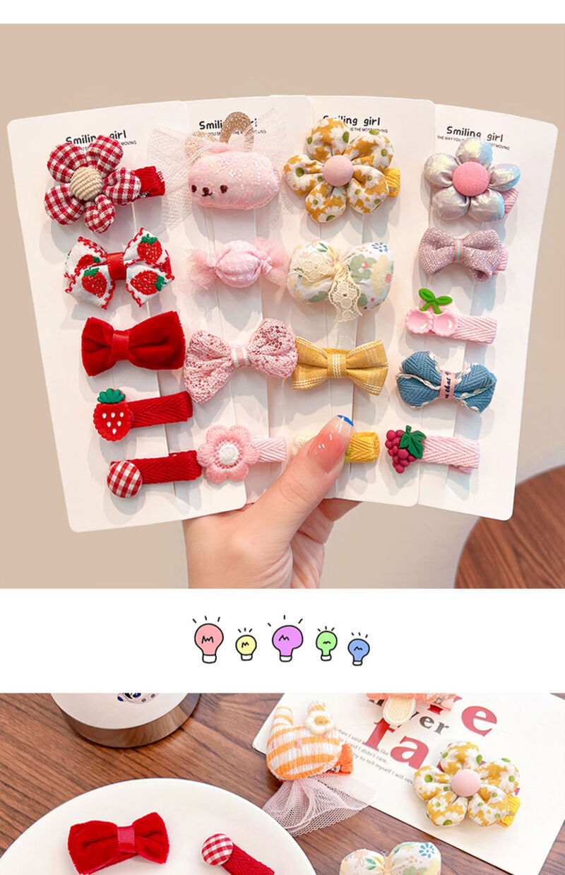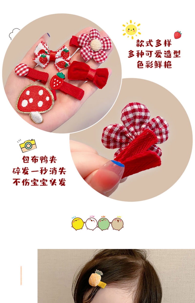 Baby girl hair clip infant and toddler all-inclusive cloth hair clip cute hair accessories children's bangs sweat hair clip headband red checkered strawberry 5-piece set