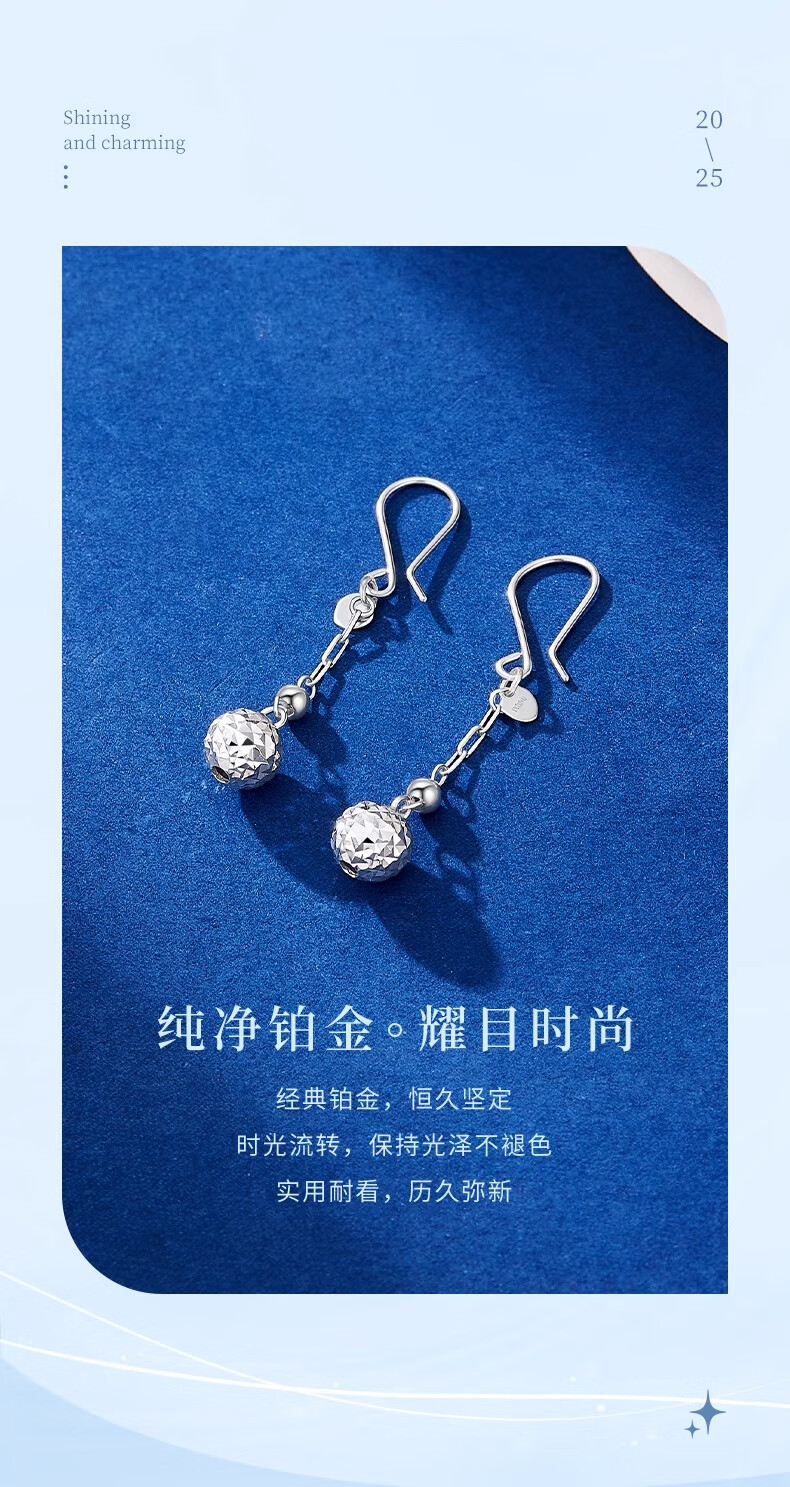 China Gold (CHINA GOLD) PT950 platinum crushed ice ice bead earrings for women new Valentine's Day birthday gift for girlfriend and wife Platinum crushed ice ice bead earrings about 2.3g