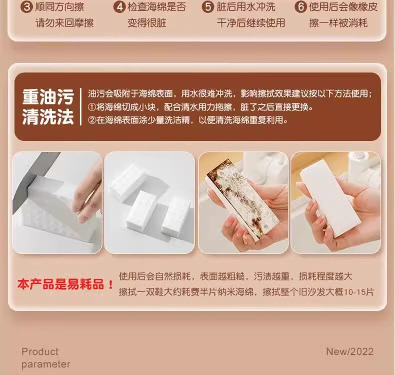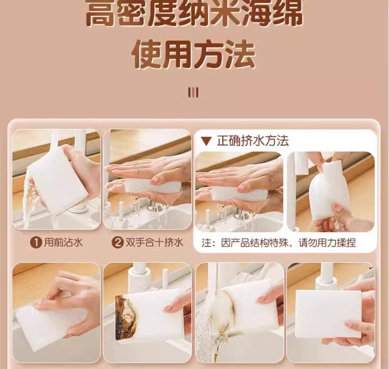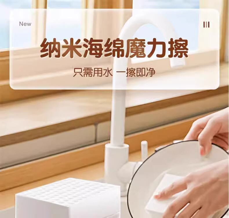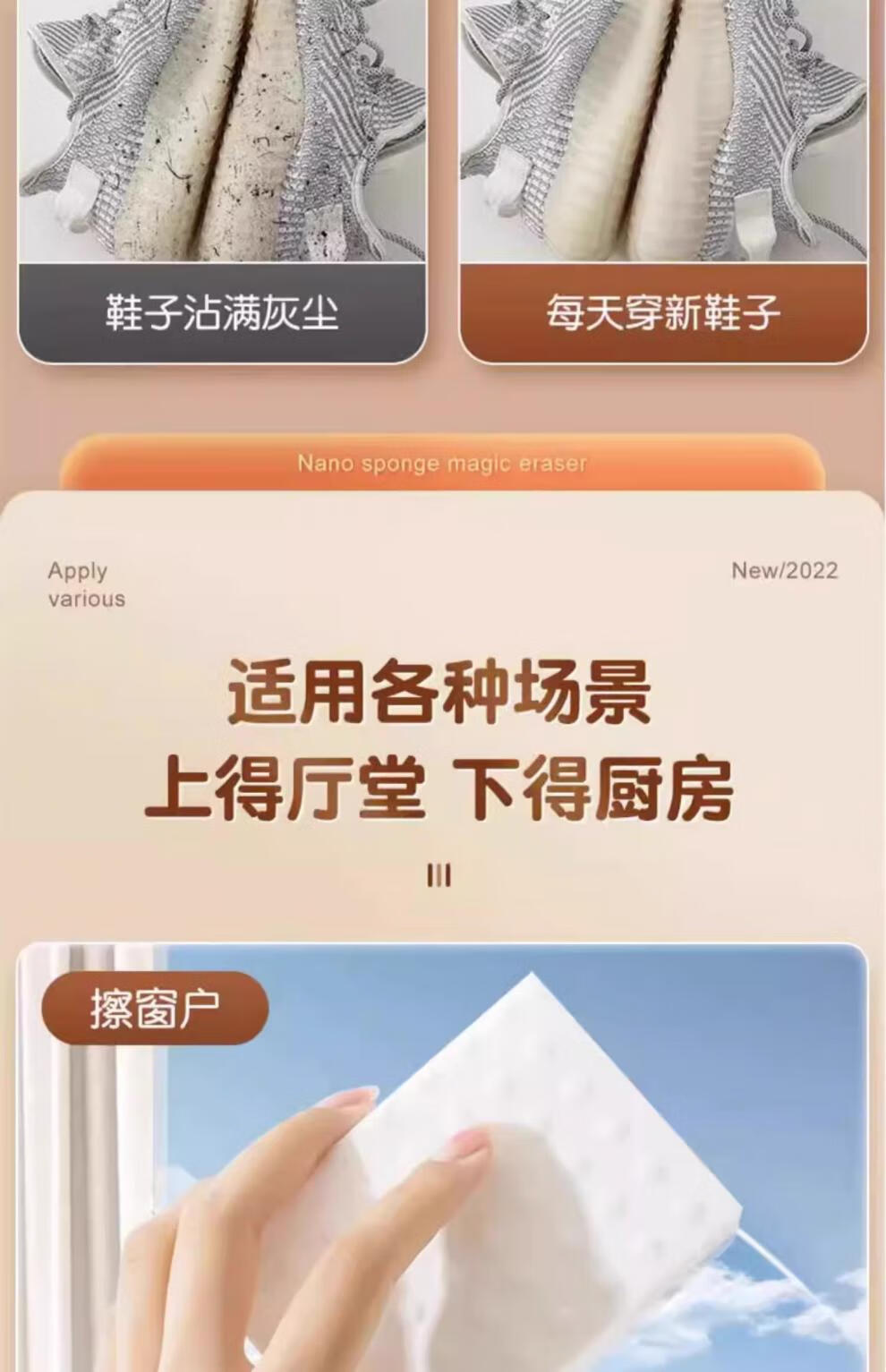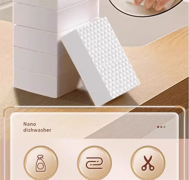 JCZS Japanese magic wipe kitchen household cleaning artifact high-density nano sponge for washing cups, dishes and pots, double-sided 20 times density, new upgrade, white 100 pieces