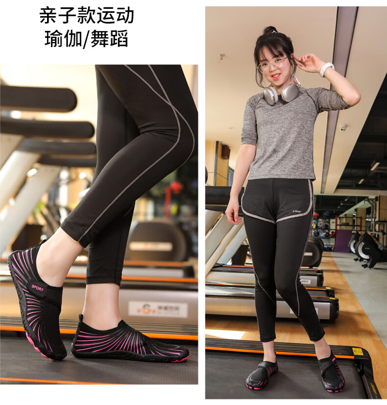 Digelon Indoor Sports Shoes Women's Silent Soft Sole Yoga Pilates Skipping Shoes Non-Slip Shock Absorbing Squat Training Fitness A09 Black Purple 38