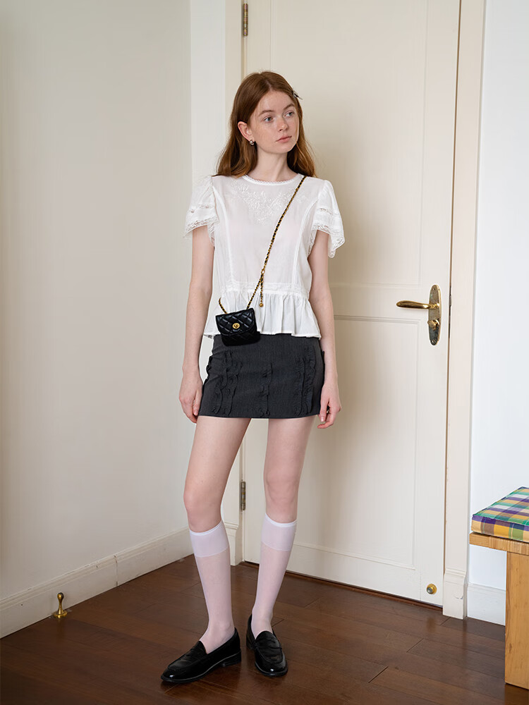 EGGKA gray design earring suit material skirt women's summer new high-waist temperament A-line armless skirt gray L