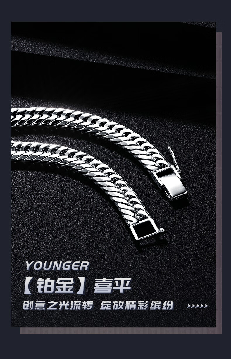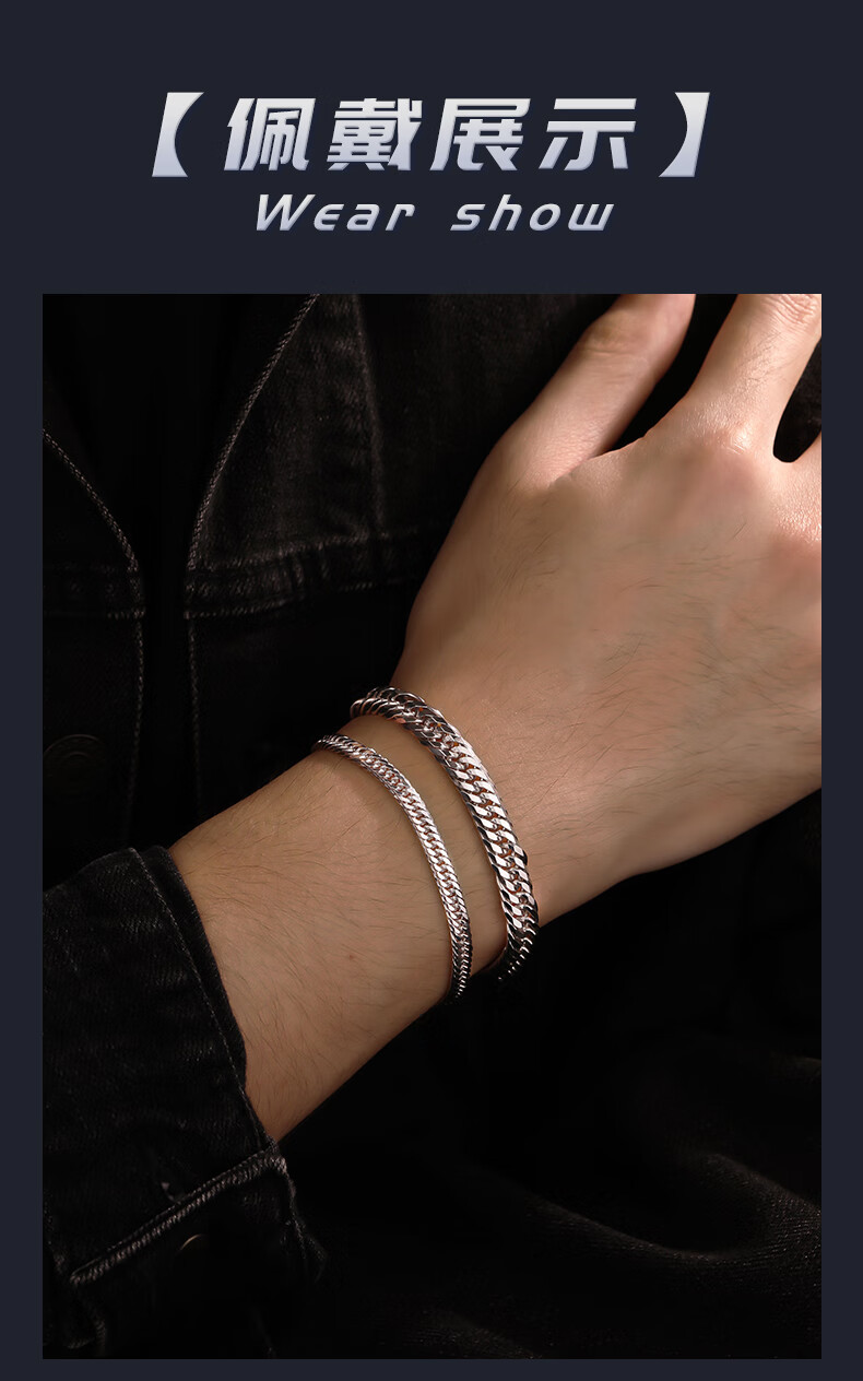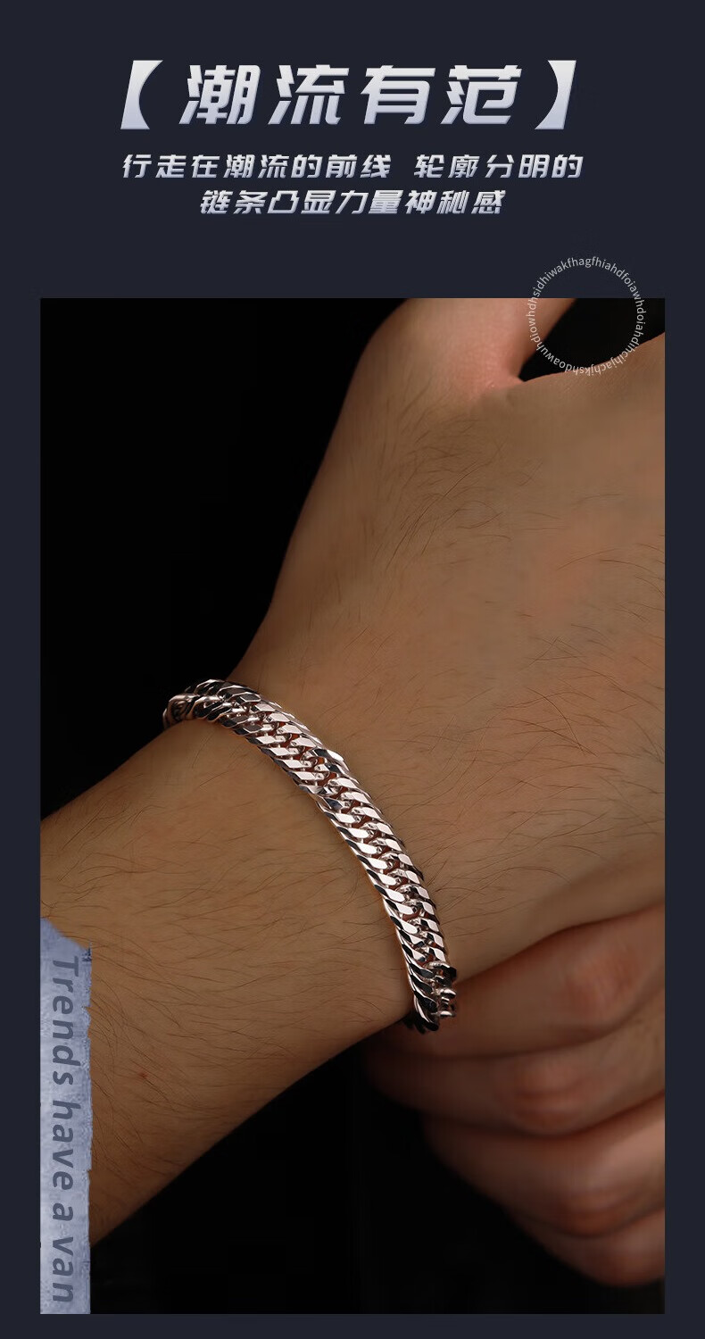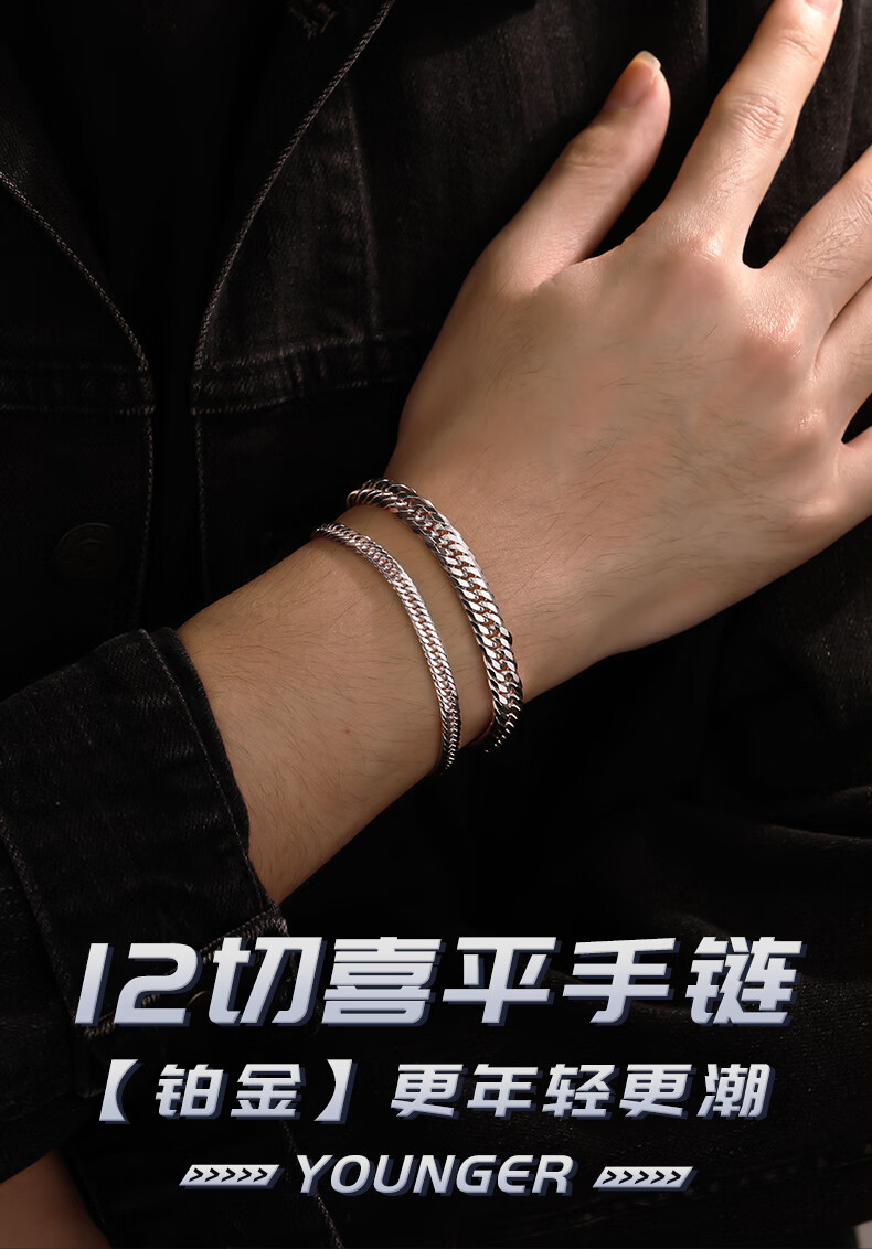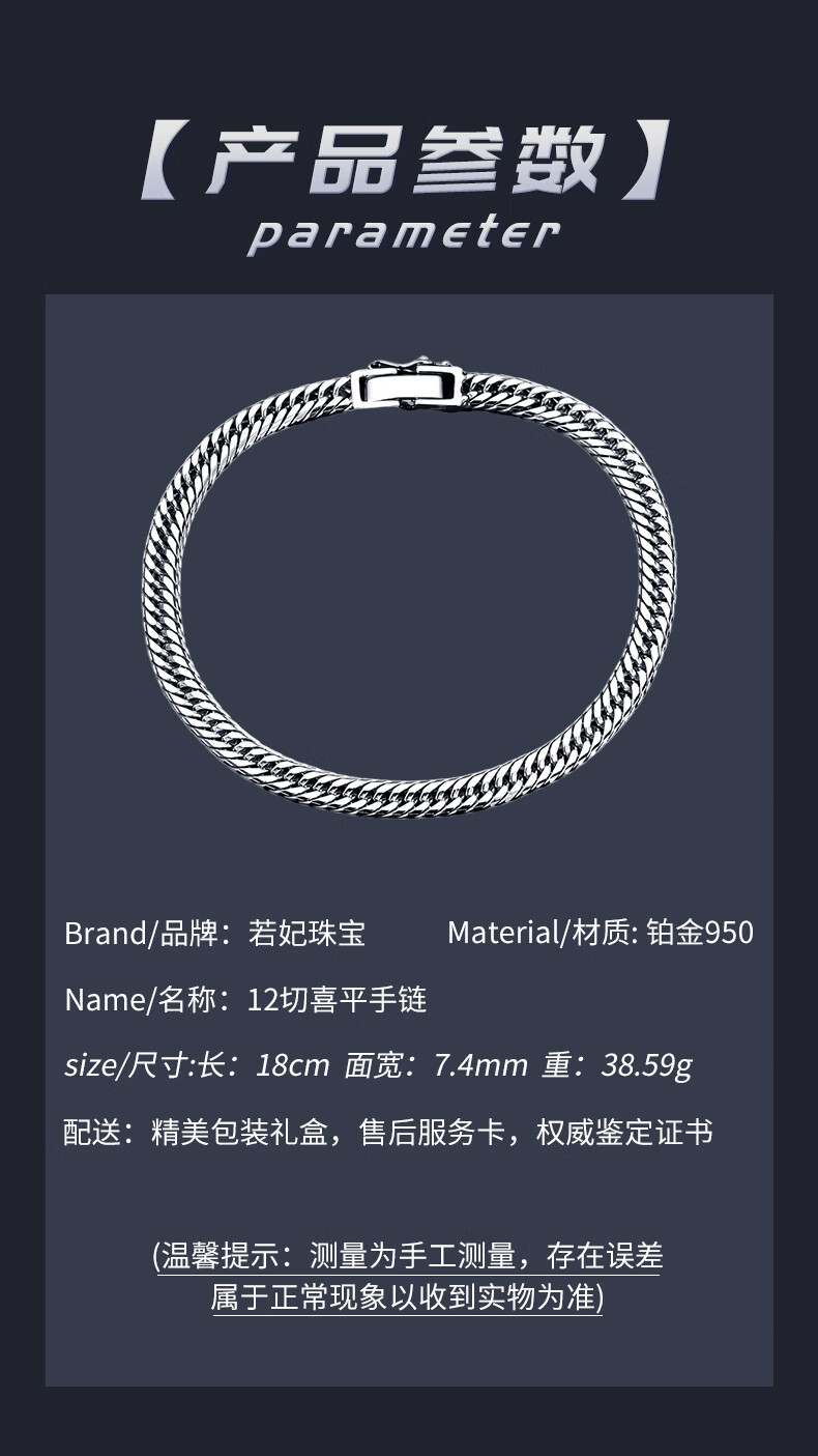 Ruofei platinum bracelet men's pt950 platinum men's bracelet trendy brand 12-cut Xiping bracelet platinum bracelet men's gift platinum 950 length 18cm 38-39g thick 7.4mm
