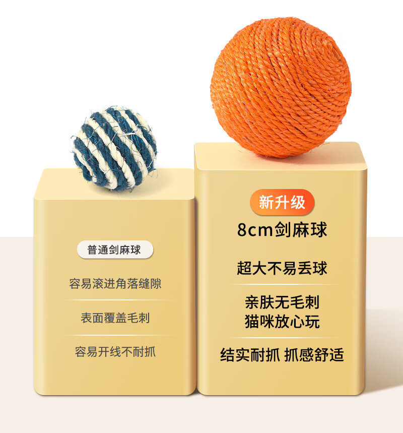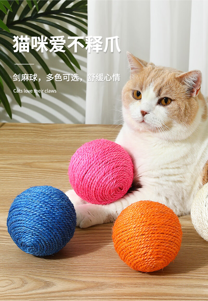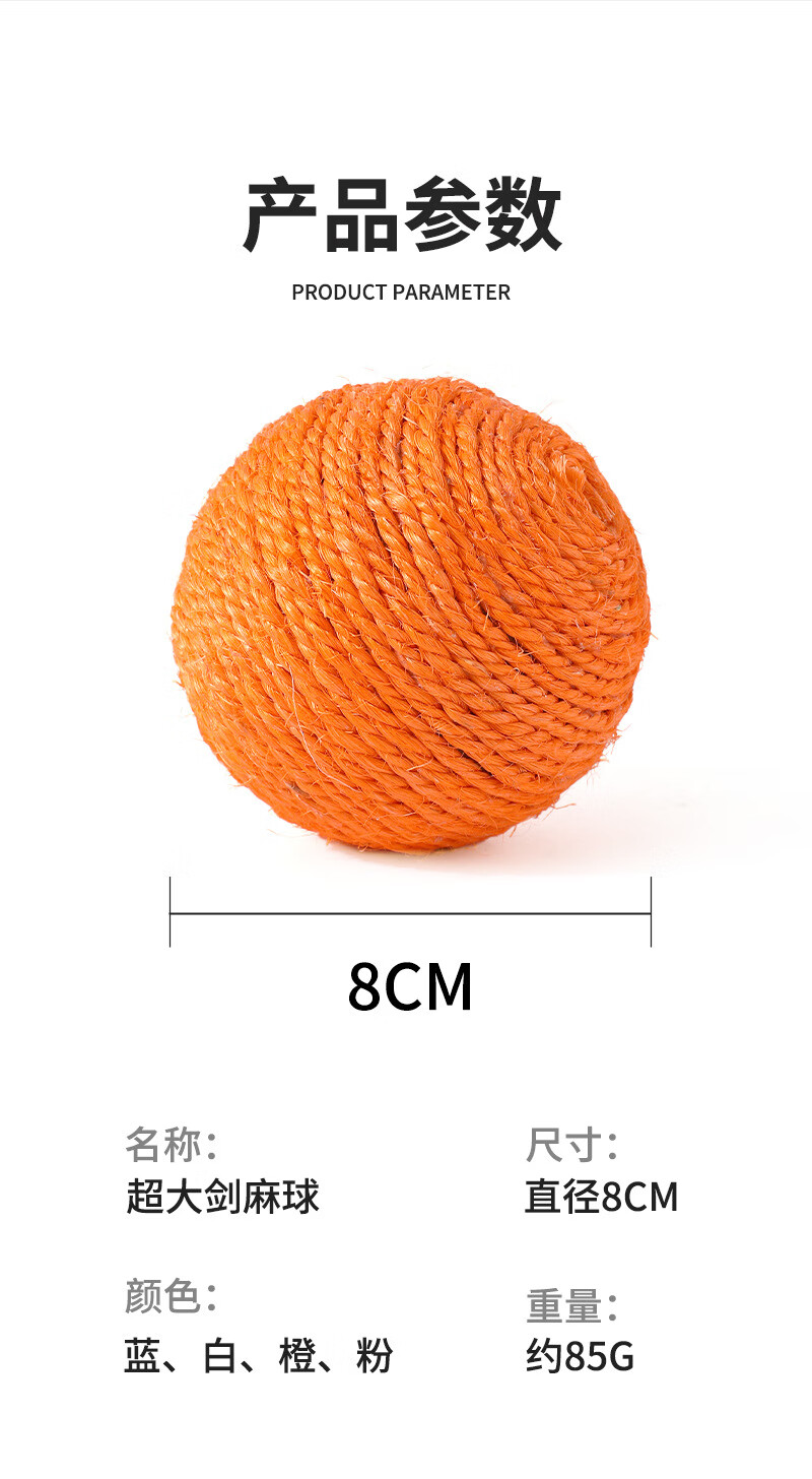 JD Logistics Pet Cat Toy Sisal Ball Extra Large Self-Happiness and Boredom Relief Artifact Funny Cat Stick Teething Supplies Orange 8cm Sisal Ball
