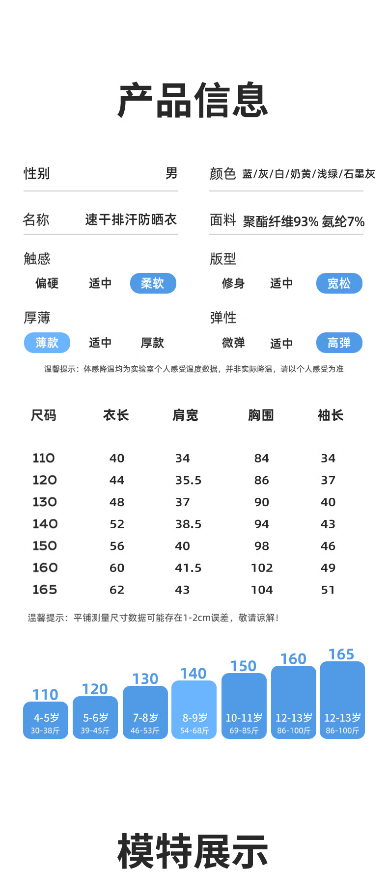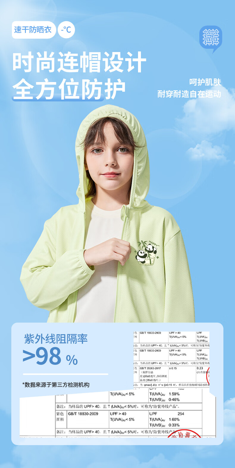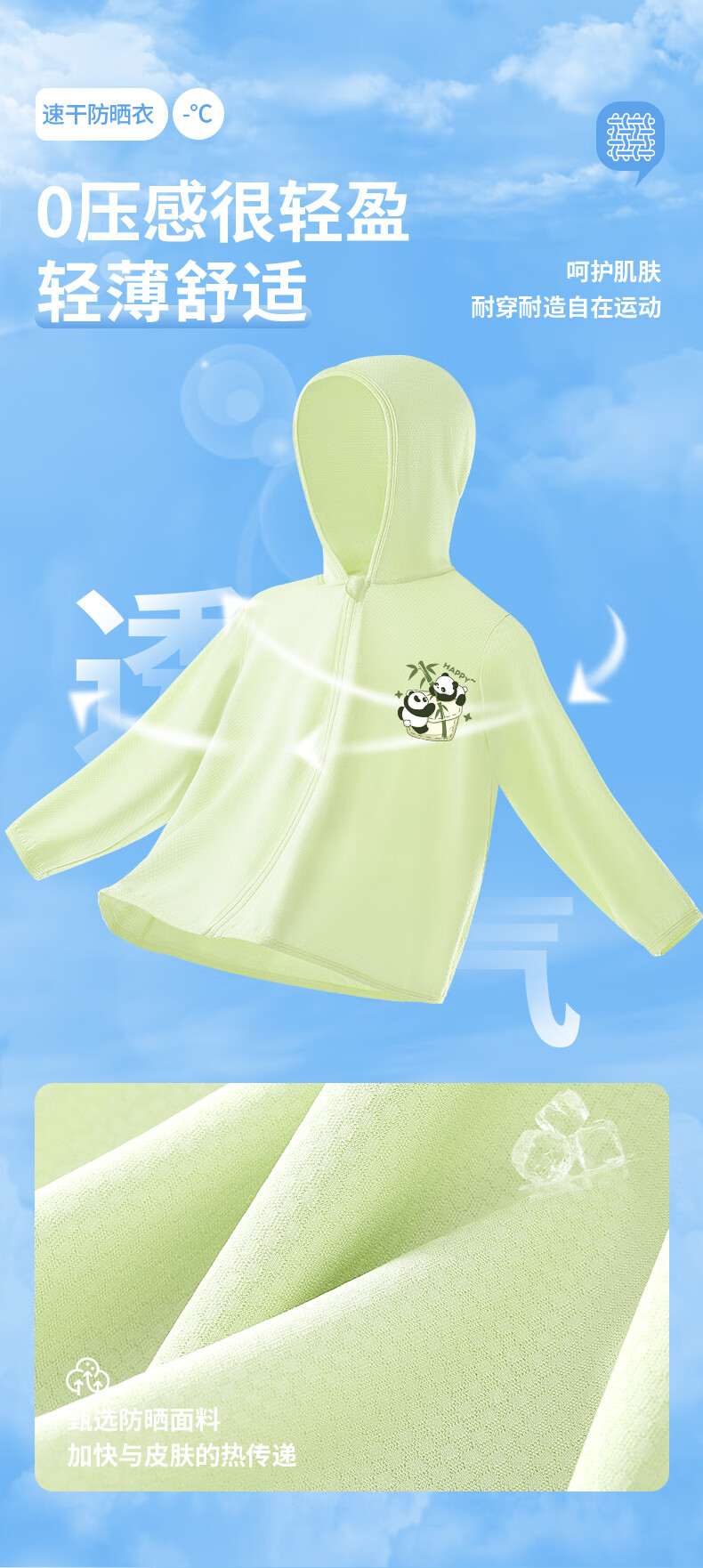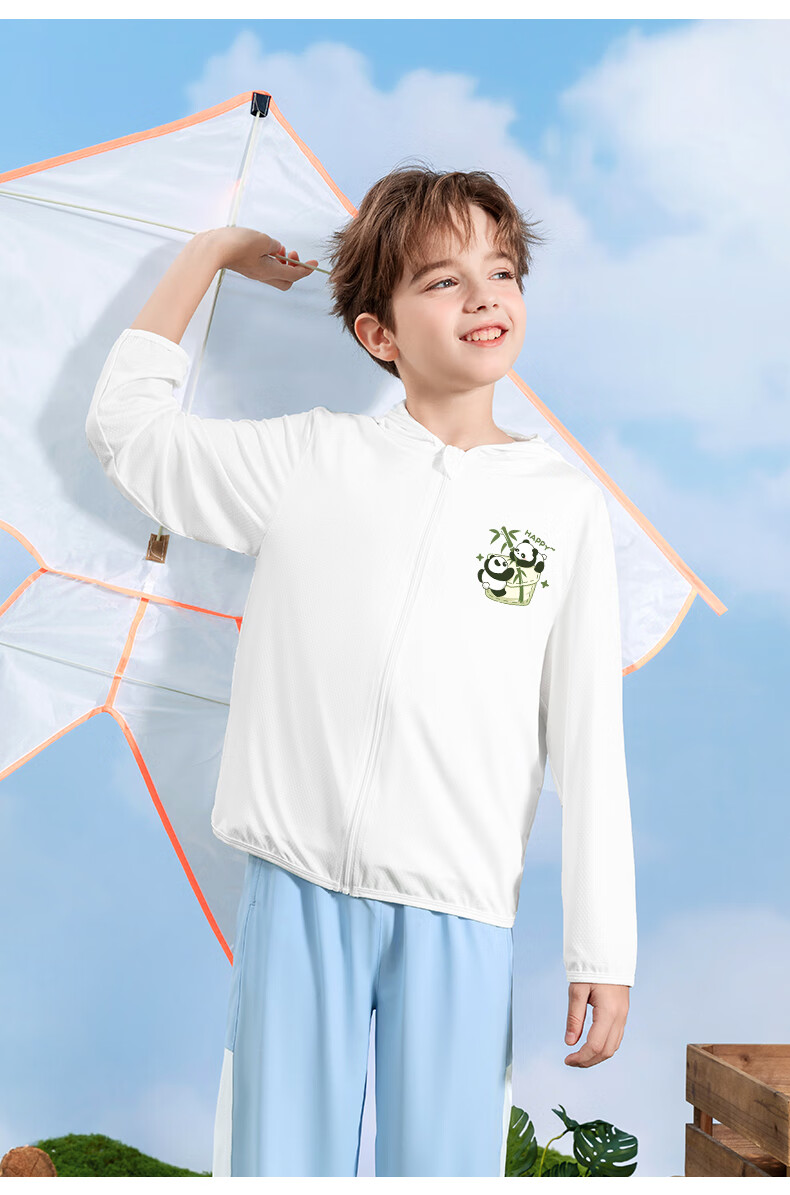 Baleno children's clothing boys' sun protection clothing 2025 new boys' cool quick-drying skin clothing children's anti-UV jacket White BNL Er Panda Bianzhu X 140 Recommended weight 56-68Jin Jin equals 0.5 kg