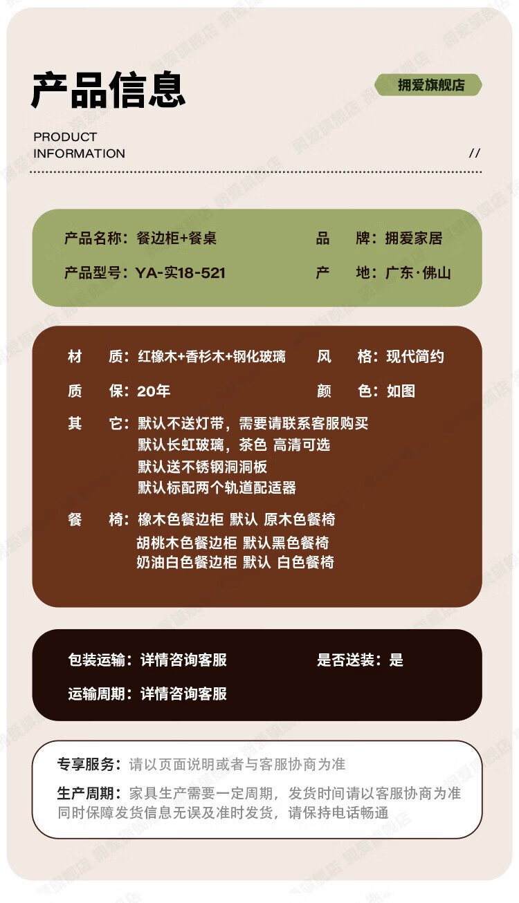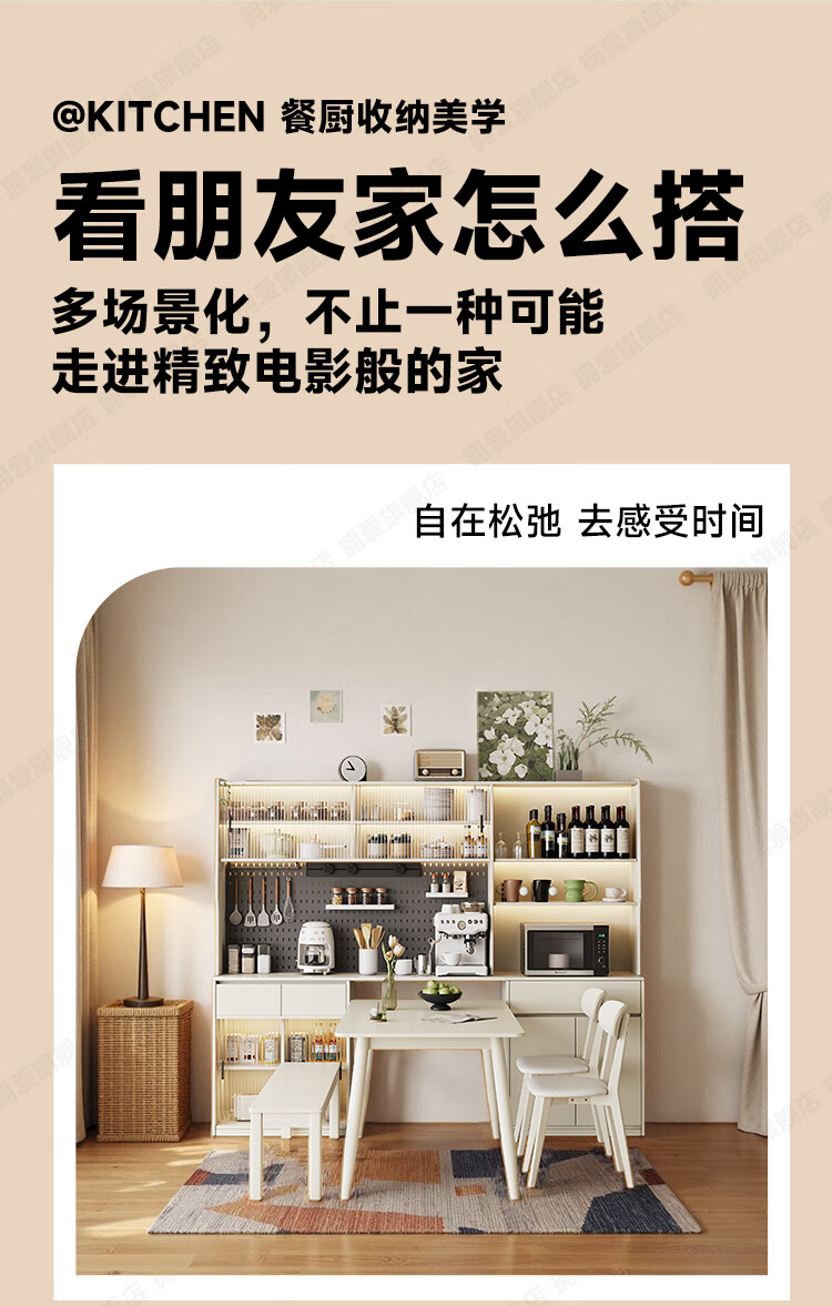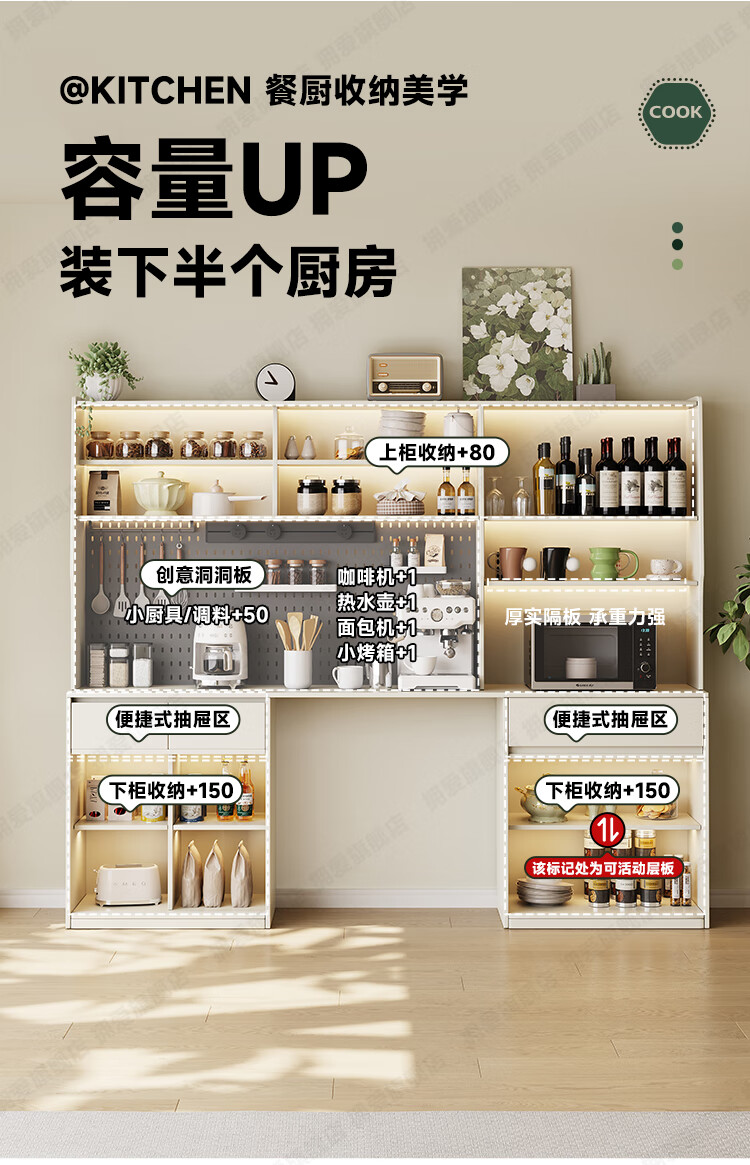 Yongai ENF grade customized oak sideboard against the wall one-piece home cream style 2025 new perforated board storage rack 0.8*1.2 single dining table