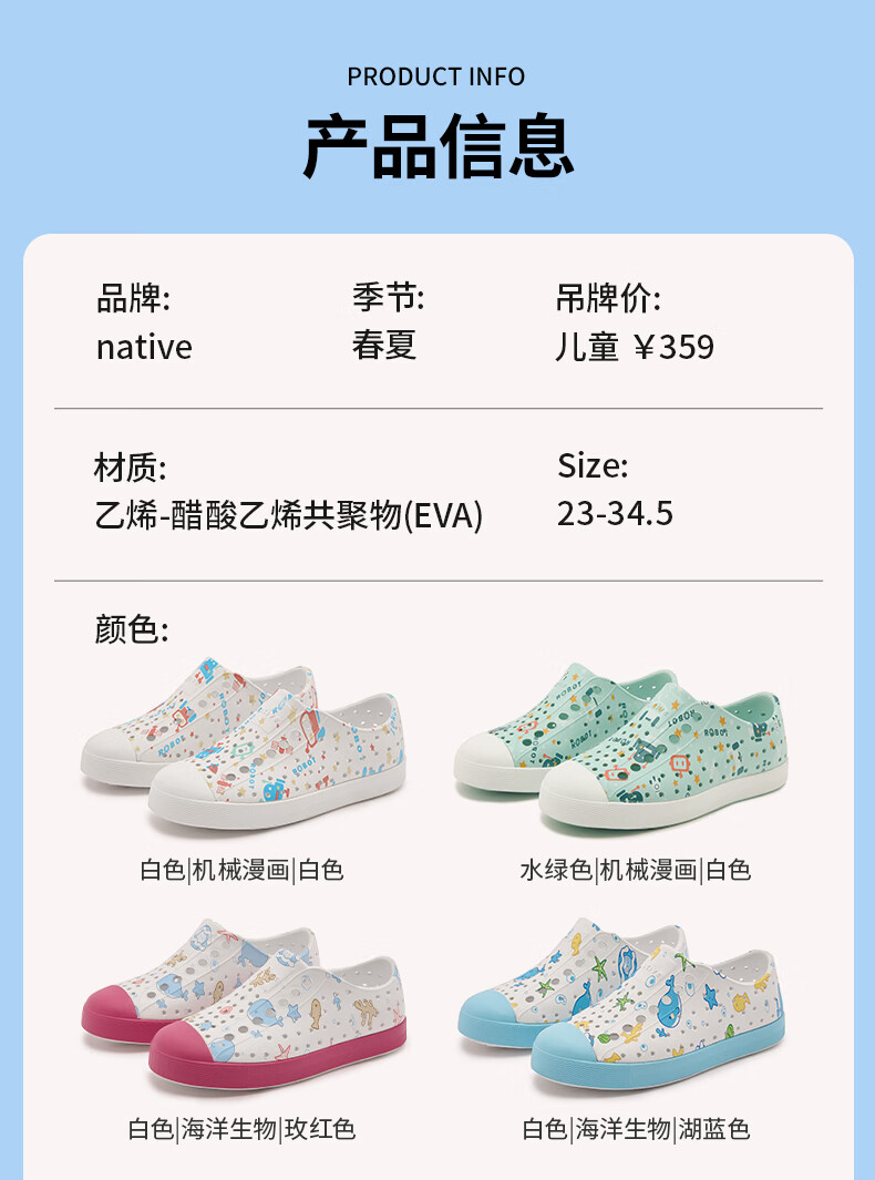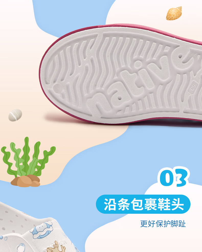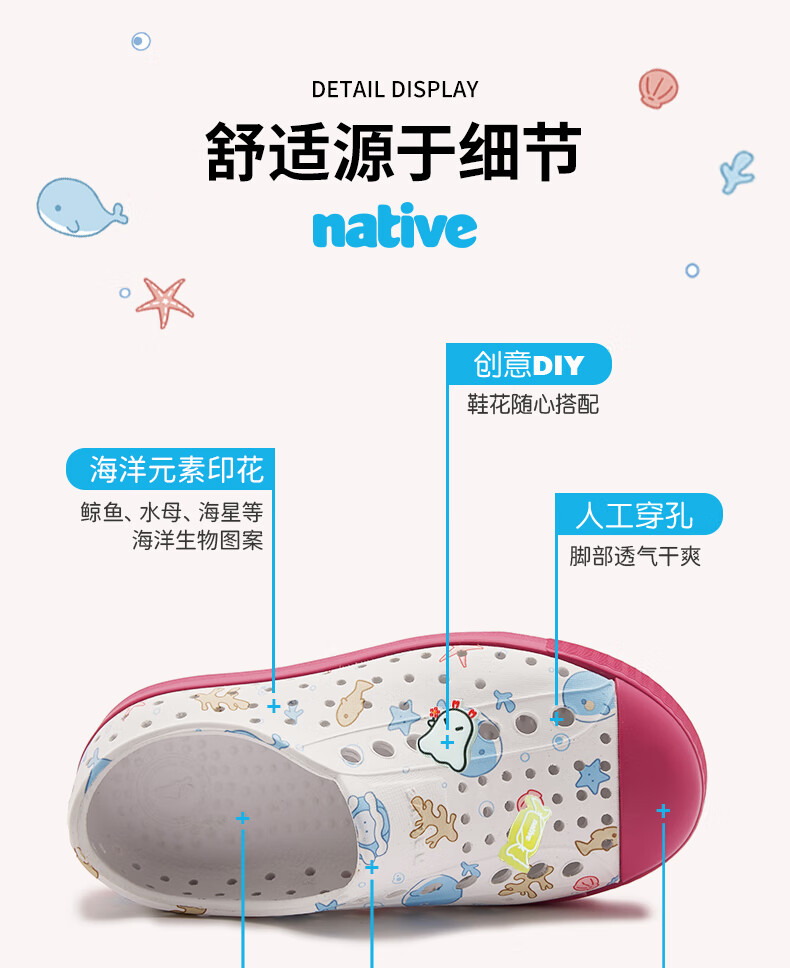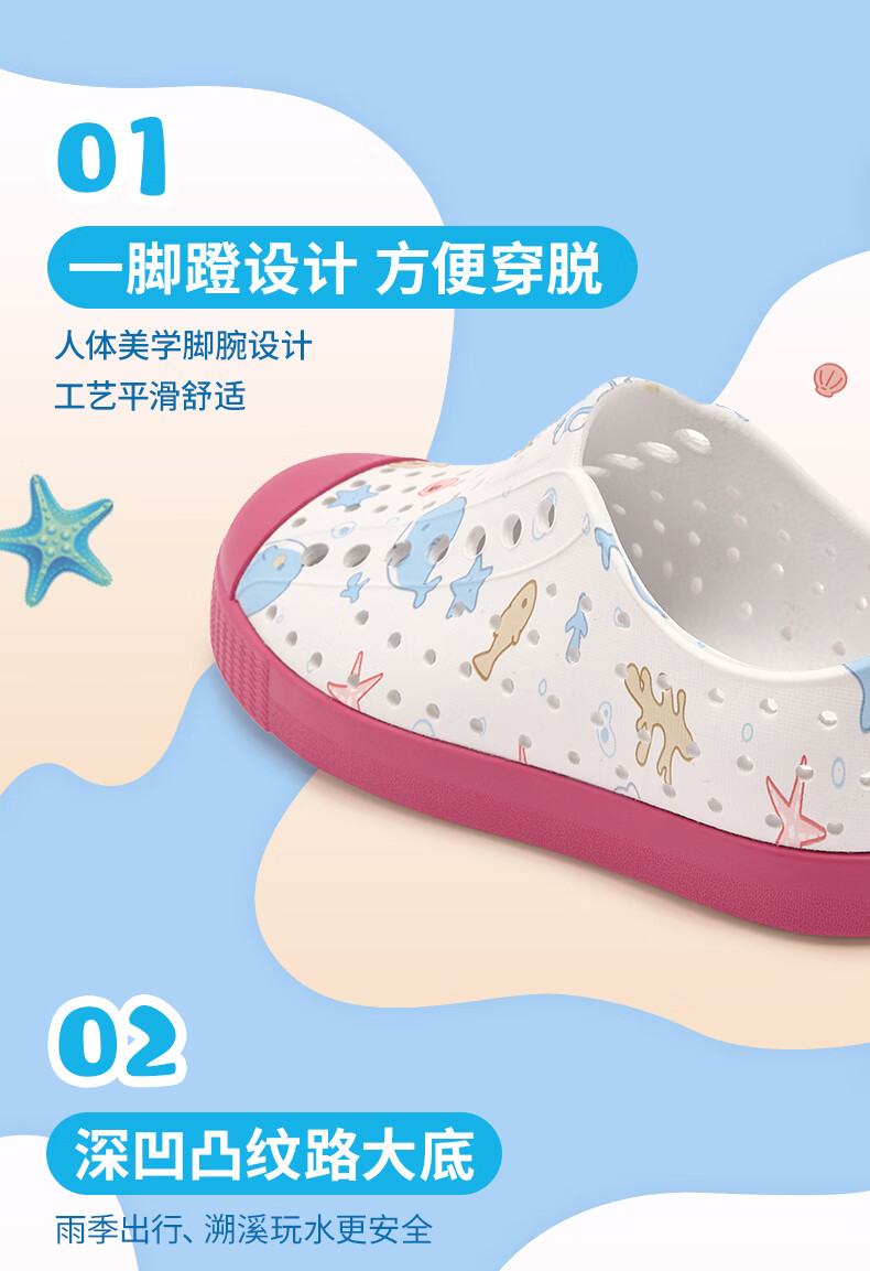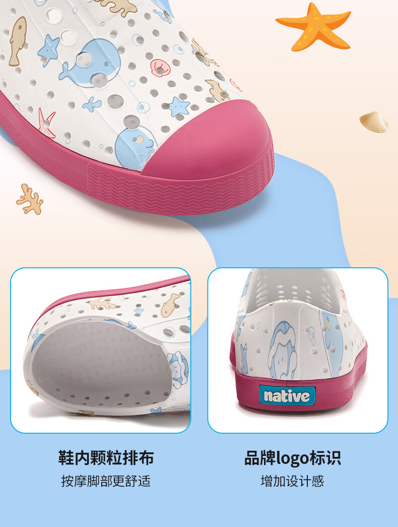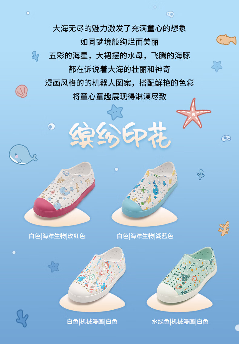 Native children's clogs jefferson such as whales to the sea series boys and girls sandals beach shoes river shoes slippers lotus pink | underwater world | white 29 (children's shoes 190mm)
