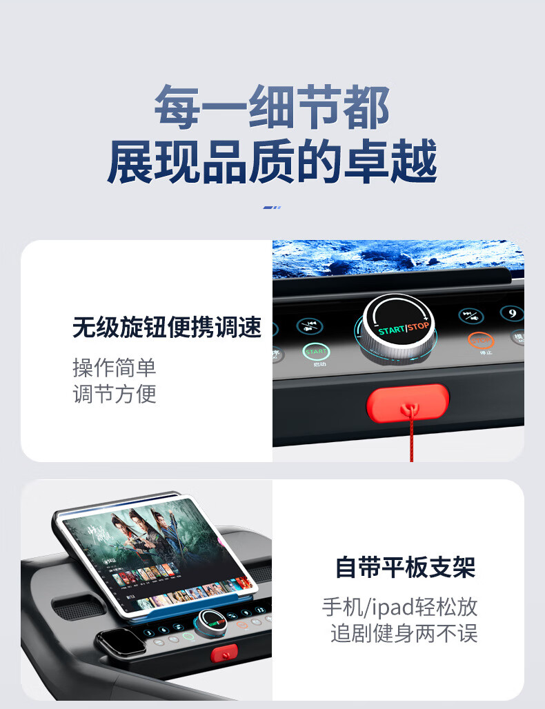 Xiaomi Stone Treadmill Home Model Small Indoor Foldable Multi-Function Super Silent Climbing Machine for Gym Use Luxury Model/One-touch Speed Change/Built-in Bluetooth Speaker/Multi-function