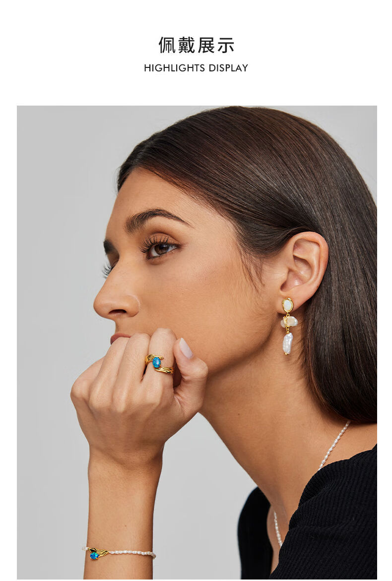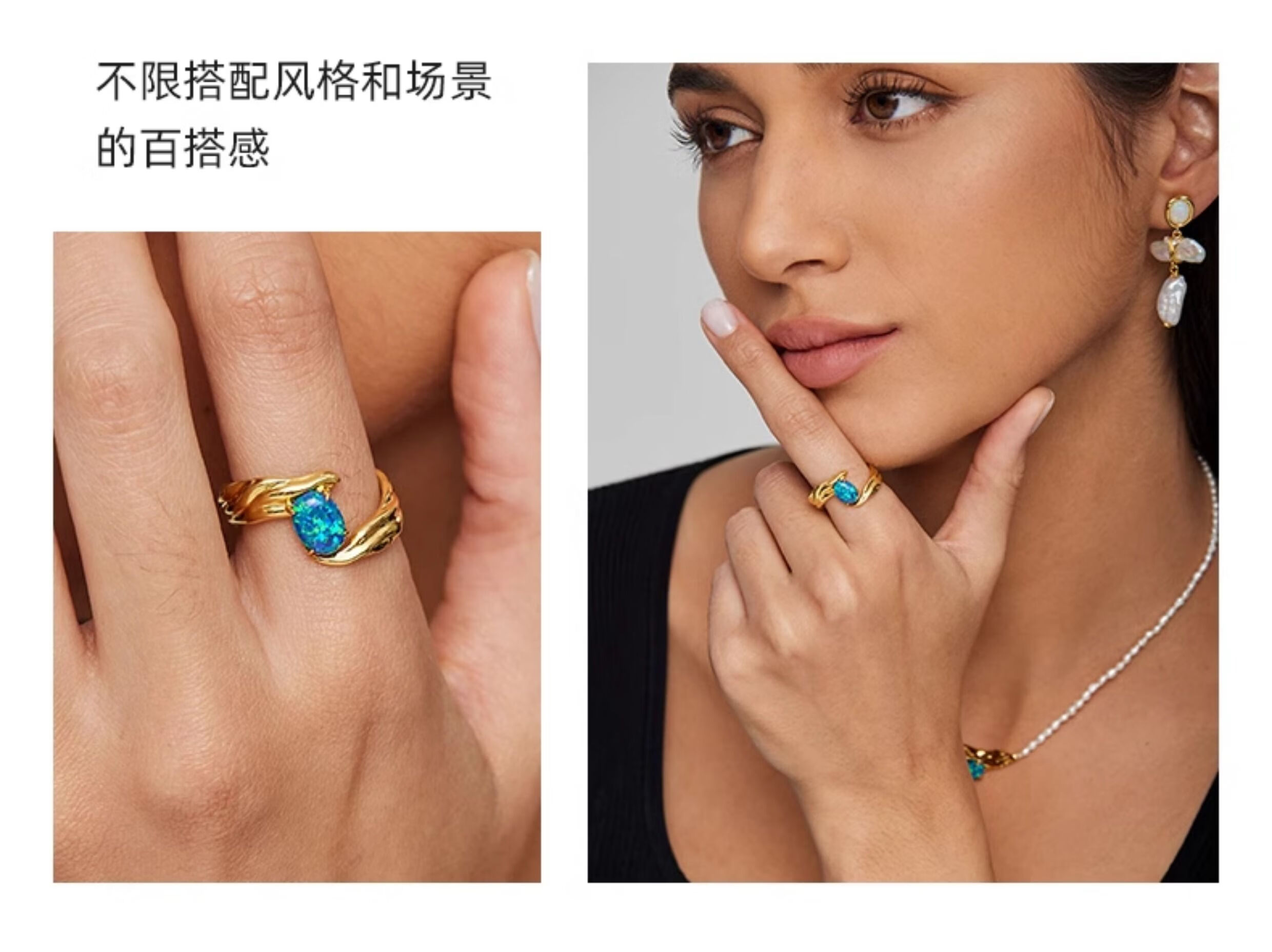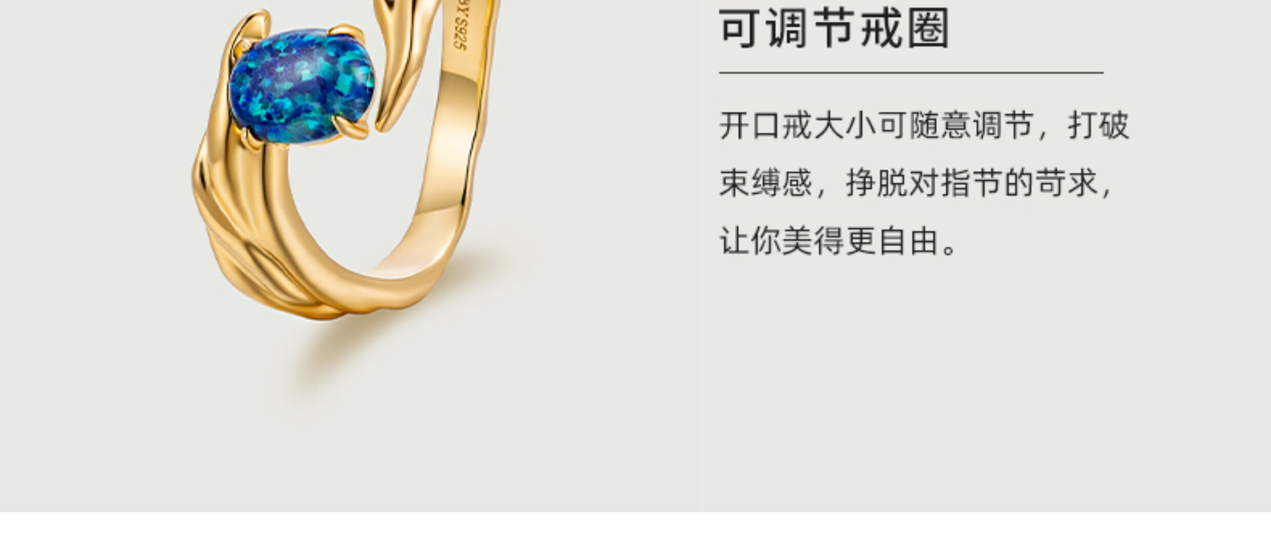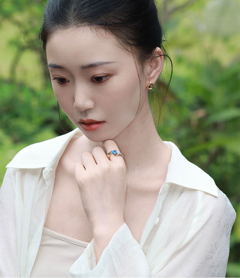DRJEFUN Authentic Natural Design Galaxy Opal Ring Women's Light Luxury Niche Design Adjustable Open Ring Galaxy Turquoise Ring White Gold Mido 6.5 1 Carat Open Adjustable