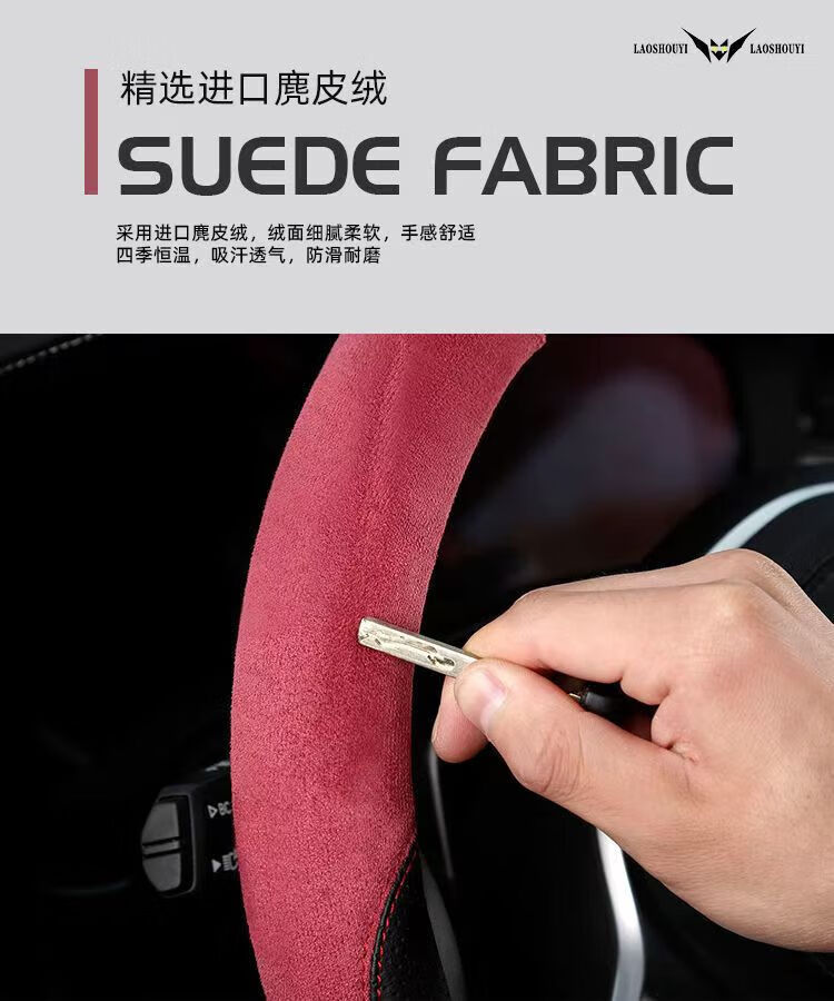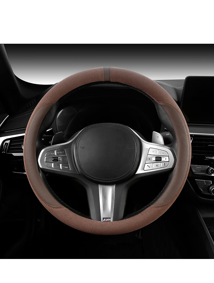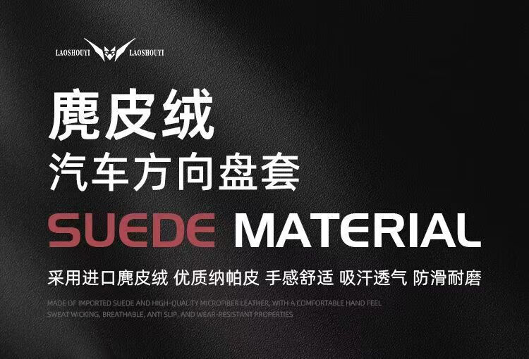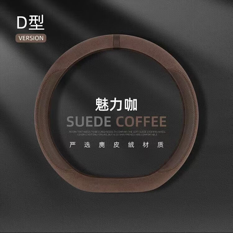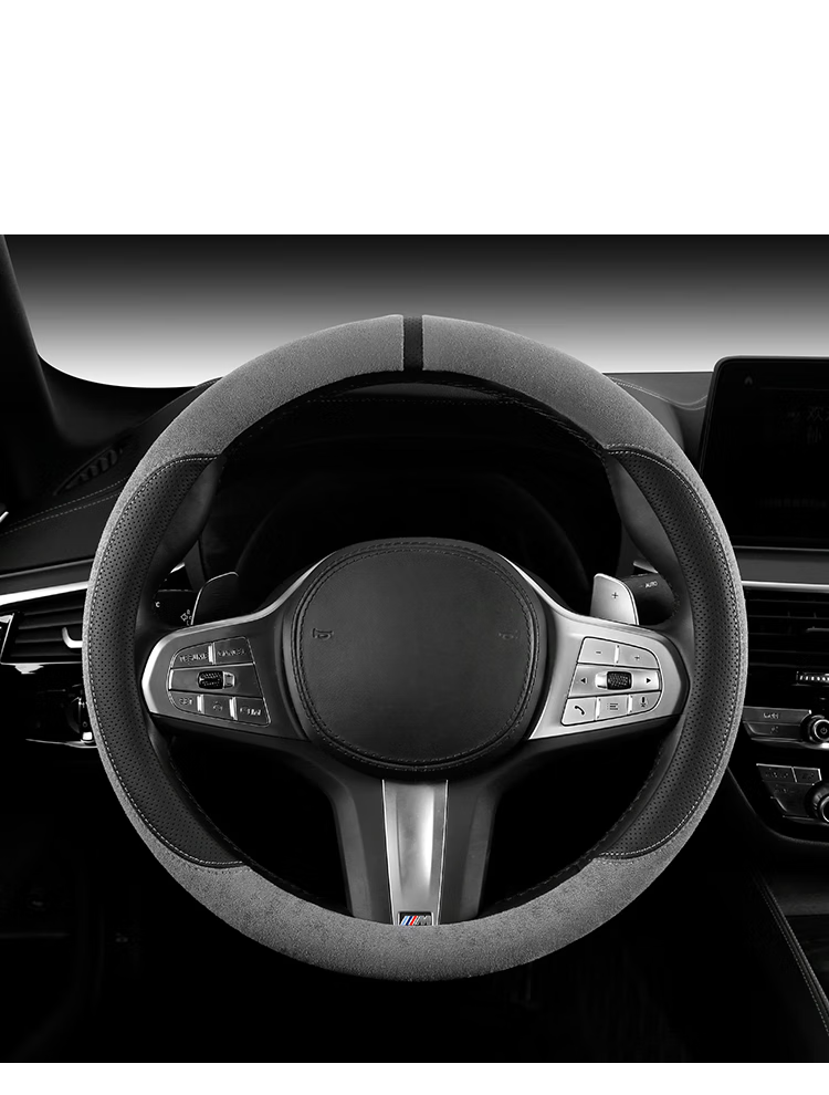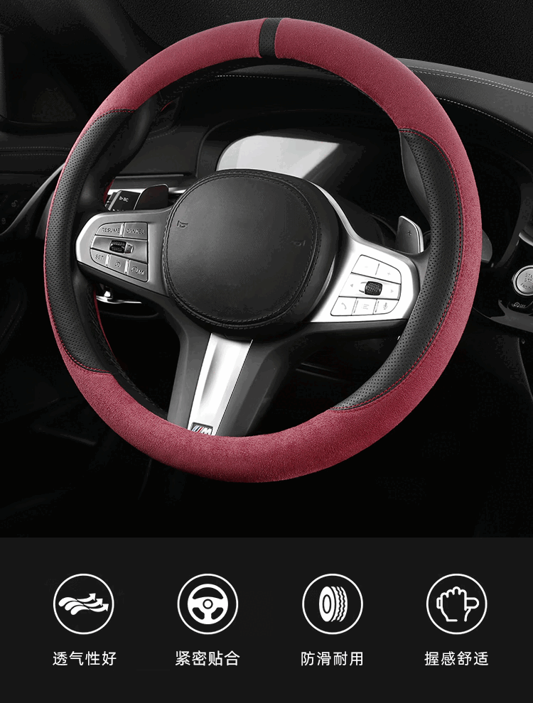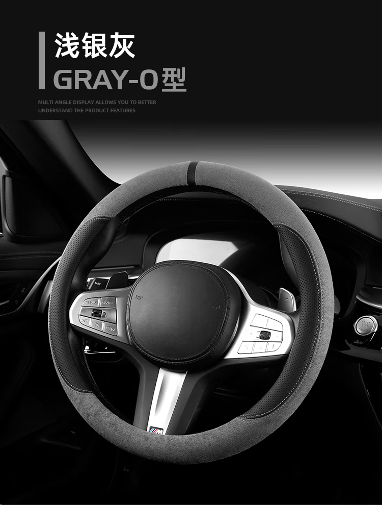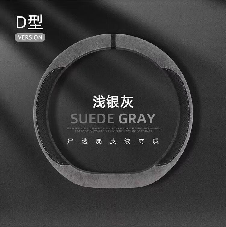 New suede steering wheel protective cover, comfortable and suitable for all seasons, simple and atmospheric, non-slip, sweat-absorbent, wear-resistant and breathable, round universal bat logo - suede silver gray