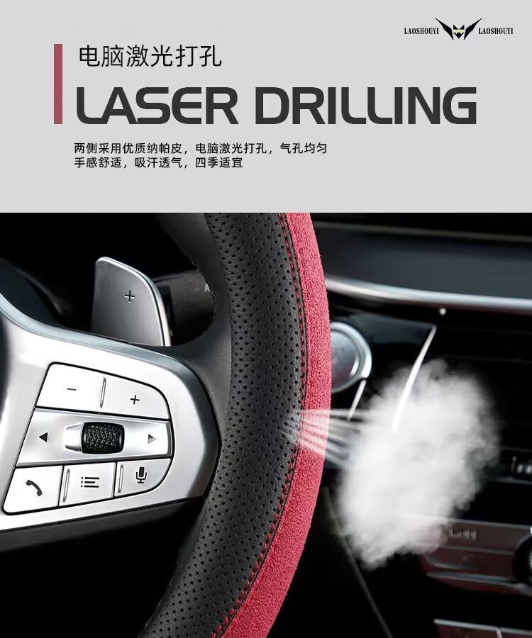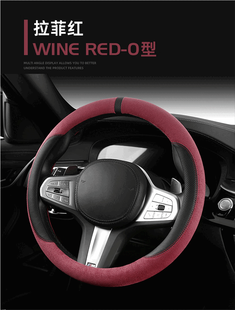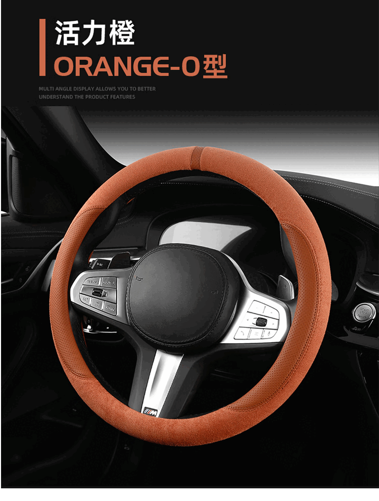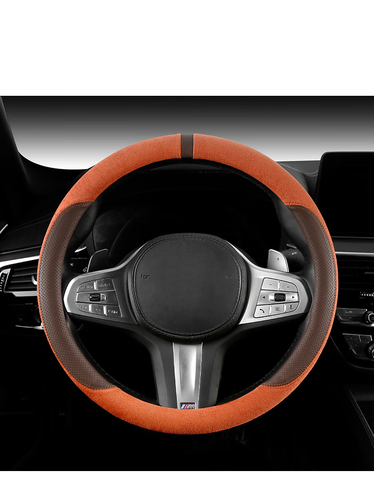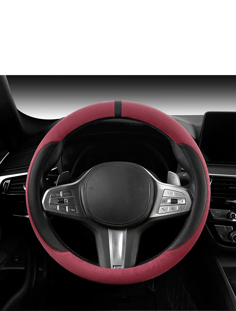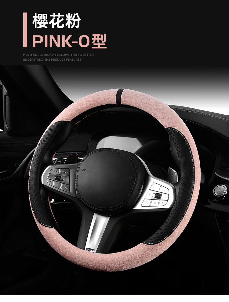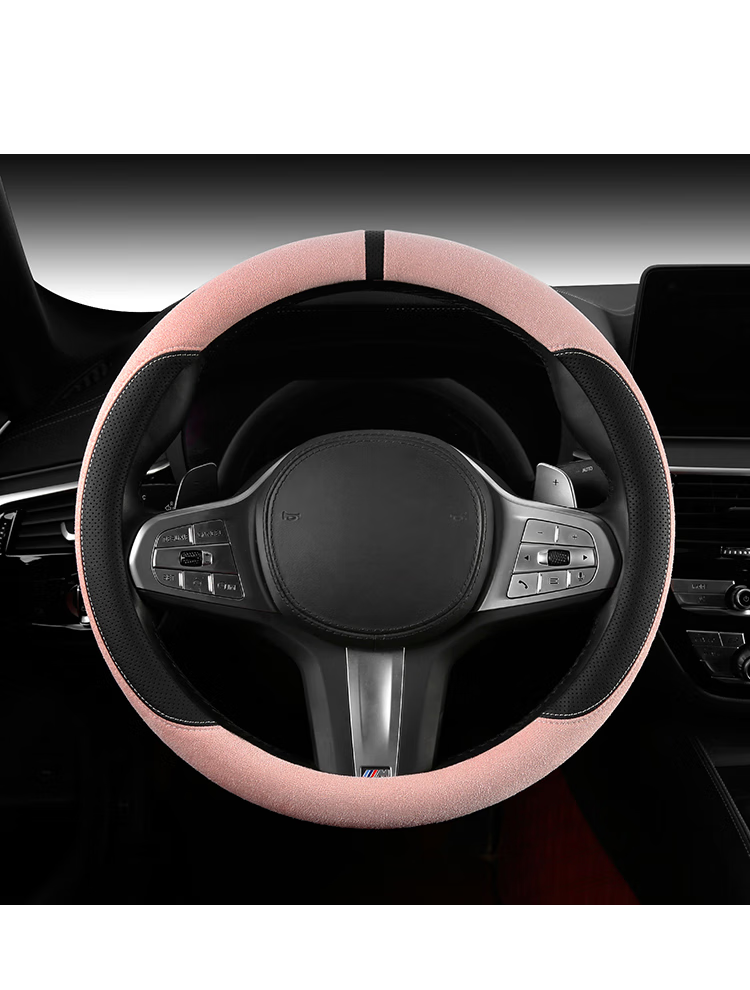 New suede steering wheel protective cover, comfortable and suitable for all seasons, simple and atmospheric, non-slip, sweat-absorbent, wear-resistant and breathable, round universal bat logo - suede silver gray