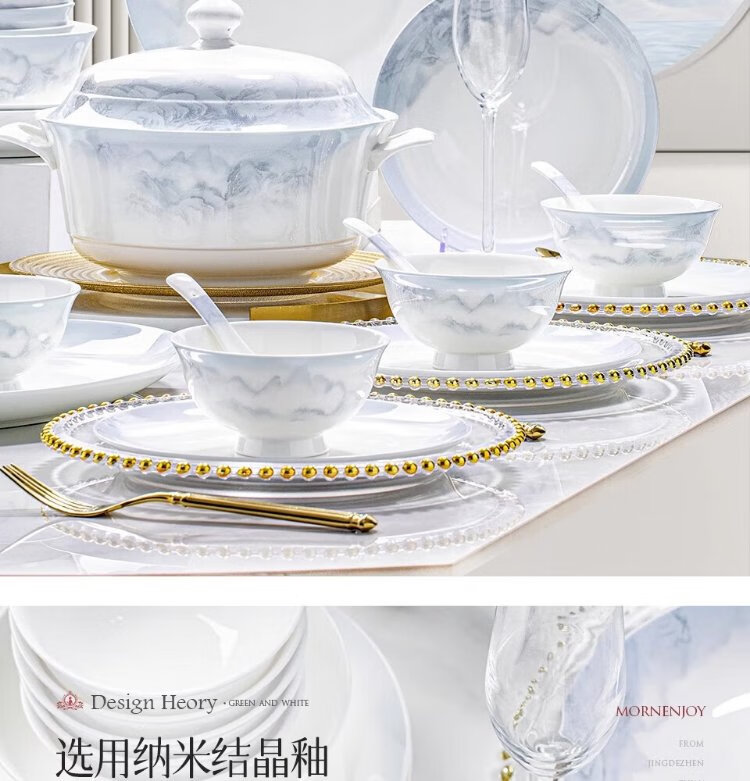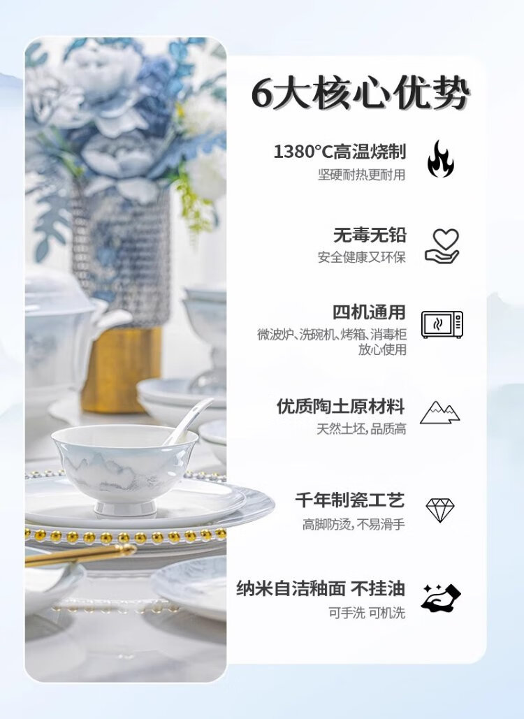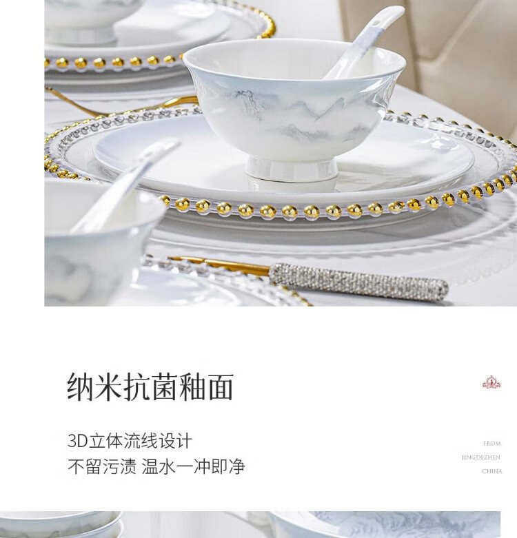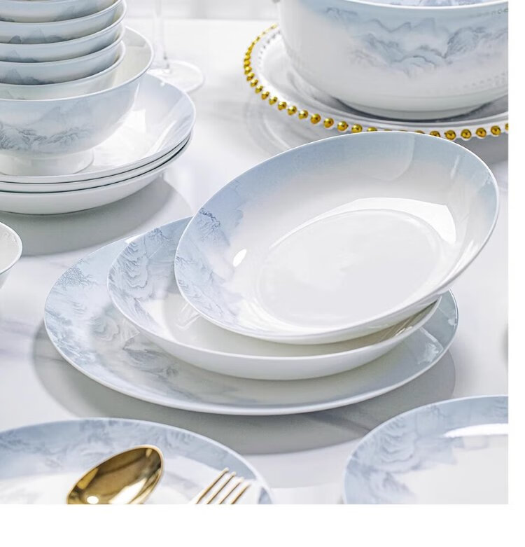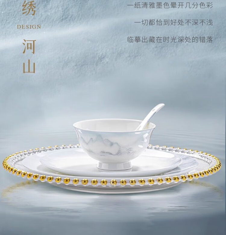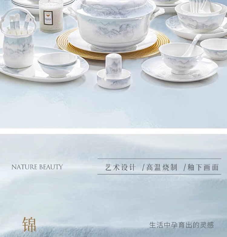 Yichen Jingdezhen 2025 new high-looking landscape-style tableware set for household Chinese bowls for household tableware housewarming gift recommended by store manager upgraded with rich pot 66-piece set