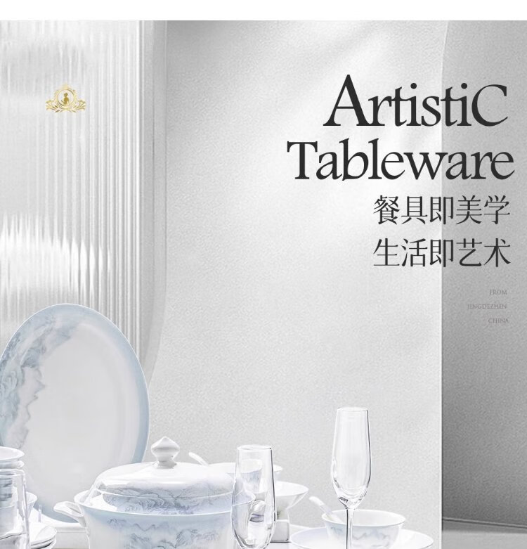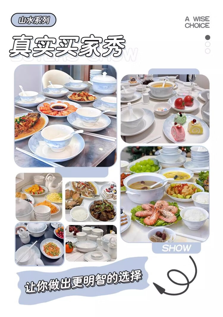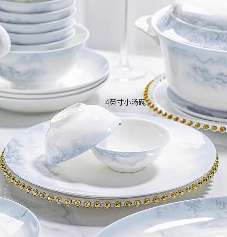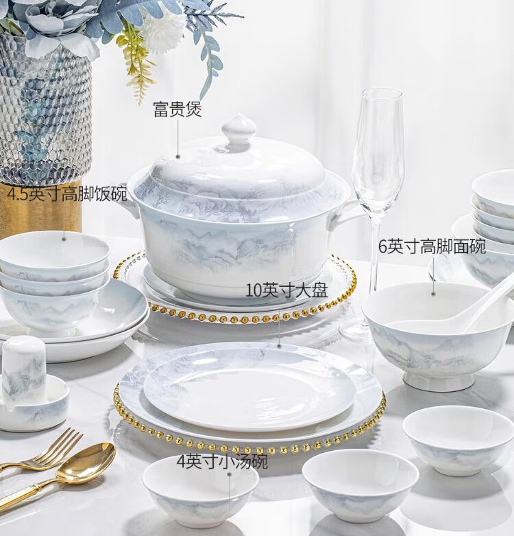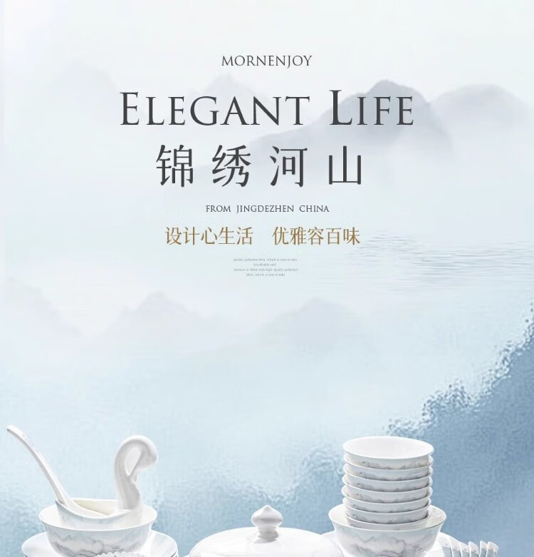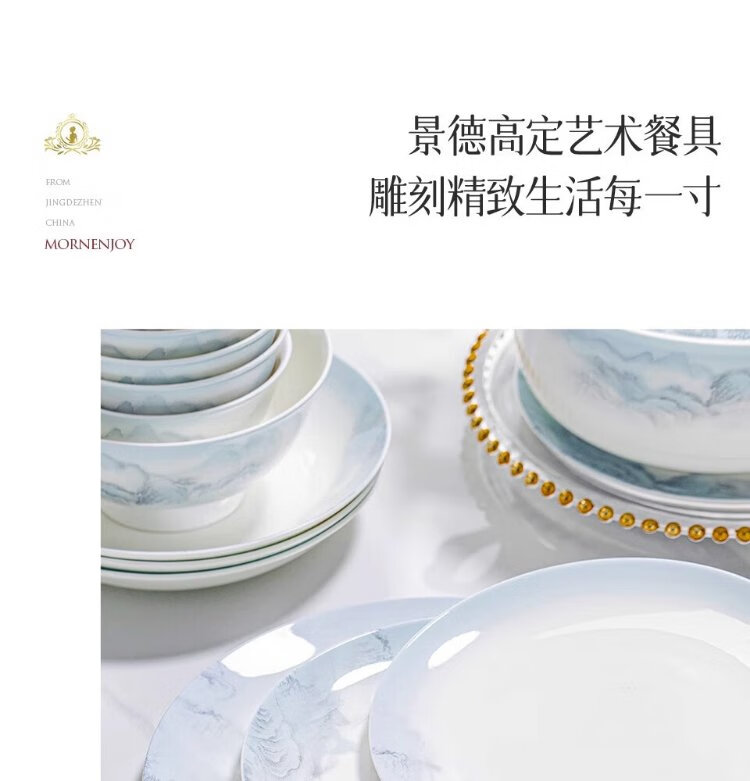 Yichen Jingdezhen 2025 new high-looking landscape-style tableware set for household Chinese bowls for household tableware housewarming gift recommended by store manager upgraded with rich pot 66-piece set