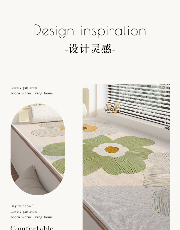 Di Zhuoyi Bay Window Cushion Window Sill Cushion 2025 New Modern Simple Universal Four Seasons Master Bedroom Thickened Balcony Cushion Can be Cutted Xiangyanghuakai (Upgraded Thickened Waterproof Loop Velvet) Customized Contact Customer Service/Single shot will not be shipped