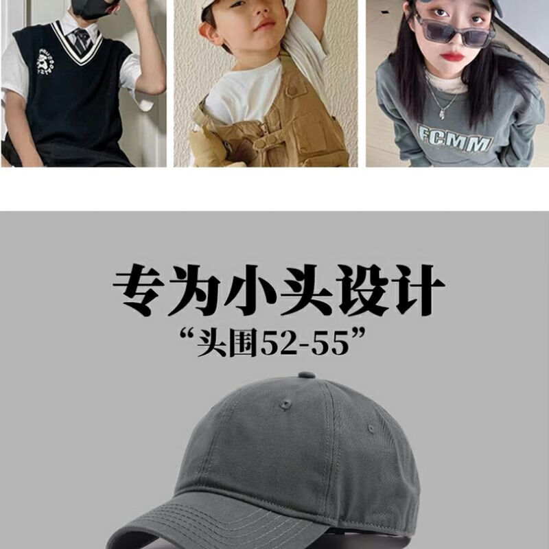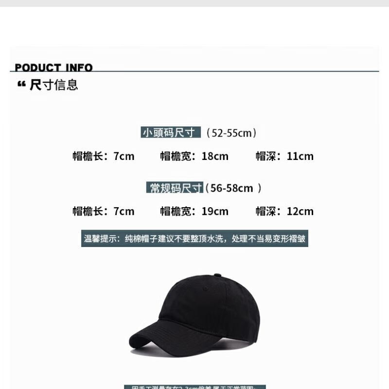 Fengxiaoxiao small head circumference hat 50-54 men's winter women's summer sun hat casual small size soft top peaked cap shallow top small black one size small head circumference 52-55 cm