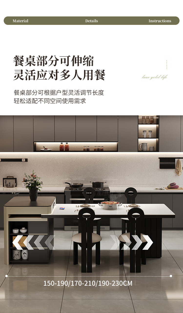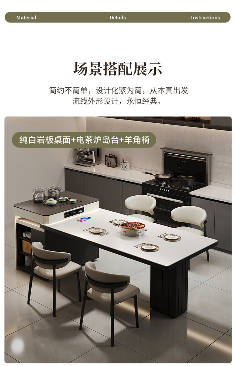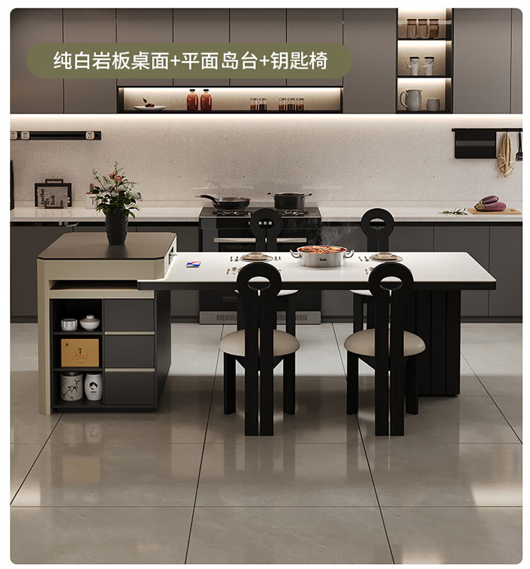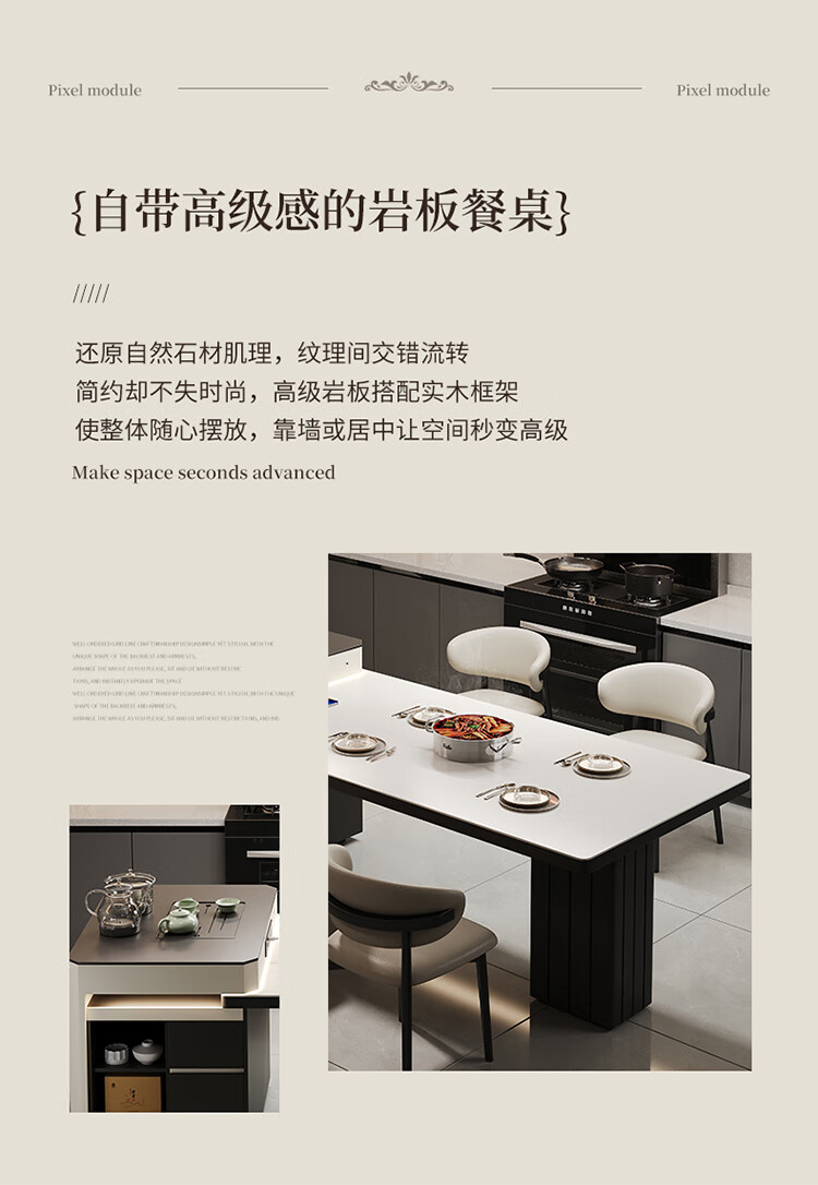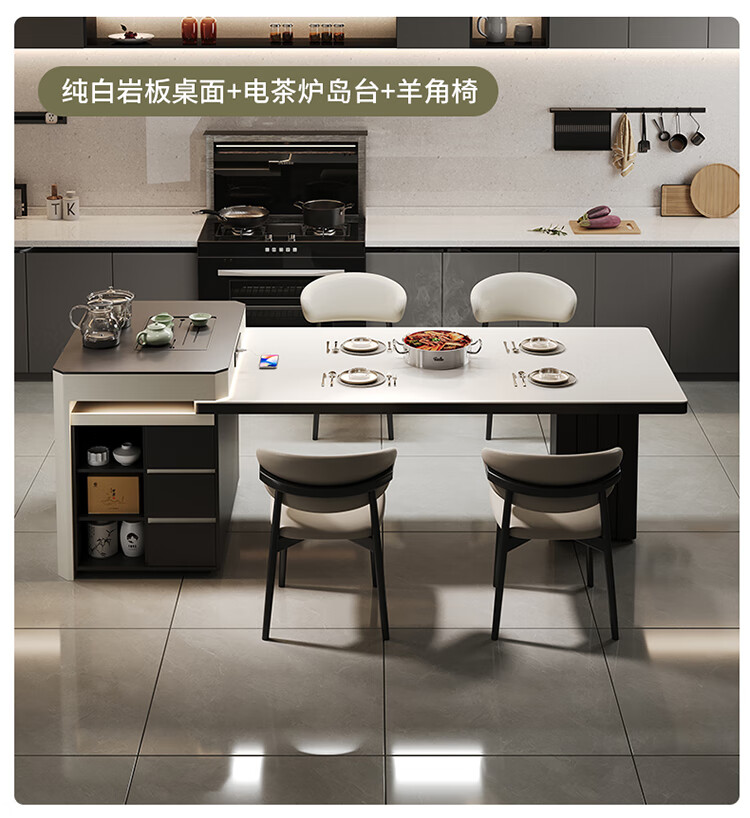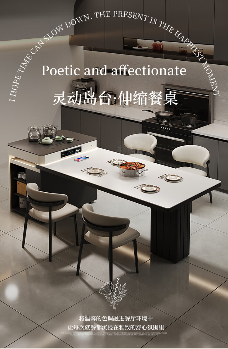 Xinyi modern simple light luxury style slate island dining table household one-piece retractable multi-functional island solid wood dining table retractable island (including cabinet) + horn chair*6 1.6m (orbital socket) double hole tea stove