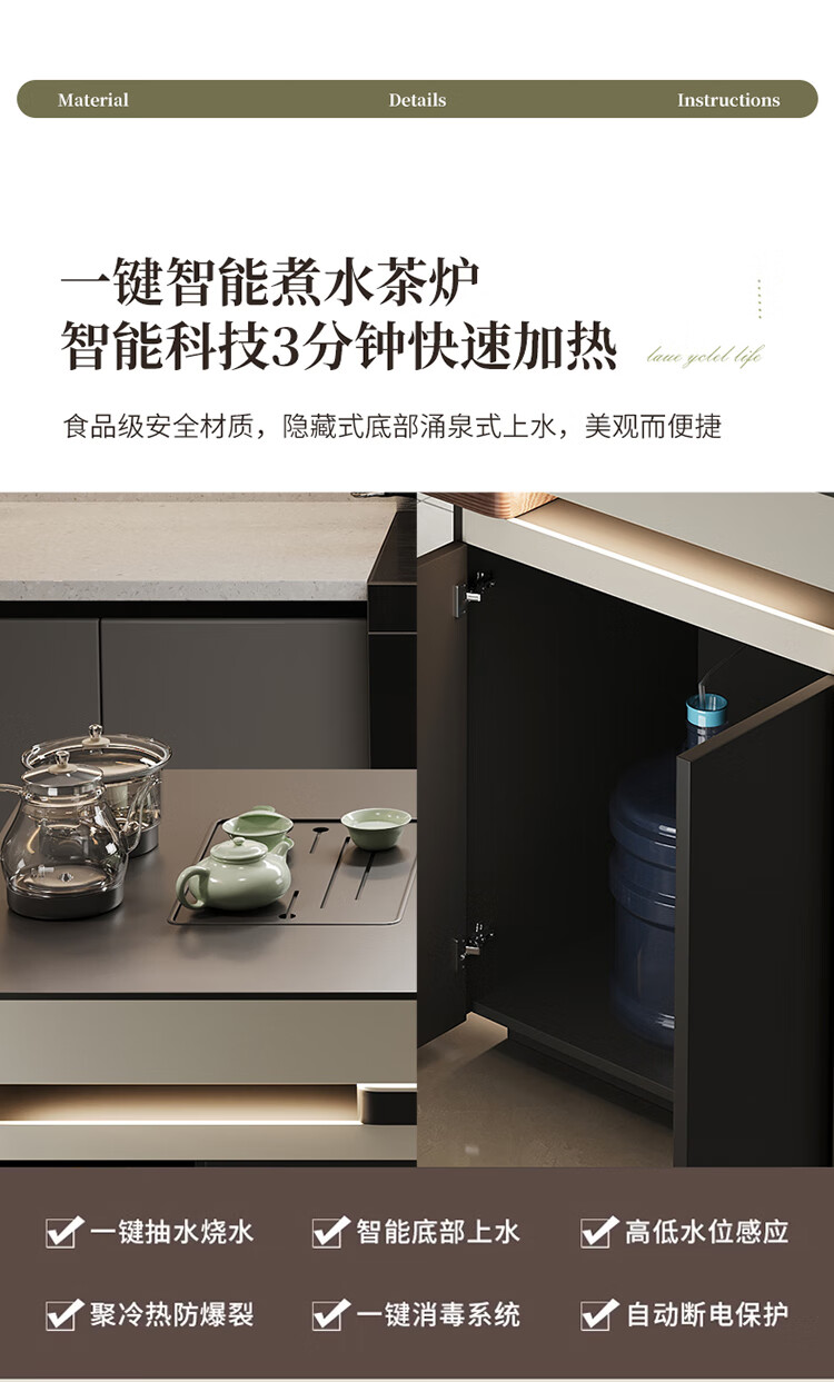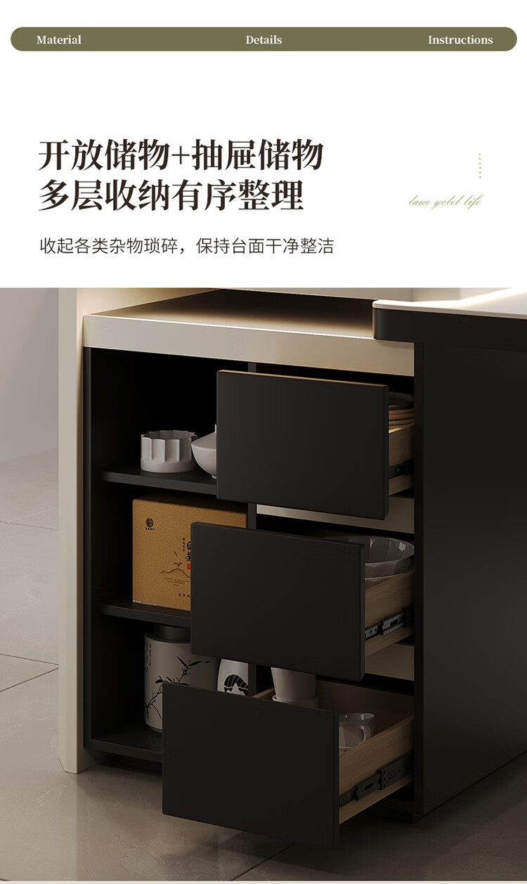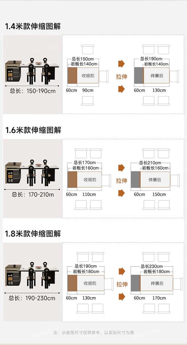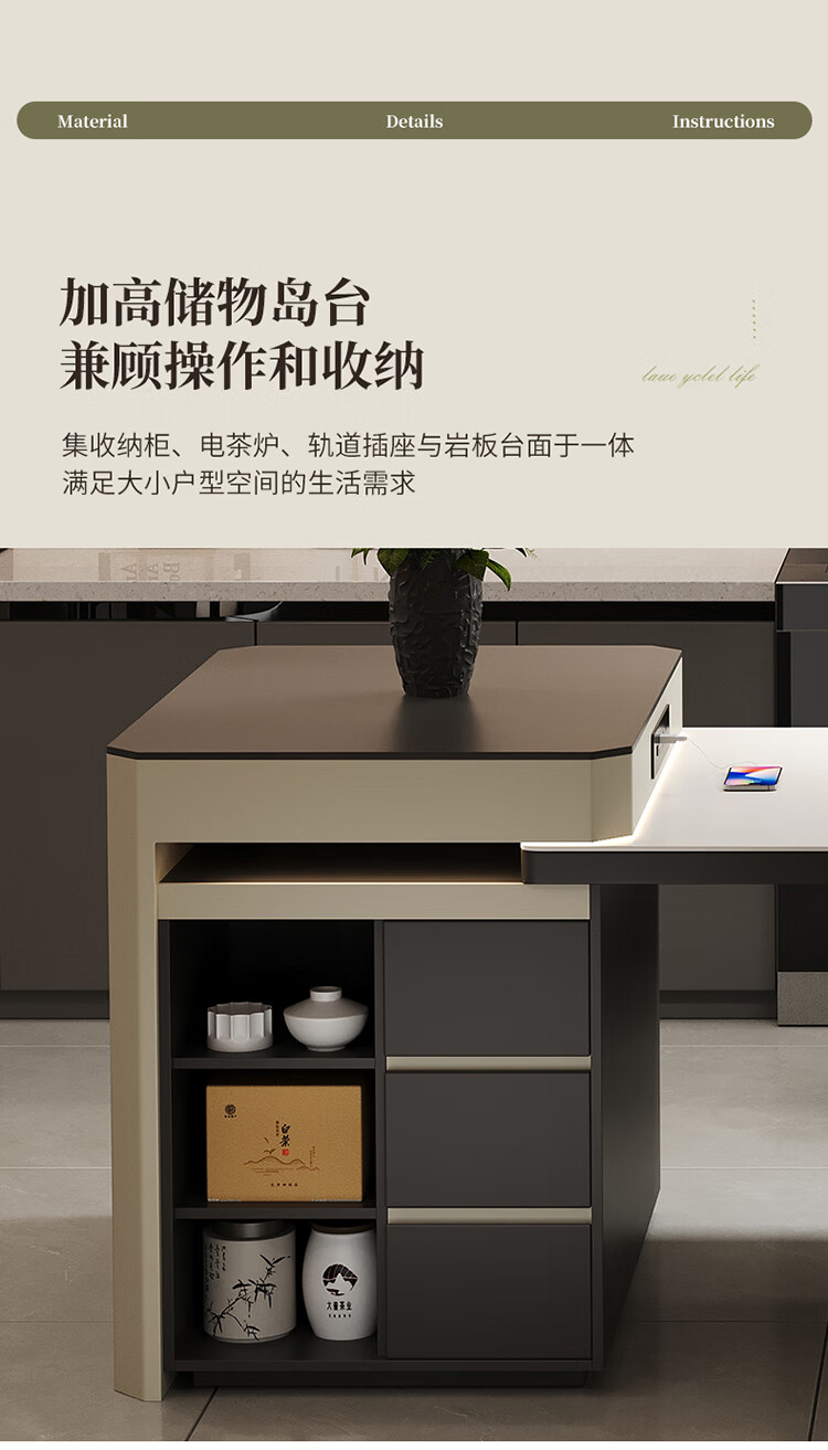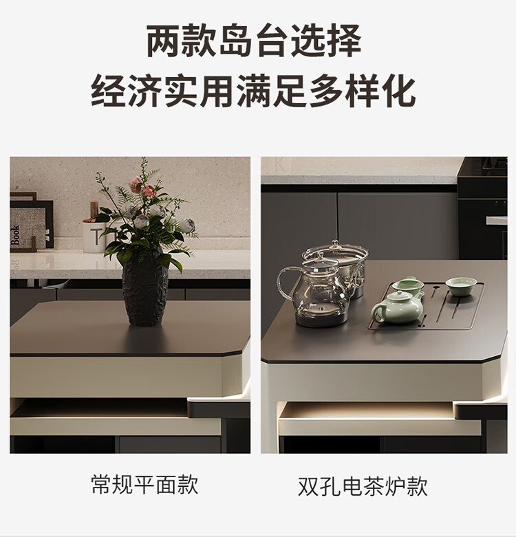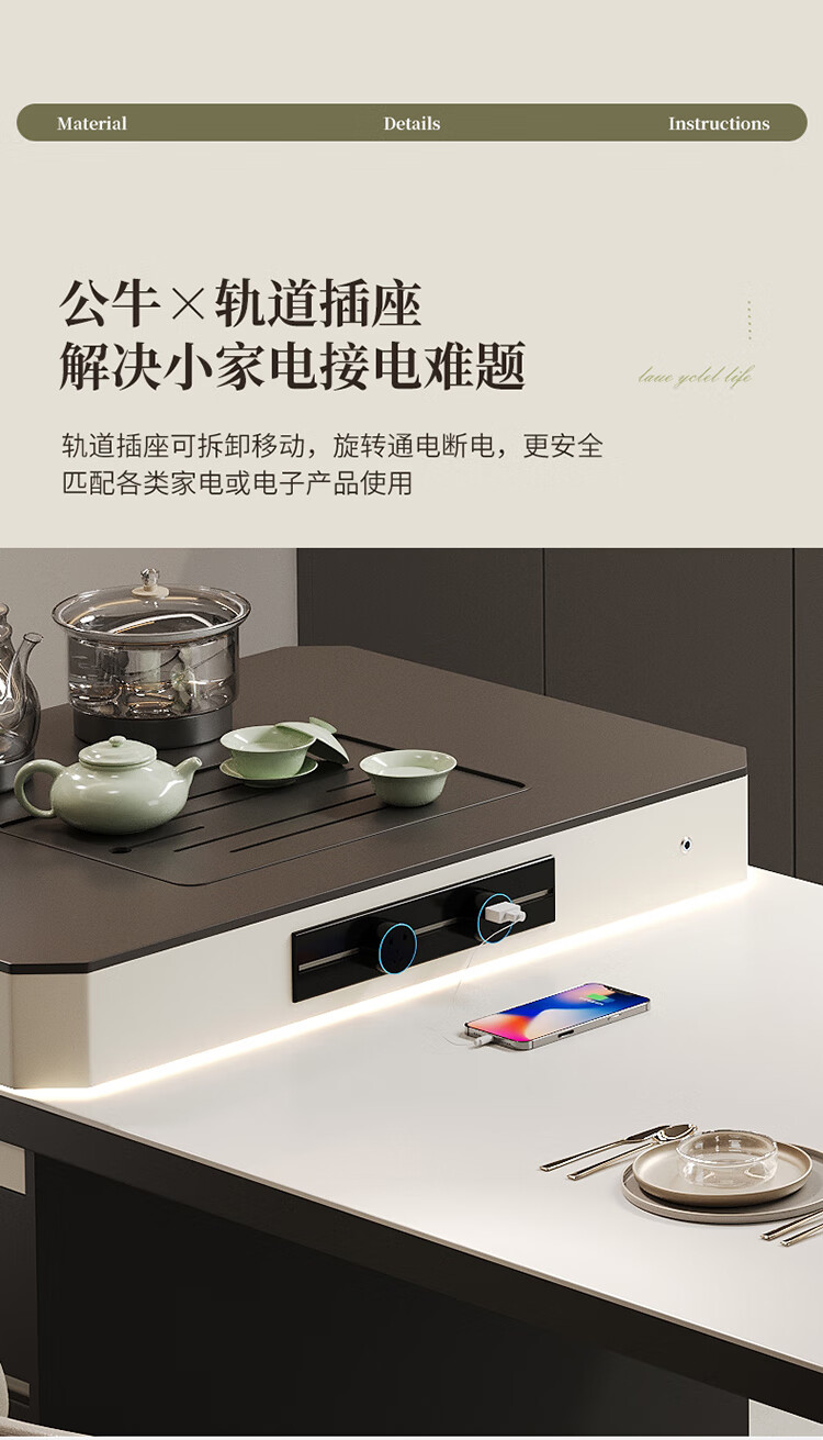Xinyi modern simple light luxury style slate island dining table household one-piece retractable multi-functional island solid wood dining table retractable island (including cabinet) + horn chair*6 1.6m (orbital socket) double hole tea stove