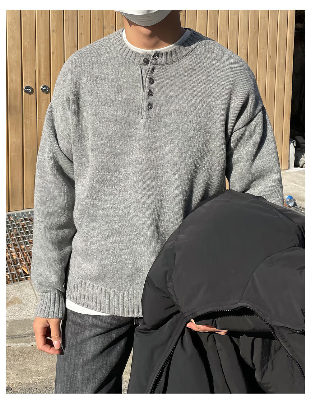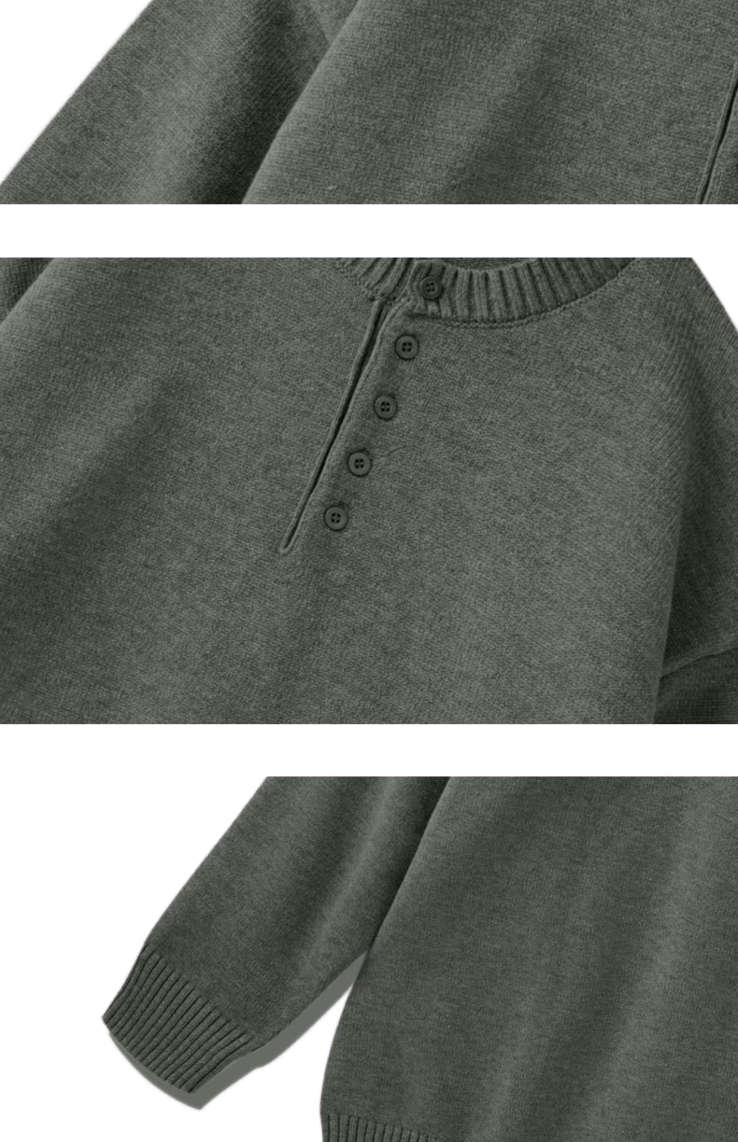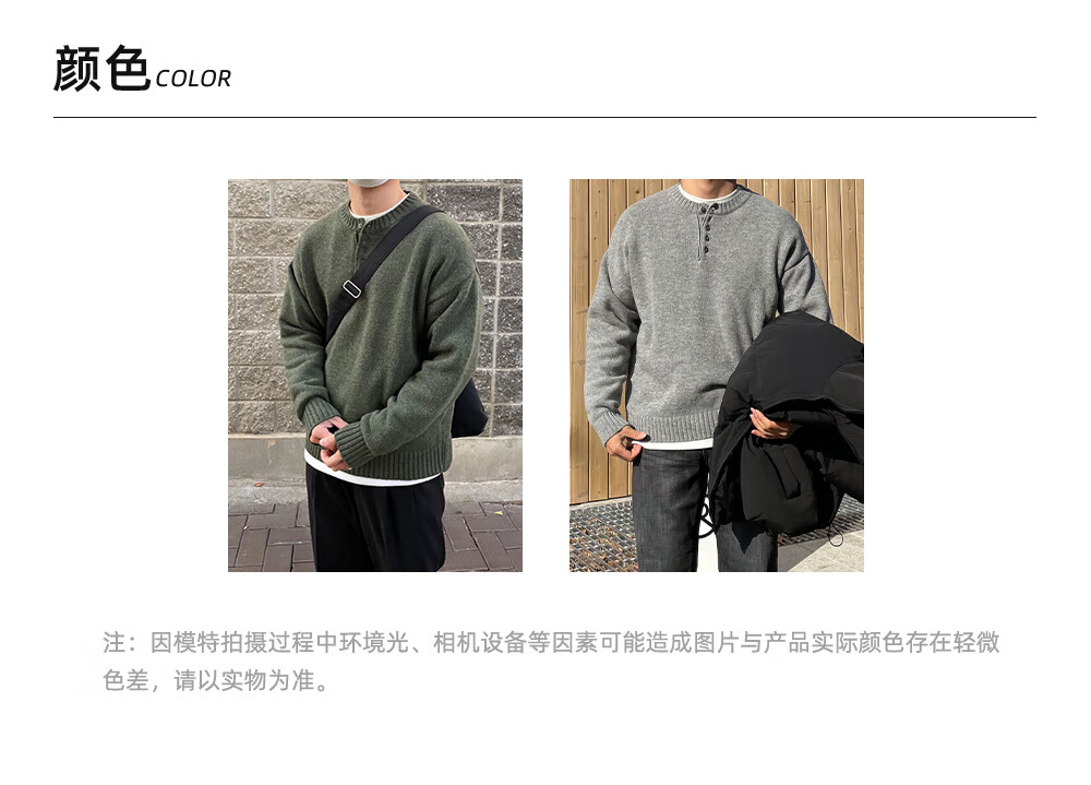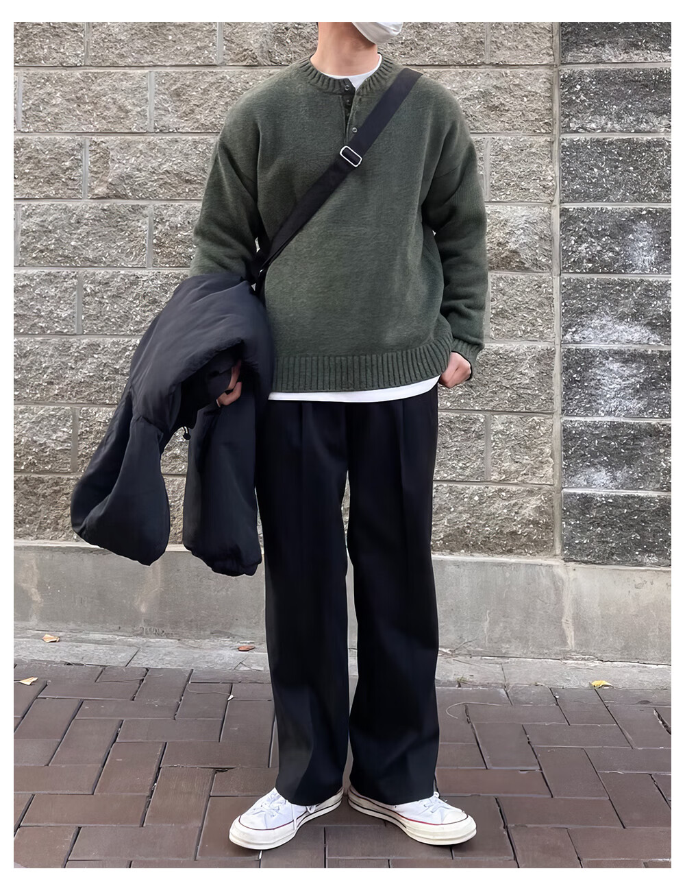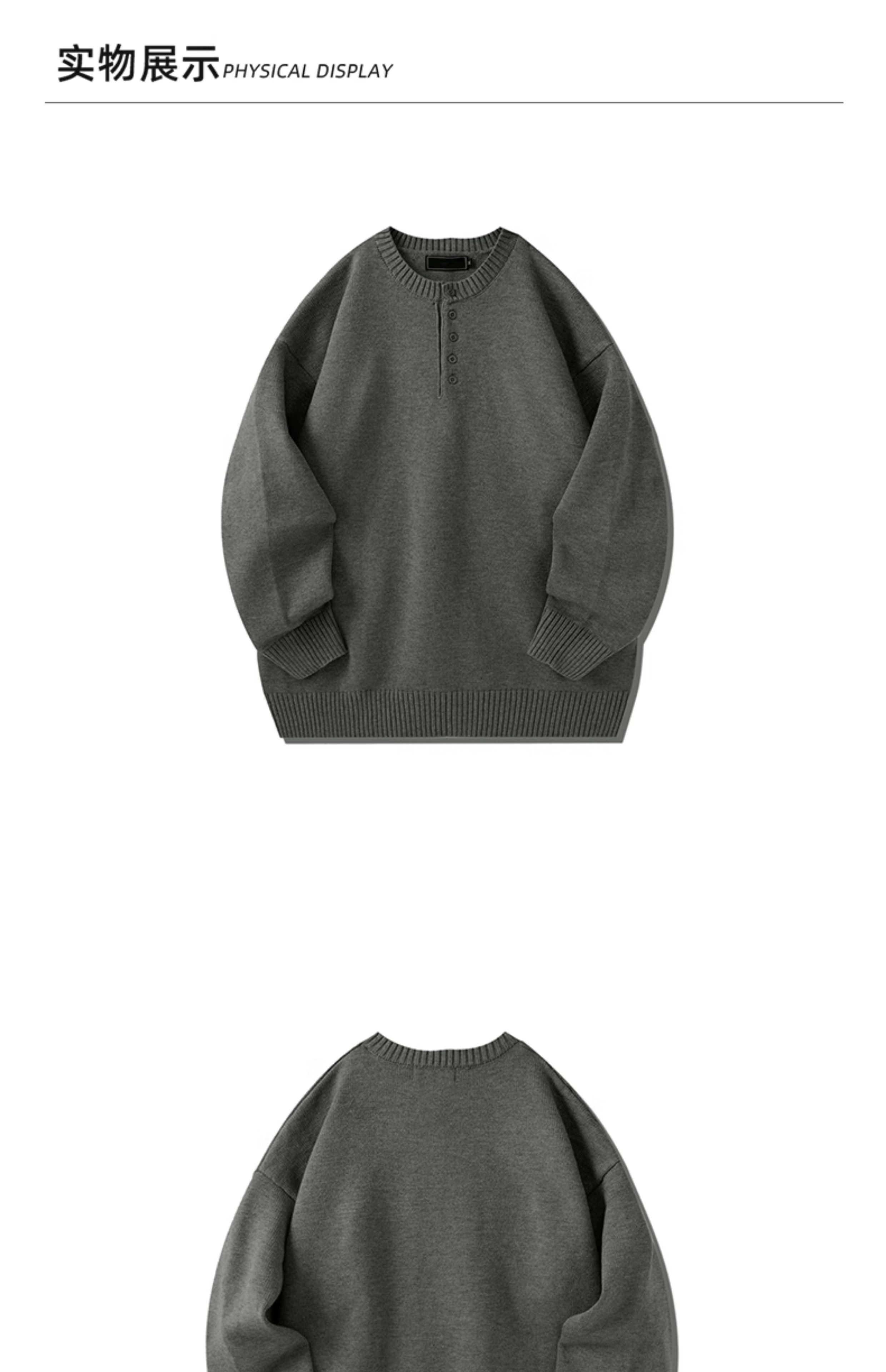 DAVID&ME Henry collar sweater men's spring and autumn new style Japanese retro light literary casual simple versatile loose pullover sweater Army Green M